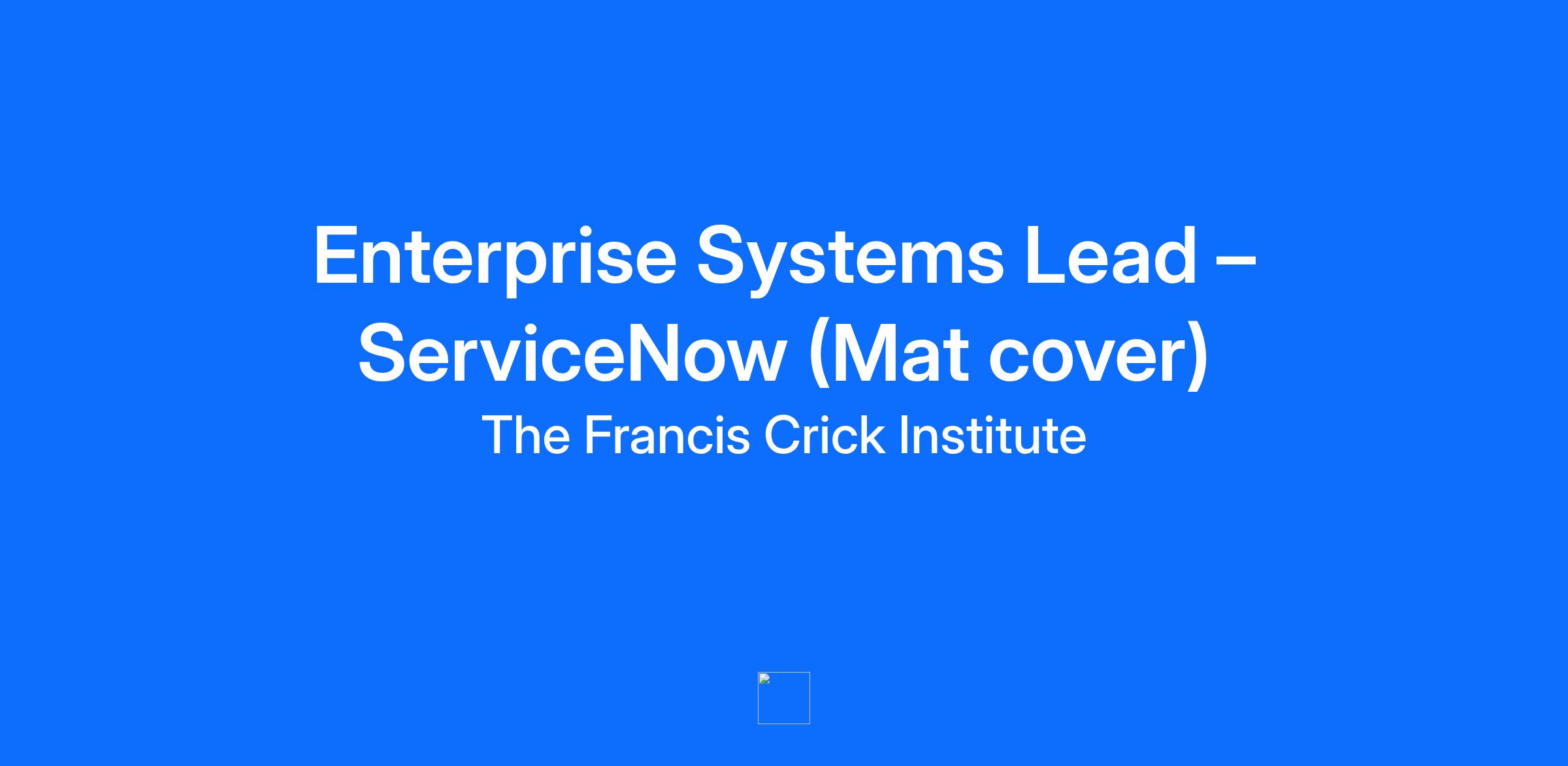 Salary for this Role: From £59,700 with benefits, subject to skills and experience. Job Title: Enterprise Systems Lead – ServiceNow (Mat cover) Reports to: Jessica Carmody Closing Date: 04/Jan/2026 23.59 GMT Job Description: Job Title: Enterprise Systems Lead – ServiceNow (Mat cover) Details of the role: Working pattern: Monday – Friday. This is a 12 month (Mat cover) fixed term position on Crick terms and conditions of employment. This role is hybrid and requires a minimum of 3 days per week in the office. Salary: From £59,700 with benefits, subject to skills and experience Application closing date: 4th of January 2026 at 23.59 About us The Francis Crick Institute is Europe’s largest biomedical research institute under one roof. Our world-class scientists and staff collaborate on vital research to help prevent, diagnose and treat illnesses such as cancer, heart disease, infectious diseases and neurodegenerative conditions. The Crick is a place for collaboration, innovation and exploration across many disciplines. A space where the brightest minds can pursue big and bold ideas and discover answers to crucial scientific questions. We support them in a dynamic environment which fosters excellence with state-of-the-art infrastructure, cutting-edge facilities, and a creative and curious culture. We’ve removed traditional boundaries of departments, divisions and disciplines and instead have an open approach that supports every researcher. This gives us the freedom to take risks and carry out high-quality, pioneering research. Creating a space for discovery without boundaries helps us to turn our science into benefits for human health and the economy. About the role We are looking for an engaging and passionate Enterprise Systems Lead – Service now to join our team here at the Crick. This is a pivotal role where you will participate in the design, development, and ongoing improvement of enterprise platforms and integrated systems that support the Crick’s needs and ambitions. You will be a proactive leader with strong organisational skills, stakeholder engagement experience, and a solid understanding of the design and development lifecycle. You’ll bring hands on experience with ServiceNow or similar ITSM platforms, guiding developers and driving process improvements. As this role involves significant project management, you will bring energy and creativity to foster positive team collaboration. You will be a strong listener who takes the time to understand stakeholder needs and effectively translate them into clear actions for the team. What you will be doing You will: Leading the delivery of design, implementation and service transition for products and services using the current enterprise systems platforms (focused on ServiceNow, but may also include Workday, particularly where scope includes both platforms) Working with other leads within ITO to prioritise work packages for the Enterprise systems team Working with Application Owners and external vendors to design and support workflows to support operations and science processes. Supporting the Head of Enterprise Systems to develop processes and ways of working that support the strategic vision of ITO including automation, documentation, modularisation and reuse. Implement integration solutions that connect various enterprise applications and systems. Utilise ServiceNow integrations platform (e.g. Flow Designer) to create, streamline, and automate processes. Please see full job description here About you You will have: An in-depth understanding of business processes for key operational teams as implemented in ERP tools such as Workday, and Workflow tools such as ServiceNow.* Experience of change and administration of complex SaaS platforms, including effective communication and testing processes.* Exposure to Enterprise Business Intelligence tools such as Power BI and IT Service Intelligence tools such as Splunk, as well as the infrastructure required to support them. A data mindset, with experience of database design, development and management and knowledge & understanding of ETL/ESB tools Use of an ITIL-based approach for service, change and incident management.* Ability to identify, troubleshoot and resolve business-critical live systems issues using a methodical, cross-team approach* *Minimum Criteria About Working at the Crick Our values Everyone who works at the Crick has a valuable role to play in advancing the Crick’s mission and shaping our culture We are bold. We make space for creative, dynamic and imaginative ideas and approaches. We’re not afraid to do things differently. We are open. We’re highly collaborative and interactive, and make sure our activities are visible to the outside world. We are collegial. We show respect for one another, work cooperatively and support the wider community. At the Francis Crick Institute, we believe that diversity and inclusion are essential to driving innovation and scientific discovery. We are committed to creating a workplace where everyone feels valued, respected, and empowered to succeed, regardless of their background, identity, or personal circumstances. We actively encourage applications from individuals of all genders, ethnicities, abilities, and experiences. We are a Disability Confident: Committed employer and want to ensure that everyone can apply and be part of our recruitment processes and so we'll make reasonable adjustments if you need them - just let us know when you apply. If you need assistance with applying (i.e., would like to apply by phone or post) please email: karen.au@crick.ac.uk Find out more about life at the Crick. What will you receive? At the Francis Crick Institute, we value our team members and are proud to offer an extensive range of benefits to support their well-being and development: Visas: Applicants for this role will be eligible for sponsorship to work in the UK Generous Leave: 28 days of annual leave, plus three additional days ov