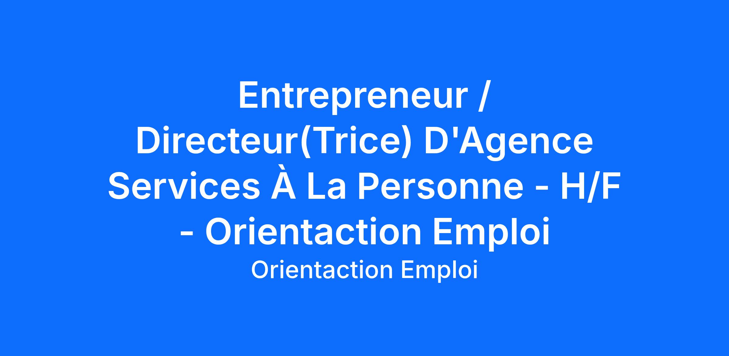 Entrepreneur / Directeur(Trice) D'Agence Services À La Personne - H/F - Orientaction Emploi