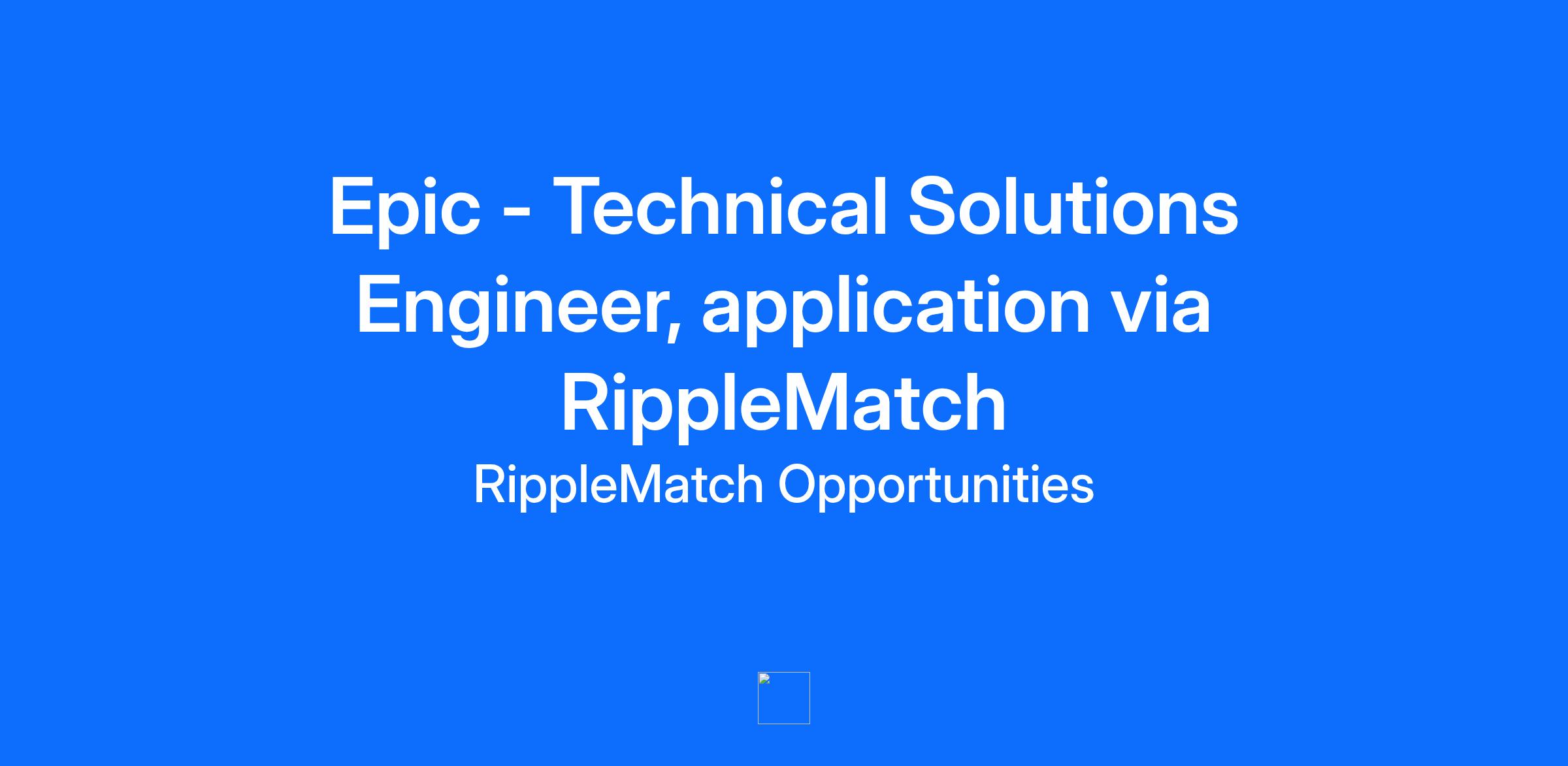 This role is with Epic. Epic uses RippleMatch to find top talent. Technical Solutions Engineer Problem-solving with a purpose. As a Technical Solutions Engineer at Epic, you’ll work on software that impacts 305 million patients around the world. Alongside customer counterparts, you’ll tackle mission-critical and complex problems – we’re way beyond “turn it off and on again” issues. You’ll need to diagnose the problem, identify a solution, and manage the implementation of the solution, sometimes across multiple physical locations and stakeholders. Learn more about our team at https://careers.epic.com/Jobs/Technical-Solutions-Engineer. Test the limits of your brain for the most innovative health systems on the planet. The top-ranked health systems in U.S. News and World Report are Epic customers. Our community includes major systems like the Mayo Clinic, Johns Hopkins, Cleveland Clinic, and Kaiser Permanente, as well as leading academic medical centers at the University of Wisconsin, University of Michigan, University of California, University of Texas, The Ohio State University, and many more. Experience our state-of-the-art campus, eat delicious food, and travel the world. We don’t believe in cubicles. (Well, we believe they exist, but…) Our uniquely themed campus was designed to heighten your ability to get stuff done in your office, a conference room, or by the fireplace in a comfy chair. For lunch, visit King’s Cross or Cassiopeia for a wide array of meal options, or go to one of our smaller, themed bistros, featuring wood-rotisserie, pan-Asian, and Latin-inspired cuisine. All meals are restaurant-quality but cost only a few dollars, and they’re prepared by a team comprised of kitchen talent from restaurants around the country. And, after five years here, you’ll earn a four-week sabbatical anywhere in the world. Staff have kayaked in Patagonia, attended a Beyoncé concert in Ireland, built a library in Tanzania, and run a marathon in Antarctica. Live affordably in a city known for its rising tech talent. Epic is located just outside Madison, Wisconsin, the second fastest growing market for tech talent in the United States and home to the state capital and the University of Wisconsin. Madison, a city surrounded by water, has received accolades for being the greenest city in America (NerdWallet), the best city for renters (SmartAsset), the fittest city in America (Fitbit), and the third best metro in the US for young professionals (Forbes Advisor). More than just important work. We offer comprehensive benefits to keep you healthy and happy as you grow in your life and career, and your merit-based compensation will reflect the impact your work has on the company and our customers. You'll also be eligible for annual raises and bonuses, as well as stock grants, which give you an even greater stake in the success of Epic and our customers. Healthcare is global, and building the best ideas from around the world into Epic software is a point of pride. As an Equal Opportunity Employer, we know that inclusive teams design software that supports the delivery of quality care for all patients, so diversity, equity, and inclusion are written into our principles. Research has shown that job-seekers who are women, LGBTQ+, or members of historically underrepresented communities are less likely to apply for roles they don't seem completely qualified for, so we encourage all who are interested to apply. Please see our full non-discrimination statement at https://careers.epic.com/EEO. Requirements Bachelor's degree or greater A history of academic excellence or professional success Willingness to travel occasionally to customer locations Eligible to work in the U.S. without visa sponsorship Relocation to the Madison, WI area (reimbursed) COVID-19 vaccination