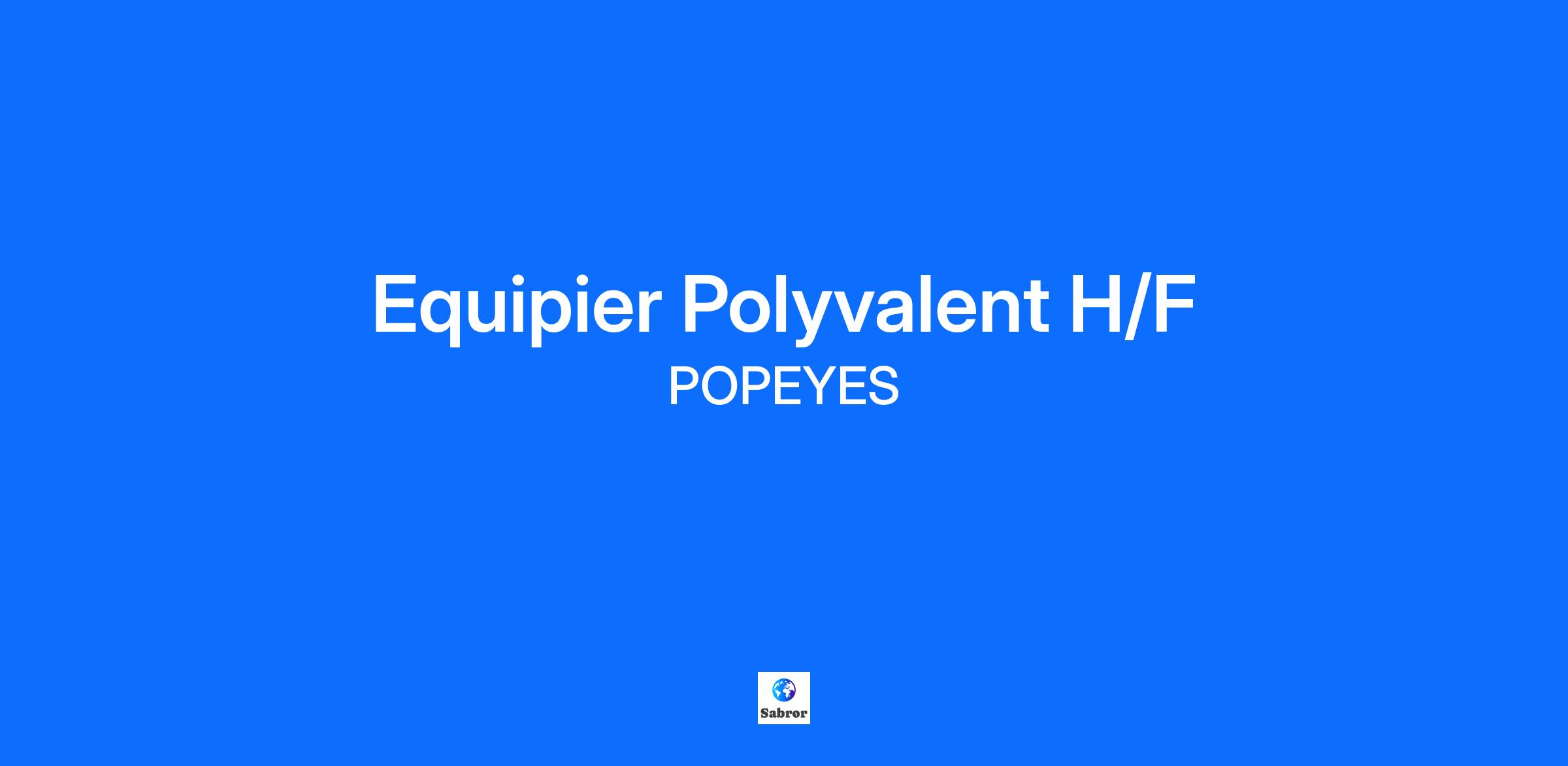 Fondée en 1972 en Louisiane, Popeyes n’a aucun lien avec le cartoon. Nous notre truc, ce ne sont pas les épinards mais le poulet frit : domaine dans lequel nous excellons avec notre délicieux poulet aux épices cajun, croustillant à l’extérieur et fondant à l’intérieur, qui a déjà fait sa réputation aux US et dans le reste du monde (dans plus de 3600 restaurants worldwide!). Popeyes propose une cuisine iconique : les produits sont préparés et cuisinés en restaurant, à partir de poulet frais. Les filets de poulet sont marinés pendant 12 heures dans un mélange d'épices cajun, avant d'être panés à la main en restaurant. Véritable invitation à la joie de vivre, la cuisine Popeyes rassemble toutes les familles pour célébrer les petits et les grands moments de la vie. Notre objectif ? Ouvrir près de 300 restaurants et cuisines partagées au cours des prochaines années ! Ce projet il nous fait vibrer et on espère qu’il te fera vibrer aussi ! On compte sur toi pour nous aider à construire une équipe de choc et à réussir de la plus belle des manières notre développement en France 🐔 Tes missions, si tu les acceptes : Gérer parfaitement le service client de son accueil à son départ en ayant le souci de maintenir un environnement chaleureux comme on aime ! Gérer la préparation et la production culinaire de nos délicieux morceaux de poulet frais, sandwichs, salades… Participer à la parfaite tenue de l’ensemble du restaurant pour le rendre toujours plus brillant - Appliquer les standards et normes Popeyes en matière d’hygiène, de sécurité, de production et de service client. Vivre et faire vivre nos valeurs fortes de proximité, famille, convivialité et joie de vivre (Chez Popeyes comme à la maison !) Sourire, être curieux et motivé.e ! Ce que nous recherchons : Tu possèdes idéalement une d'expérience dans la vente ou la restauration. Tu aimes faire plaisir et donner le sourire aux personnes qui t'entourent. Ton dynamisme et ta joie de vivre sont tes atouts majeurs. Ce que nous te proposons : Un contrat en CDI/CDD en temps partiel idéalement 24h/ semaine avec des horaires aménageables en fonction de ton planning ! Et surtout un projet de dingue et des opportunités d’évolution rapide et nationale ! Si tu te reconnais, n'hésite plus, rejoins la famille Popeyes ! Toute l'équipe est impatiente de te rencontrer ! Bonus : reste connecté.e, plusieurs ouvertures sont prévues partout en France.
