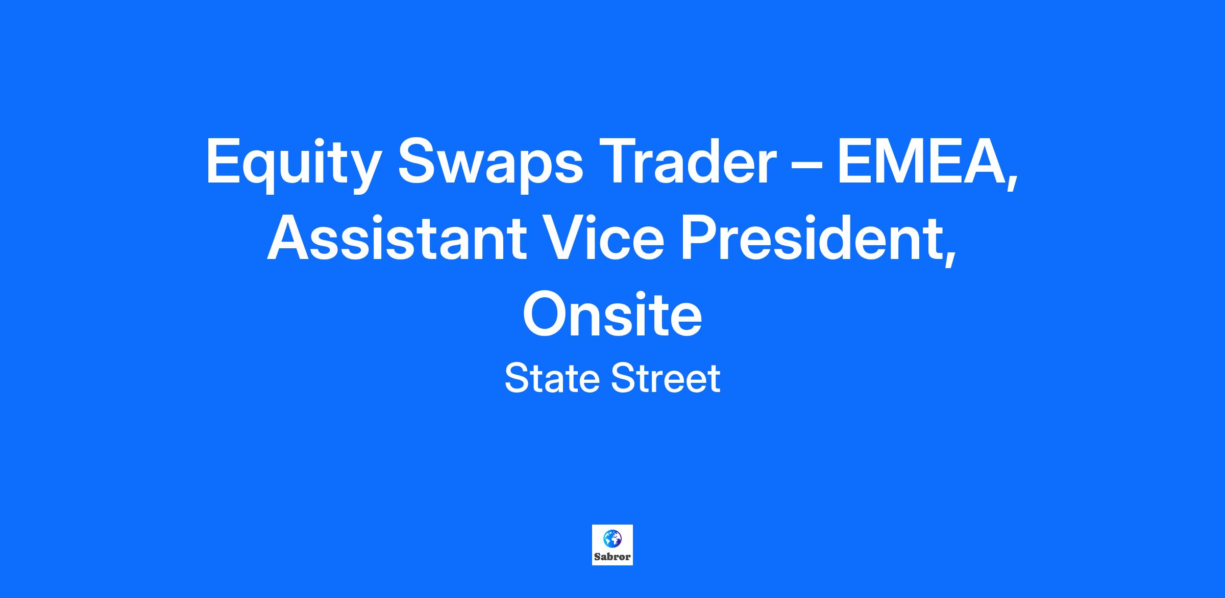 Who We Are Looking For State Street Prime Services is an alternative to prime brokerage and is a platform that allows clients to borrow securities and finance from a segregated custody account. This structure can reduce counterparty risk, offers additional transparency, and provides greater control over assets. The result is a more efficient and cost-effective way to manage alternative investment strategies. Prime Services has been in business for over fifteen years, has a global client base, continues to experience exponential growth, and is currently one of the fastest growing products within State Street. We are looking for an AVP Equity Swaps Trader in London to help us build and manage our Prime Services Equity Swap offering. Due to the role requirements, this job needs to be performed in the office. Why this role is important to us The team you will be joining is a part of State Street Markets (SSM). When owners and managers of institutional assets need research, trading, securities lending and innovative portfolio strategies, they turn to the SSM business unit. As our investment research and trading arm, SSM’s number one goal is to enhance and preserve our clients’ portfolio values by applying technology, optimizing trading, and linking asset classes and markets across the world. In order to meet client demand, Prime Services is expanding its product offering to include Equity Swaps: a market standard Portfolio Swap and a flexible Total Return Swap to suit client needs. Join us if making your mark in the capital markets industry from day one is a challenge you are up for. What You Will Be Responsible For As an AVP Equity Swaps Trader – EMEA, you will: Support daily trading activities for equity swaps, including pricing, booking, and monitoring of trades across client portfolios. Assist in managing the swaps trading book, ensuring positions are aligned with risk limits and market conditions. Ensure swap bookings align with client allocations, dividends and corporate actions are processed accurately, and resets performed correctly Coordinate with Sales and Relationship Managers to support client onboarding, trade execution, and ongoing service needs. Monitor and reconcile P&L and risk exposures, ensuring accuracy and timely resolution of discrepancies. Collaborate with operations, technology, and legal teams to streamline workflows and enhance platform capabilities. Contribute to product development efforts, including testing new features, gathering client feedback, and refining the swaps offering. Analyze market trends and client behavior to identify ways to better service clients Support senior traders in strategic initiatives, including liquidity management, capital optimization, and business growth planning. What We Value These skills will help you succeed in this role Excellent problem solving, analytical, and technical skills Experience working in fast-paced, front-office financial markets environment Strong attention to detail Ability to multi-task and perform well under pressure Outstanding communication (written and oral) and interpersonal skills An extremely flexible, hands-on approach with a “do what it takes” mentality Strong team orientation with a collaborative mentality; thrives in cross-functional environments and values shared success. Education & Preferred Qualifications 3+ years of securities markets/equity finance experience 3+ years EMEA Delta One trading experience in the Synthetic Prime space is required Strong understanding and knowledge of equity market and equity swap mechanics Self-starter, motivated by making the entire team successful Proficiency in Bloomberg and Microsoft Office, specifically Excel Additional Requirements Travel up to 10% may be required About State Street Across the globe, institutional investors rely on us to help them manage risk, respond to challenges, and drive performance and profitability. We keep our clients at the heart of everything we do, and smart, engaged employees are essential to our continued success. We are committed to fostering an environment where every employee feels valued and empowered to reach their full potential. As an essential partner in our shared success, you’ll benefit from inclusive development opportunities, flexible work-life support, paid volunteer days, and vibrant employee networks that keep you connected to what matters most. Join us in shaping the future. As an Equal Opportunity Employer, we consider all qualified applicants for all positions without regard to race, creed, color, religion, national origin, ancestry, ethnicity, age, disability, genetic information, sex, sexual orientation, gender identity or expression, citizenship, marital status, domestic partnership or civil union status, familial status, military and veteran status, and other characteristics protected by applicable law. Discover more information on jobs at StateStreet.com/careers Read our CEO Statement Across the globe, institutional investors rely on us to help them manage risk, respond to challenges, and drive performance and profitability. We keep our clients at the heart of everything we do, and smart, engaged employees are essential to our continued success. We are committed to fostering an environment where every employee feels valued and empowered to reach their full potential. As an essential partner in our shared success, you’ll benefit from inclusive development opportunities, flexible work-life support, paid volunteer days, and vibrant employee networks that keep you connected to what matters most. Join us in shaping the future. As an Equal Opportunity Employer, we consider all qualified applicants for all positions without regard to race, creed, color, religion, national origin, ancestry, ethnicity, age, disability, genetic information, sex, sexual orientation, gender identity or expression, citizenship, marital status, domestic partnership or civil union status, familial status, military and veteran st