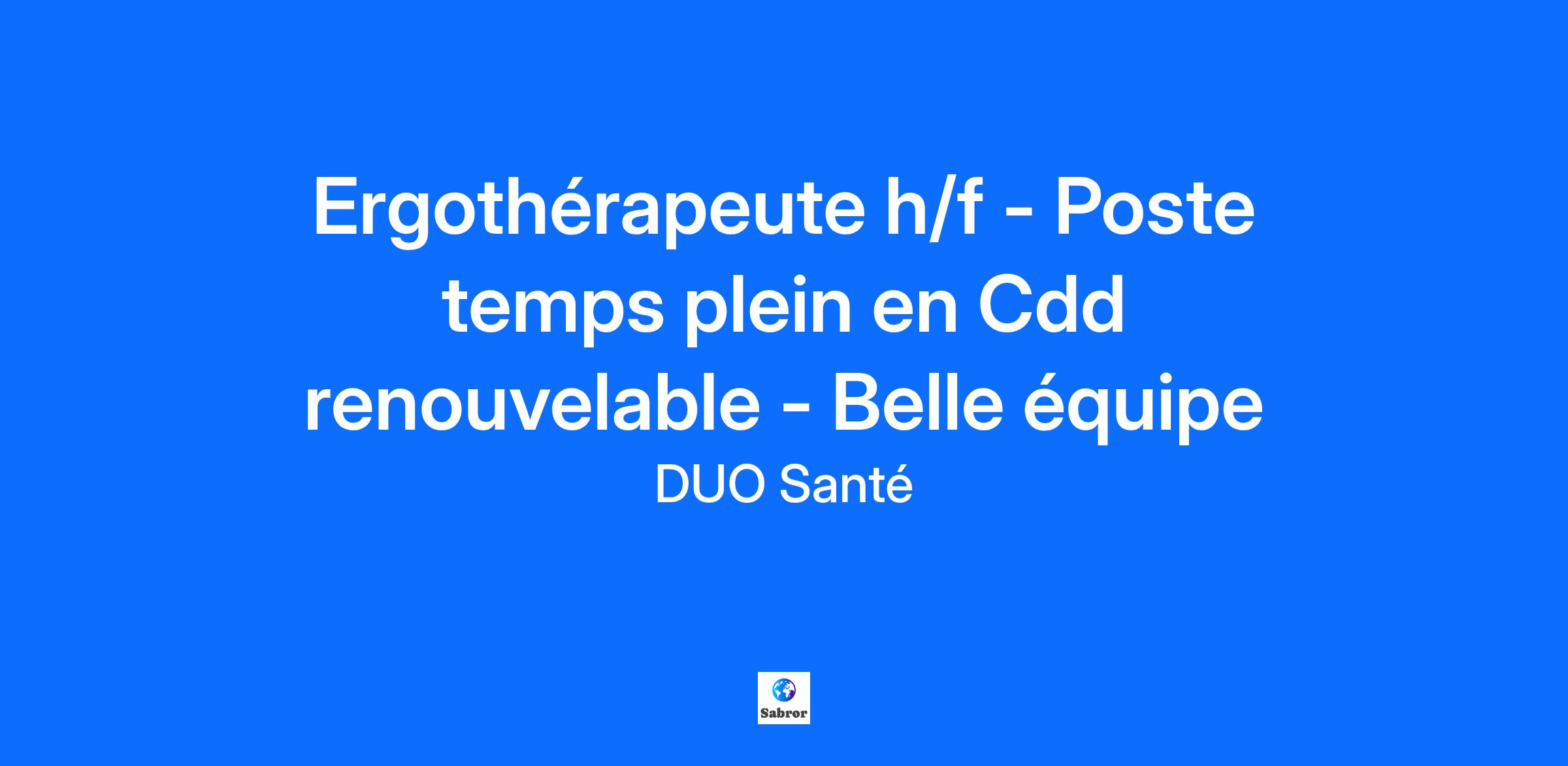 Notre client, un établissement de santé de proximité propose une offre de soins variée : Soins de Suite et de Réadaptation, Hôpital de Jour et interventions ponctuelles en EHPAD. Rejoignez une structure appréciée pour son excellente organisation, son cadre de travail agréable et ses équipes accueillantes ! Le poste est principalement affecté au service SMR (53 lits divisés en 3 secteurs), avec interventions dans les autres services en cas de congés. Vous collaborerez au quotidien avec une équipe rééducation/médico-technique dynamique et créative composée de : 👉 4 kinésithérapeutes – 3 ergothérapeutes – 3 professeurs APA – 1 psychologue – 1 diététicienne – 1 assistante sociale – 3 médecins temps plein Le tout dans un esprit d’interdisciplinarité et d’échanges étroits avec l’équipe soignante. Vos missions : • Réaliser des évaluations personnalisées des capacités motrices, sensorielles, cognitives et sociales des patients ainsi que des obstacles rencontrés au quotidien • Élaborer, mettre en œuvre et réévaluer les programmes de rééducation pour maintenir, restaurer ou compenser l’autonomie • Participer activement au projet de soins personnalisé et contribuer à la dynamique pluridisciplinaire • Conseiller les patients et leurs proches sur les aides techniques et l’adaptation de l’environnement • Mettre en place des aménagements adaptés aux besoins et proposer des solutions innovantes selon le handicap rencontré • Participer aux démarches qualité, à la prévention des risques et à l’amélioration des pratiques • Contribuer à la préparation du retour à domicile ou à l’orientation adaptée Conditions du poste : • CDD 6 mois renouvelable avec possibilité de CDI à temps plein • 35h / semaine – du lundi au vendredi, week-ends libres • Pas d’astreinte • Salaire selon profil et expérience (grilles + reprise d’ancienneté) Pourquoi passer par DUO Santé ? DUO Santé vous accompagne avant, pendant et après votre recrutement : ✔ Présentation détaillée du poste et des conditions avant tout entretien ✔ Transparence sur la rémunération dès le début du processus ✔ Accompagnement personnalisé (préparation à l’entretien, conseils…) ✔ Suivi attentif une fois le contrat signé pour garantir votre bien-être au sein de votre nouvelle équipe Votre réussite est aussi la nôtre !