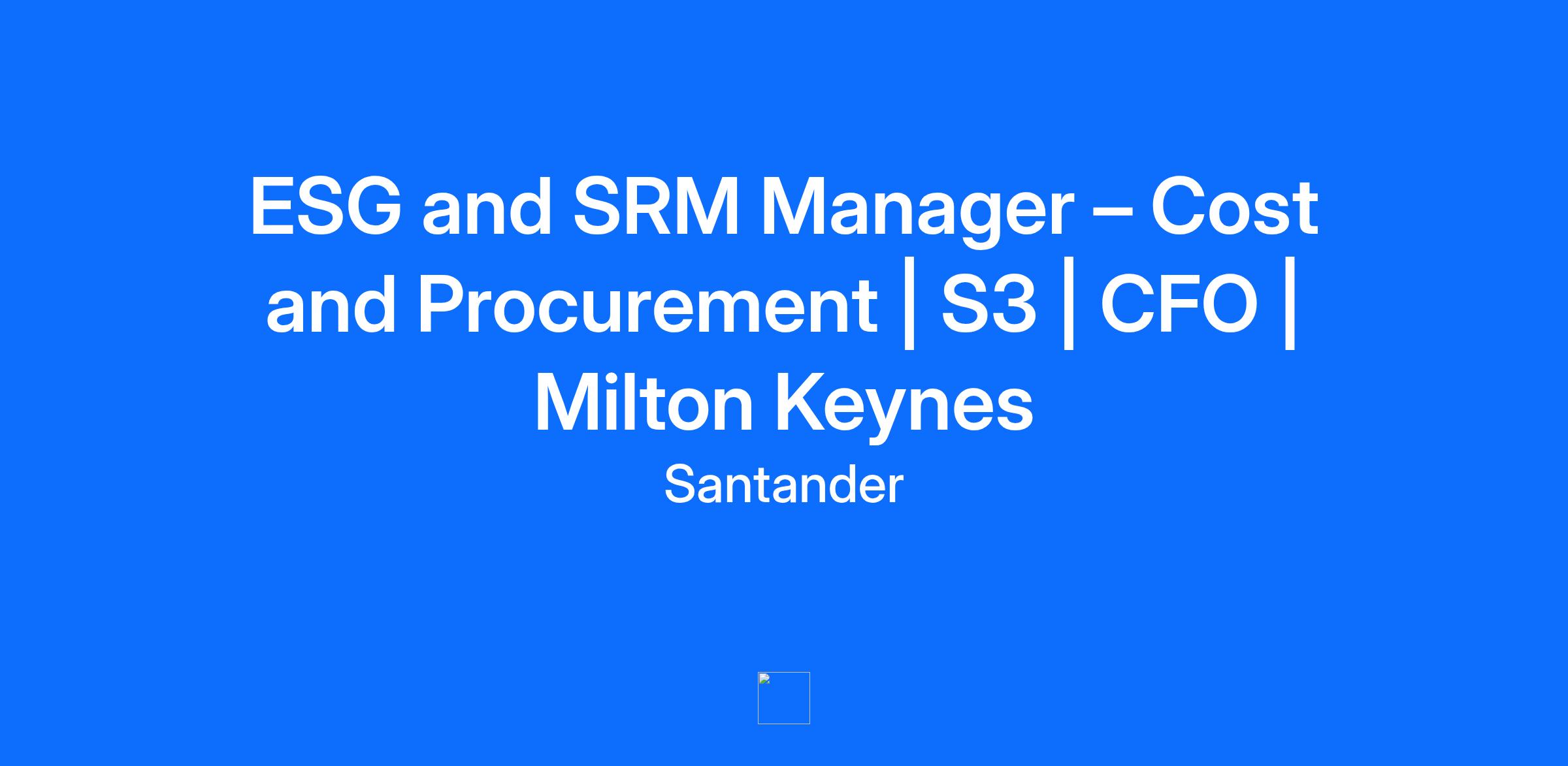 ESG and SRM Manager – Cost and Procurement | S3 | CFO | Milton Keynes Country: United Kingdom IT STARTS HERE Santander (www.santander.com) is evolving from a global, high-impact brand into a technology-driven organisation, and our people are at the heart of this journey. Together, we are driving a customer-centric transformation that values bold thinking, innovation, and the courage to challenge what’s possible. This is more than a strategic shift. It’s a chance for driven professionals to grow, learn, and make a real difference. Our mission is to contribute to help more people and businesses prosper. We embrace a strong risk culture and all our professionals at all levels are expected to take a proactive and responsible approach toward risk management. Santander UK is increasingly reliant on the third parties which underpin our operations. The Cost & Procurement team are undertaking a multi-year transformation focused on creating a platform to drive significant incremental value through the creation of an operating model with the capability to maximise the potential of this supplier ecosystem via connection & delivery of the right external expertise to meet the future demands of Santander and in turn, to drive best value whilst complying with regulation and Santander risk appetite. THE DIFFERENCE YOU MAKE Santander UK is looking for a ESG and SRM Manager based out of Milton Keynes. You will lead the evolution within Cost and Procurement of Santander UK’s supplier ecosystem turning ESG ambition into measurable impact and unlocking innovation at scale. You’ll aid, drive and influence our Procurement strategy into operational excellence, build a best-in-class SRM and ESG models that drive measurable benefit from a multitude of perspectives which include Social, Environmental, Shareholder and communities whilst drive our position as a “Customer of Choice” for strategic suppliers and make a real impact to those around us. We’re shaping the way we work through innovation, cutting-edge technology, collaboration and the freedom to explore new ideas. To succeed in this role, you will be responsible for: Own and embed a refreshed Supplier Relationship Management model (SRM) that includes innovation, performance, recognition, and governance to elevate supplier outcomes and ESG excellence Alongside out business value and sustainability goals, you will create our 3-year ESG journey from a C&P perspective, who we partner with and why, driving measurable impact to our climate, communities, and peers Champion the divisions successes and owning the communication strategy relating to SRM and ESG matters Create a common organisational and departmental language, approach, and governance for a cohesive experience with SanUK and to ensure audit readiness, risk mitigation, and market recognition Lead our supplier segmentation exercises in line with SRM practices across our end-to-end supply-chain to identify areas of focus and strategic partnerships that drive efficiency, service quality, innovation, and risk-reduction opportunities— that drive delivery Own regulatory and internal MI/reporting frameworks and disclosures for ESG & SRM, maintaining robust oversight and governance. Lead priority Procurement initiatives; identify root causes, recommend fixes/investments, and improve tooling adoption. Aid our Net Zero plans and lead our L&D ESG coach and upskill colleagues and partners Own, manage and act as service manager for ESG and SRM tooling, systems, and 3rd party providers WHAT YOU’LL BRING Our people are our greatest strength. Every individual contributes unique perspectives that make us stronger as a team and as an organisation. We’re enabling teams to go beyond by valuing who they are and empowering what they bring. The following requirements represent the knowledge, skills, and abilities essential for success in this role. Reasonable accommodations may be made to enable individuals with disabilities to perform the essential functions. Professional Experience Proven ESG, SRM experience in a procurement environment demonstrating multi-disciplinary, matrix, and cross-cultural settings with a strong customer focus (Required) Hands-on knowledge of S2P technology, contract management, and procurement analytics (Required) Experience designing ESG strategies with clear metrics and measurement (Required) Governance and reporting in complex organisations; confident with MI and disclosures (Required) Track record managing third-party providers against KPIs and service commitments (Required) Project/change delivery with strong stakeholder communication and influence (Required) Procurement transformation and/or systems improvement leadership (Preferred) Experience leading and developing teams in complex environments (Preferred) Exposure to net-zero or broader sustainability programmes within Procurement (Preferred) Languages English (Required) Spanish (Preferred) Hard skills S2P platforms and procurement systems; contract lifecycle management (Preferred) Procurement analytics, dashboards/MI, KPI design, and performance reporting (Required) Governance design, and supplier evaluation frameworks (Required) Change and project management; root-cause analysis and continuous improvement (Required) Tooling roadmap development, business cases, and rollout/adoption (Required) Supply-chain sustainability metrics and disclosure standards (Required) Soft skills Clear, direct communication; strong listening, collaboration, and follow-through (Required) Senior-stakeholder influence; cross-functional partnering across business units (Required) Resilience and comfort with change; ability to simplify complex topics (Required) WE VALUE YOUR IMPACT At Santander, your contribution matters. We recognise the difference you make every day, and we make sure you feel valued, supported and rewarded in return. Here, recognition goes beyond pay. It’s about the pride you feel in your work, the impact you have on customer