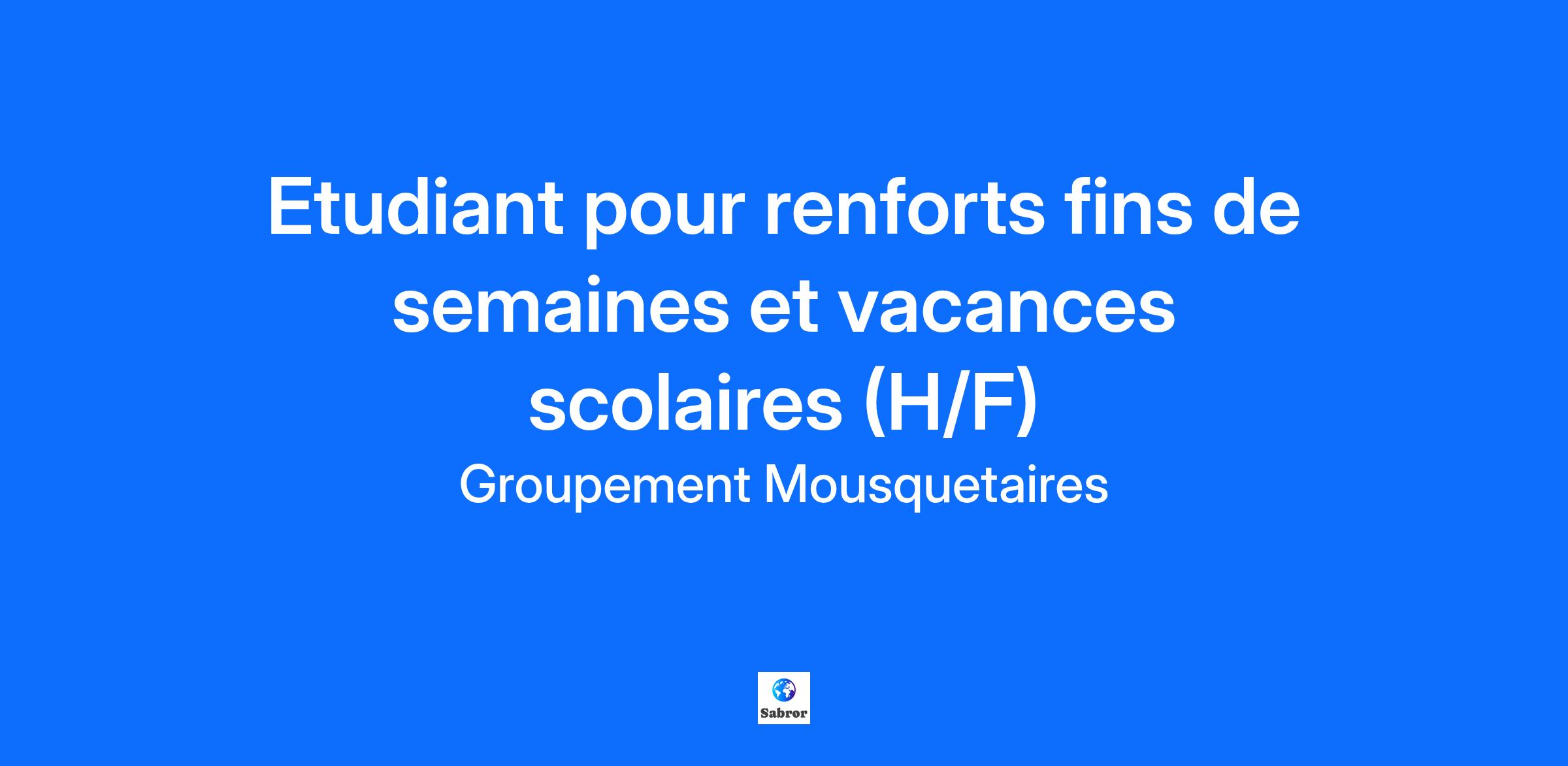 Description de l'entreprise Rejoindre le Groupement Mousquetaires, c’est intégrer un acteur majeur de la grande distribution avec 7 enseignes. C’est aussi évoluer au sein d’un groupe singulier, présent sur 3 marchés (alimentaire, bricolage, mobilité), qui réunit 150 000 collaborateurs et compte plus de 3 000 chefs d’entreprise ! Intermarché, c’est l’enseigne historique du Groupement Mousquetaires. Son positionnement unique de Producteurs & Commerçants fait sa force. S’appuyant sur le pôle agroalimentaire du Groupement Mousquetaires, Intermarché propose des produits sains, accessibles et issus d’une production française et responsable. Agir pour placer le mieux manger à la portée de tous, c’est l’engagement qui anime les équipes au quotidien. Et ce modèle plaît ; Intermarché, enseigne solidaire et de proximité, figure parmi les enseignes de grande distribution préférées des Français qui bénéficient directement de ses 1 800 points de vente répartis sur l’ensemble du territoire. Le magasin Intermarché de L'Isle sur le Doubs, pour poursuivre ses engagements et la valorisation des bons produits locaux et accessibles, renforce ses équipes en recrutant des étudiants pour les fins de semaines et les vacances scolaires H/F.