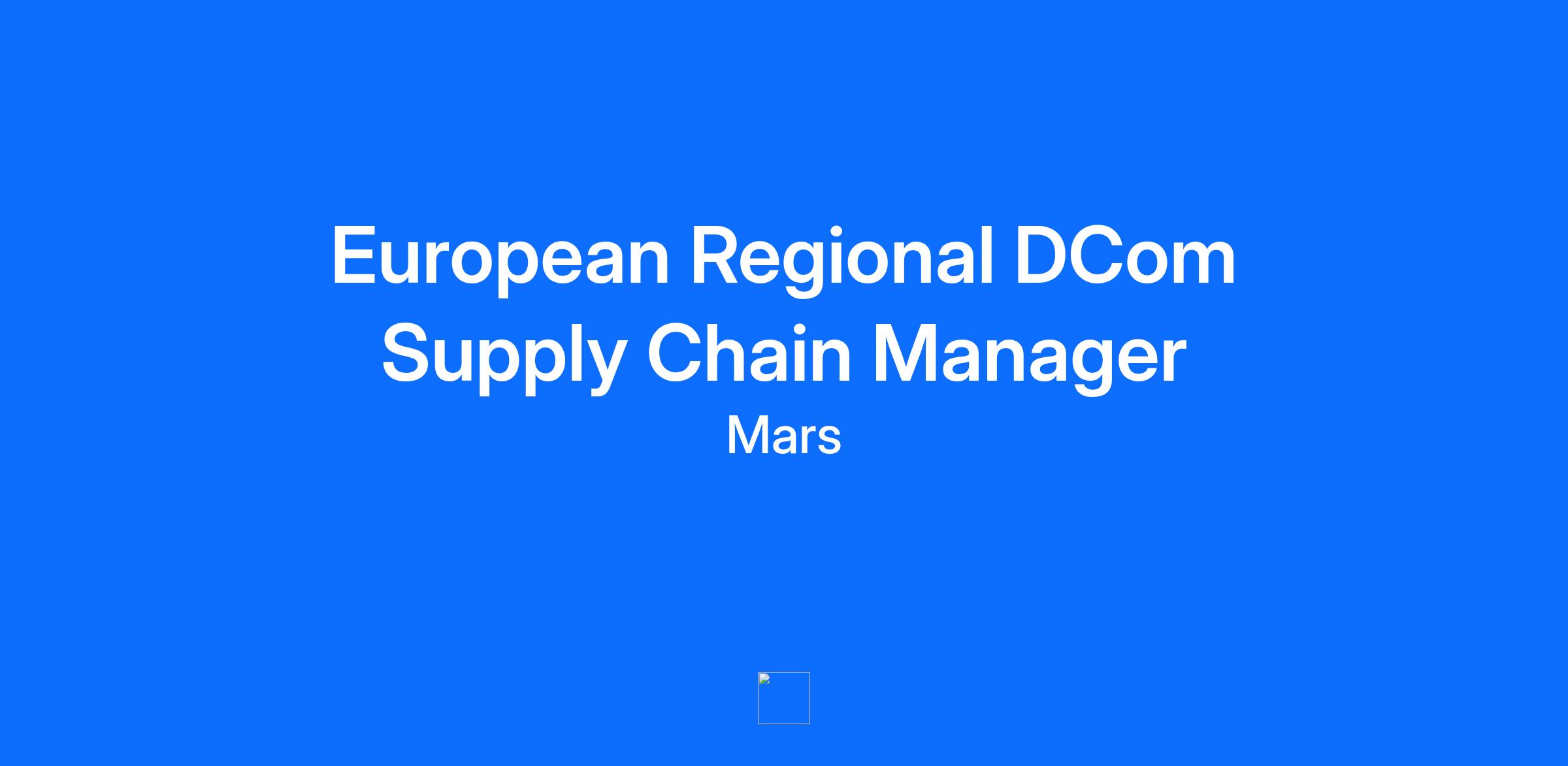 Job Description: Mars Snacking has an ambition to more than triple its DCom business over the coming years and igniting growth through Supply Chain is one of the strategic opportunities we will capitalize on to help us achieve this goal. The role of the European Regional DCom Supply Chain Manager is responsible for developing, piloting, and scaling New Fulfilment Model capabilities, accelerating our growth with top DCom customers and through our Mars Unattended Retail - MUR business (e.g. Vending and unattended micro-markets). What are the top priorities for this role? Perfect availability for DCom and Mars Unattended Retail, Profitable cold chain and System enablement. What will be your key responsibilities? Supporting development of key digital supply chain capabilities, teaming with global and local markets to determine key intervention areas to address. Developing disruptive and viable network roadmaps with cross-functional partners (Packaging/Industrial Engineering/IT/D&A). Translating digital needs into actionable and tangible E2E supply chain workstreams in close partnership with the key markets. Conducting proofs of concept with new capabilities, customers and emerging external partners, creating repeatable models and documenting in Playbooks to benefit the wider business. Creating and leading global functional communities of practice with regional and market digital supply chain managers, building new capability and supporting a shift of mindset and behaviors. What do we require for this role? Robust and successful experience within supply chain. Strong track record of customer facing success and business acumen in working with teams to identify problems to solve, ideating on the art of the possible, and bringing possibilities to life. A deep knowledge and experience in general and DCom supply chain operations and proven track record of working with and managing a complex supply chain/business transformation. Experience in relationships with digital commerce customers such as Amazon. What can you expect from Mars? Work with diverse and talented Associates, all guided by the Five Principles. Join a purpose driven company, where we’re striving to build the world we want tomorrow, today. A strong focus on learning and development support from day one, including access to our in-house Mars University. An industry competitive salary and benefits package, including company bonus. Mars is a family-owned business with more than $35 billion in global sales. We produce some of the world’s best-loved brands: M&M’s®, SNICKERS®, TWIX®, MILKY WAY®, DOVE®, PEDIGREE®, ROYAL CANIN®, WHISKAS®, EXTRA®, ORBIT®, 5™, SKITTLES®, BEN’S ORIGINAL®, and COCOAVIA®. Alongside our consumer brands, we proudly take care of half of the world’s pets through our nutrition, health and services businesses such as Banfield Pet Hospitals™, BluePearl®, Linnaeus, AniCura, VCA™ and Pet Partners™. Headquartered in McLean, VA, Mars operates in more than 80 countries. The Mars Five Principles – Quality, Responsibility, Mutuality, Efficiency and Freedom – inspire our 140,000 Associates into taking action every day towards creating the world we want tomorrow.