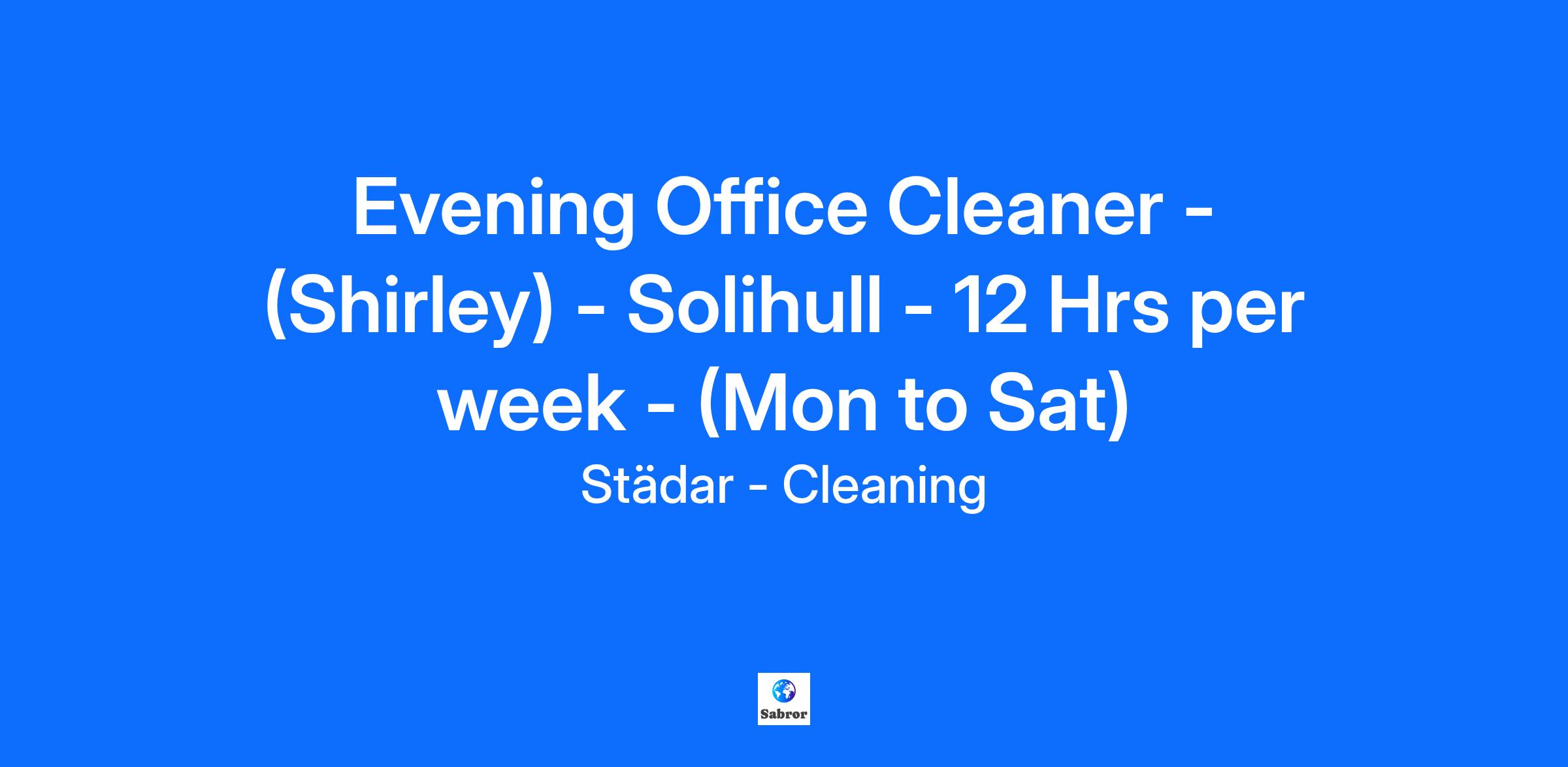 We are looking for a cleaning operative to join our team, working in a prestigious office environment, in the Shirley area of Solihull. Postcode; B90 4GT Evening Cleaner; Location; Highlands Road, Shirley, Solihull, B90 4GT Monday to Friday; 6:30pm to 8:30pm (2 hours per day) Saturday; 5:00pm to 7:00pm Total Hours Per Week; 12 Hours Rate of Pay; £12.60 per hour Holiday Entitlement; 28 days holiday per year Permanent Contract (Temporary/short term work applications will not be considered) Free on site parking available We are a progressive company which stands out from our competitors by our high standards of cleaning. Applicants must have a very good attention to detail in every aspect of their work and personal appearance. Applicants must be able to give total commitment to providing our customers with the very best cleaning service possible. Applicants must have good communication skills, be energetic and be able to work to fixed time objectives. No previous experience is necessary and full on site training is provided. Uniform provided.