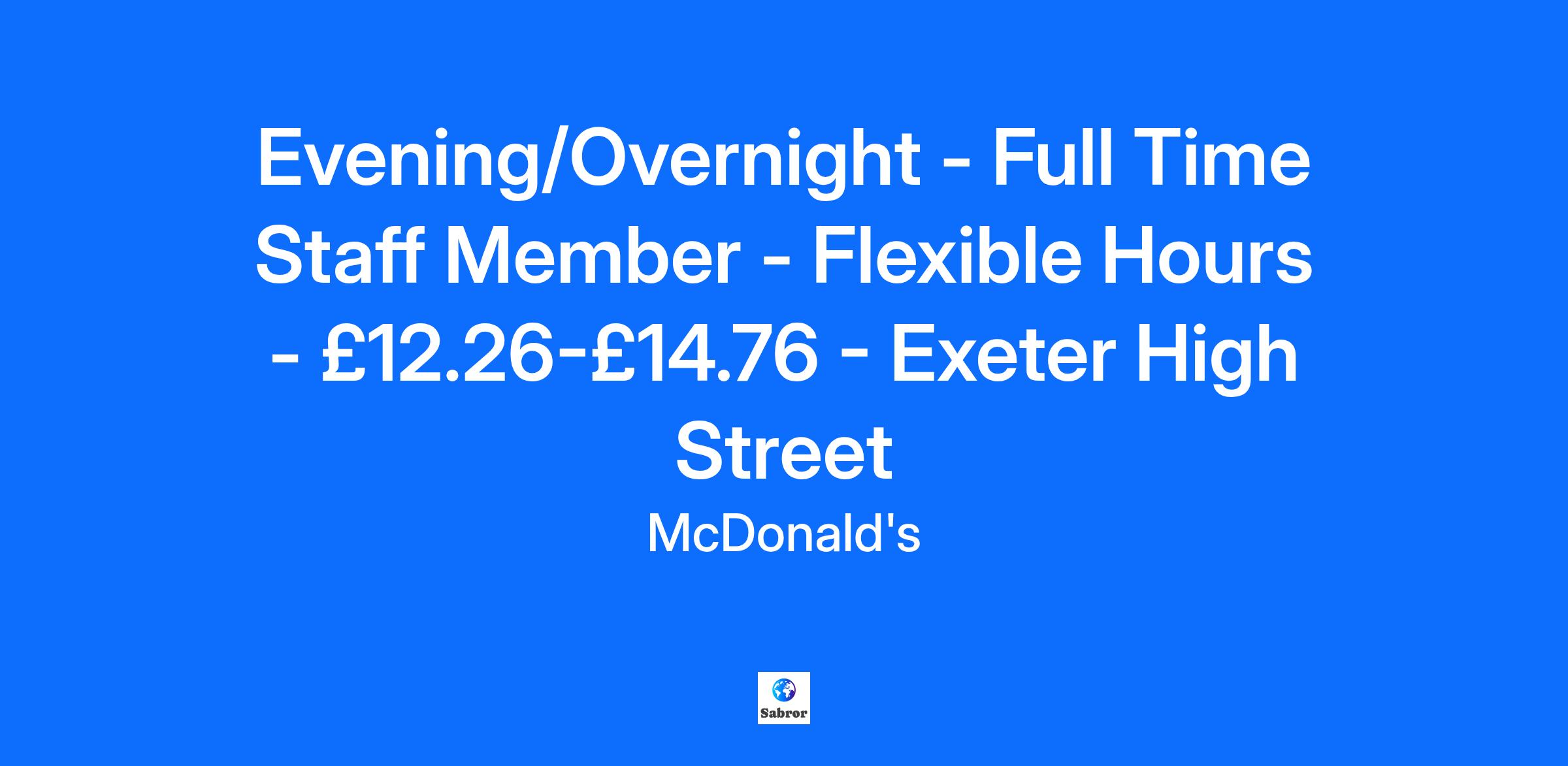 Evening/Overnight - Full Time Staff Member - Flexible Hours - £12.26-£14.76 - Exeter High Street