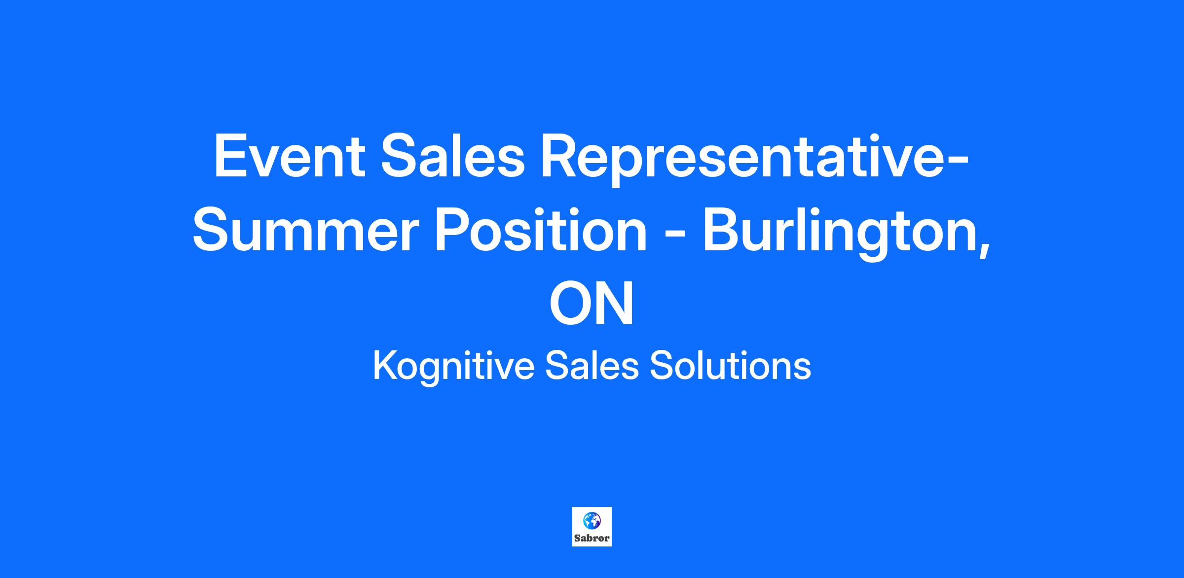 Event Sales Representative- Summer Position - Burlington, ON