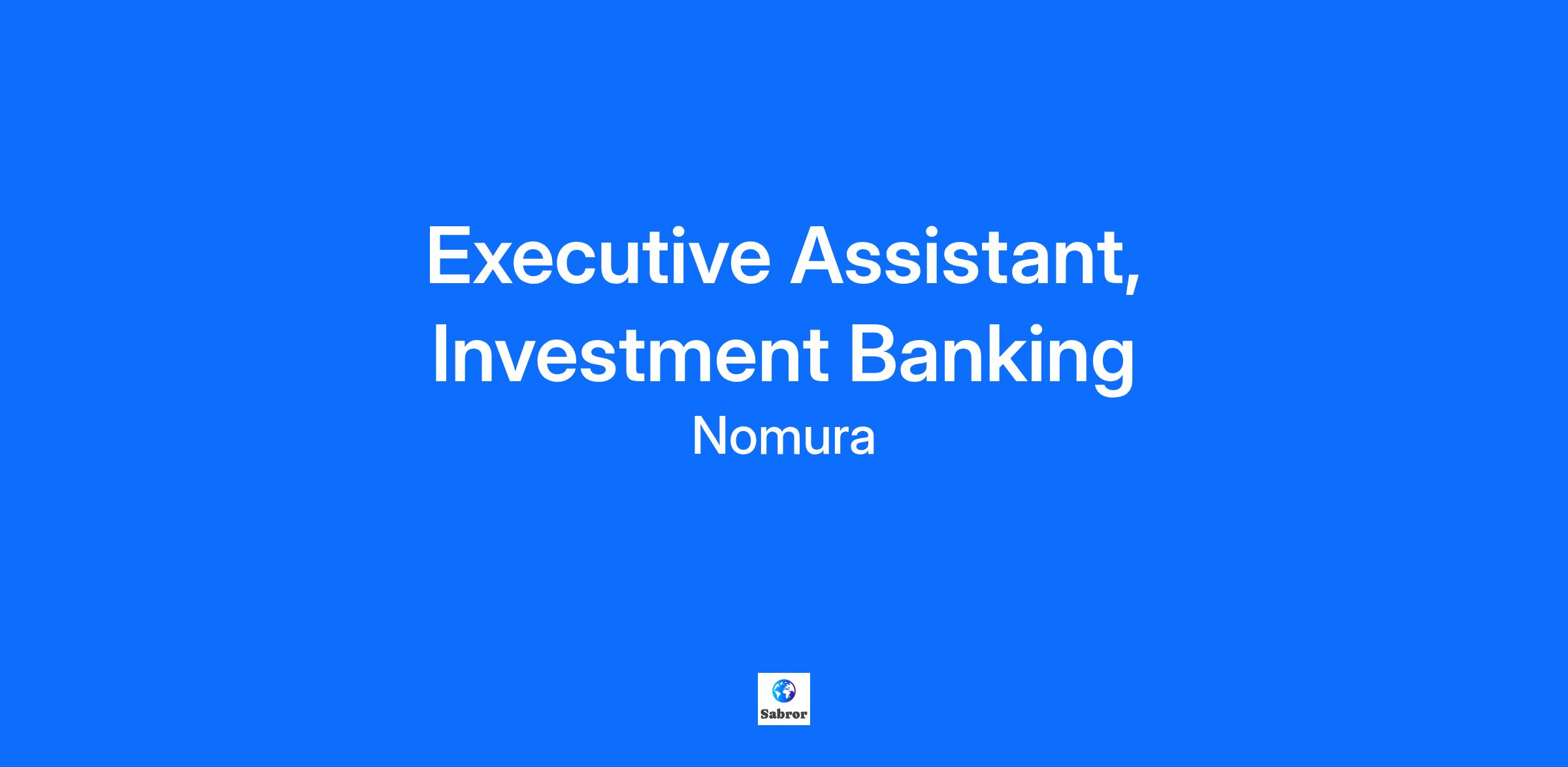 Executive Assistant, Investment Banking