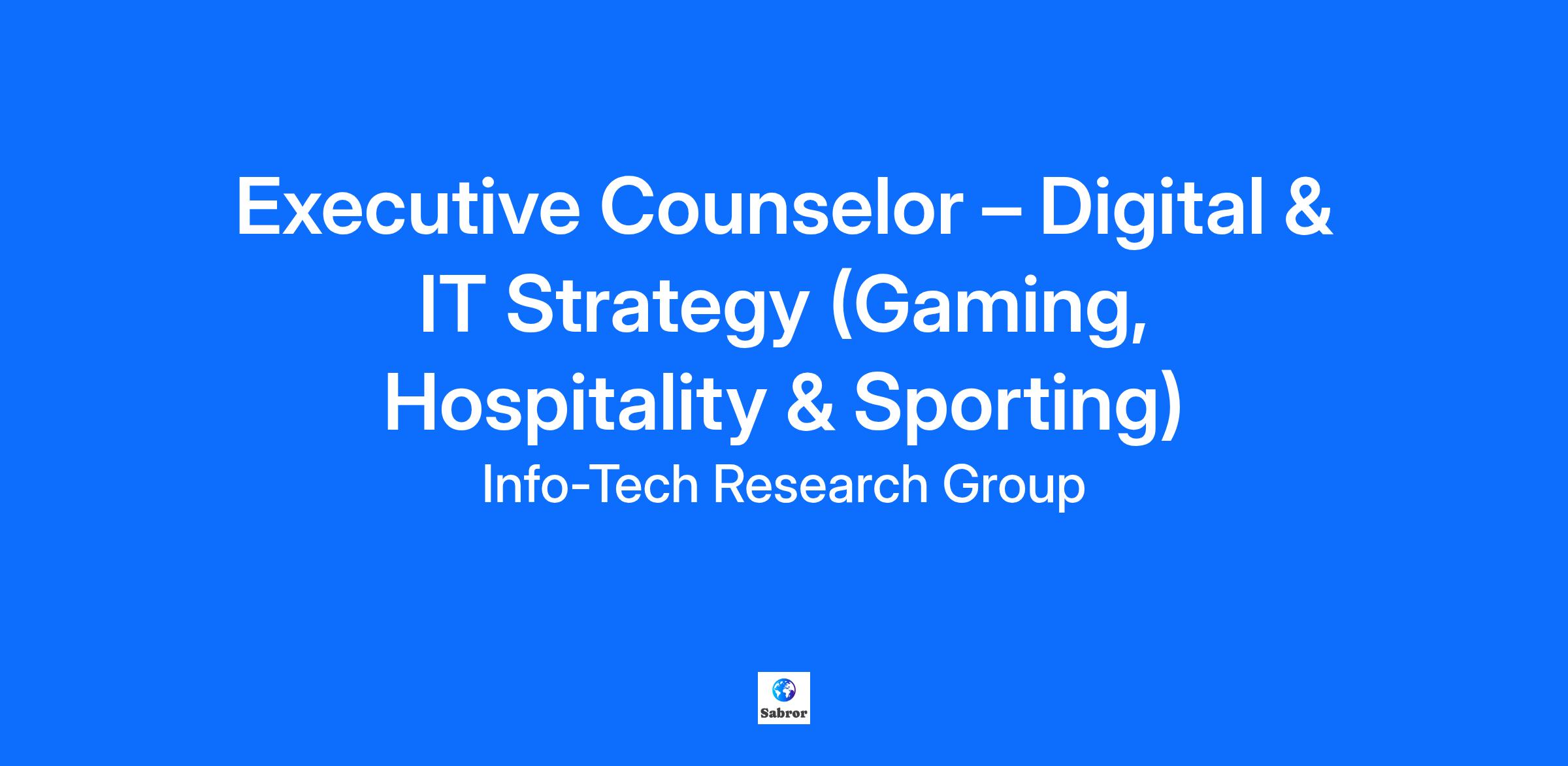 We are seeking an Executive Counselors to advise, guide, and provide strategic insight to IT leaders across the Gaming, Hospitality, and Sports & Entertainment industries. The primary mission is to help executives achieve better outcomes by optimizing decision-making and execution, mitigating risk, and addressing the challenges they face on the journey to personal, professional, and organizational excellence, ultimately strengthening IT and business capabilities and maximizing value realization.