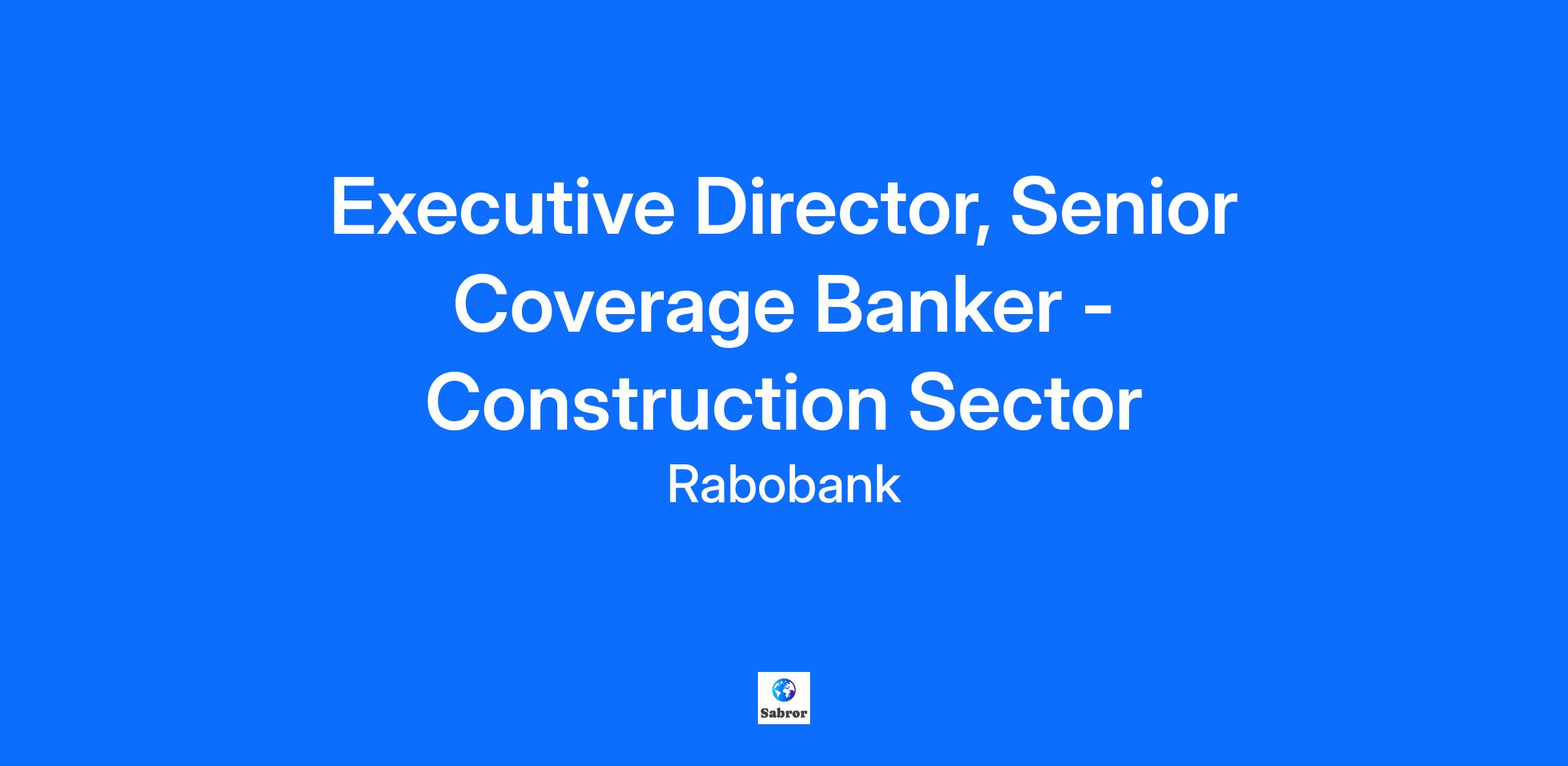 Job Title Executive Director, Senior Coverage Banker - Construction Sector Job Description Department: Client Coverage – Large Corporates Grade: Executive Director (Managing Director considered for exceptional candidates) Lead Sustainable Growth in the Construction Sector: Rabobank is seeking a highly experienced Coverage Banker to lead our strategic growth and entry into the UK Construction sector. This newly created role offers the opportunity to originate and manage a portfolio of high-value clients, acting as a trusted advisor and sector specialist. You will play a key role in driving sustainable transformation across the built environment, aligned with Rabobank’s mission to grow a better world together. This is a high-impact role with the opportunity to lead a strategic new initiative, directly contributing to Rabobank’s €1.4 billion revenue growth ambition—backed by a bank with strong momentum, bold aspirations, and significant capital ready to deploy. Prospect/Client Focus: The role will focus on clients with EBITDA exceeding €50 million and/or annual revenues above €500 million, operating across the following subsectors: Building Materials – Aggregates, building products, distribution. Construction Equipment Design & Construction – Engineering and project delivery. Built Assets – Technical services and asset management. (Excludes property development and real estate investment). Key Responsibilities: As a Senior Coverage Banker, you will: Originate and manage strategic relationships with leading corporates in the broader Construction sector. Drive cross-sell across Rabobank’s product suite, with a focus on working capital finance, leasing, capital markets, and risk management solutions. Act as a sector specialist, championing innovation and sustainability. Identify and execute growth opportunities, contributing to Rabobank’s green asset expansion. Align with the broader European Construction & Real Estate team on commercial opportunities. Why This Role Matters: Europe’s Built environment is evolving rapidly, driven by demographic shifts, aging infrastructure, and climate imperatives. Rabobank’s 2025–2030 Business Plan outlines a focused strategy to support financially robust, sustainability-driven clients across the full construction and real estate value chain. Our selective, risk-conscious approach prioritises companies who meet Risk, Return & Sustainability (RR&S) criteria—helping build a resilient, future-proof Europe. Skills & Experience Required: Our ideal candidate will be managing (or has managed) a portfolio of clients aligned with the above mentioned Construction Client Focus. You will also bring: A proven track record in client onboarding, strategic relationship management, cross-sell, and risk management with large corporates. A strong network across banks and debt advisors. A collaborative, entrepreneurial mindset. Extensive experience in wholesale banking at reputable institutions. Deep expertise in credit risk, capital markets, and sustainable finance. Excellent communication skills. Strong leadership qualities—and you’re someone people enjoy working with. The Team: Rabobank UK is the London branch of Coöperatieve Rabobank U.A., a Dutch multinational cooperative bank headquartered in Utrecht. The UK office focuses on serving corporate clients, with expertise in: Corporate lending and structured finance Leveraged finance Project finance Treasury and risk management Capital markets M&A advisory Rabobank UK’s focus reflects Rabobank Group’s global strategy to be a leading financial partner in the Food & Agri sector, while also supporting the Energy Transition, and expanding into Banking for Europe’s Fundamental Sectors (including Construction). You will join the UK Client Coverage team, responsible for managing Rabobank’s most strategic relationships. You’ll also be part of the broader European Construction & Real Estate team, which covers the full value chain—from planning and development to construction and asset management. You will be supported by the European CR&E team’s sector intelligence, credentials, product delivery and strategic alignment. Collaboration is central to our success. You will work closely with product teams and risk, supported by a pool of dedicated deal execution colleagues, credit analysts, and business development professionals. What We Offer You: We provide a collaborative and supportive environment where senior bankers can thrive. You will have the professional autonomy and entrepreneurial scope to shape strategy, deliver transformative outcomes, and inspire high-performing teams—while maintaining a healthy work–life balance. This is an opportunity to innovate, influence, and make a lasting impact within an organisation committed to excellence, growth, and sustainable success. We work flexibly at Rabobank, combining the benefits of working at the London office and working from home, allowing the best of both worlds to come together. Our Benefits for this role include: A competitive salary A discretionary annual bonus 30 days’ holiday, plus the option to buy additional days. Company pension scheme plus other financial benefit schemes Private medical insurance, regular health screening checks plus other health benefits A range of family friendly policies and lifestyle benefits Salary sacrifice schemes – cycle to work and electric vehicle salary sacrifice. Plus, many more incentives As well as helping our clients to grow their businesses, we are fully committed to growing our people to make them the best that they can be. We embrace differences and strive to create a truly inclusive work culture, based on trust and respect for all. A place where everyone can be themselves and bring their whole selves to work along with their unique experiences, background, and expertise. We strive to empower our people to focus on their wellbeing, by providing a range of resources that will enable the