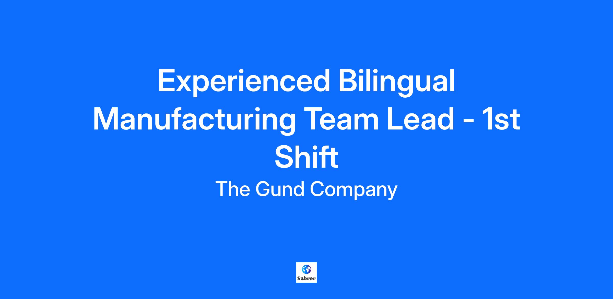 Job Summary Experienced Manufacturing Team Lead