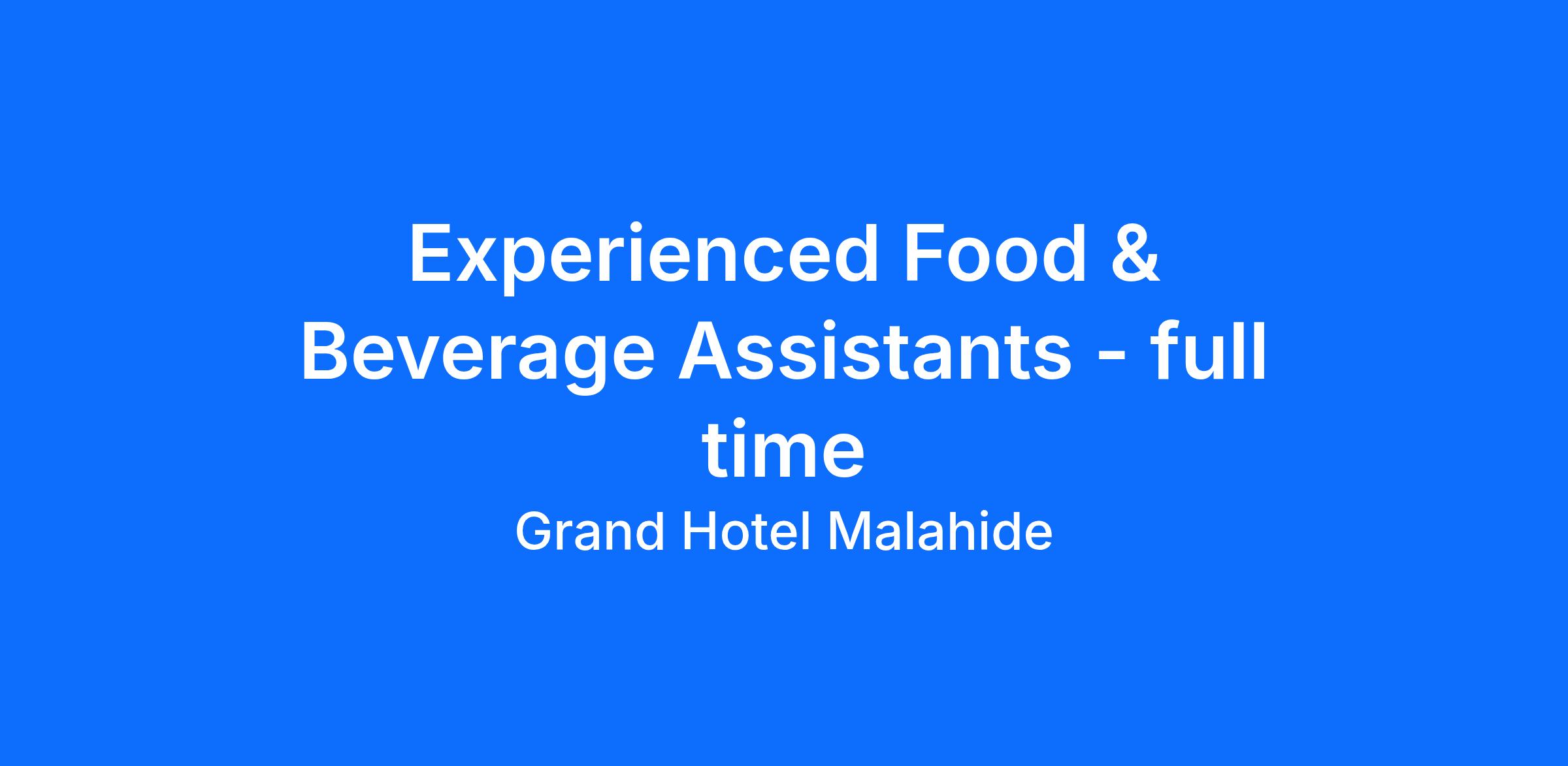 The Grand Hotel Malahide is looking for enthusiastic Food & Beverage Assistants to join our team in our busy F&B outlets. Must be over 18 and have fully flexible availability.