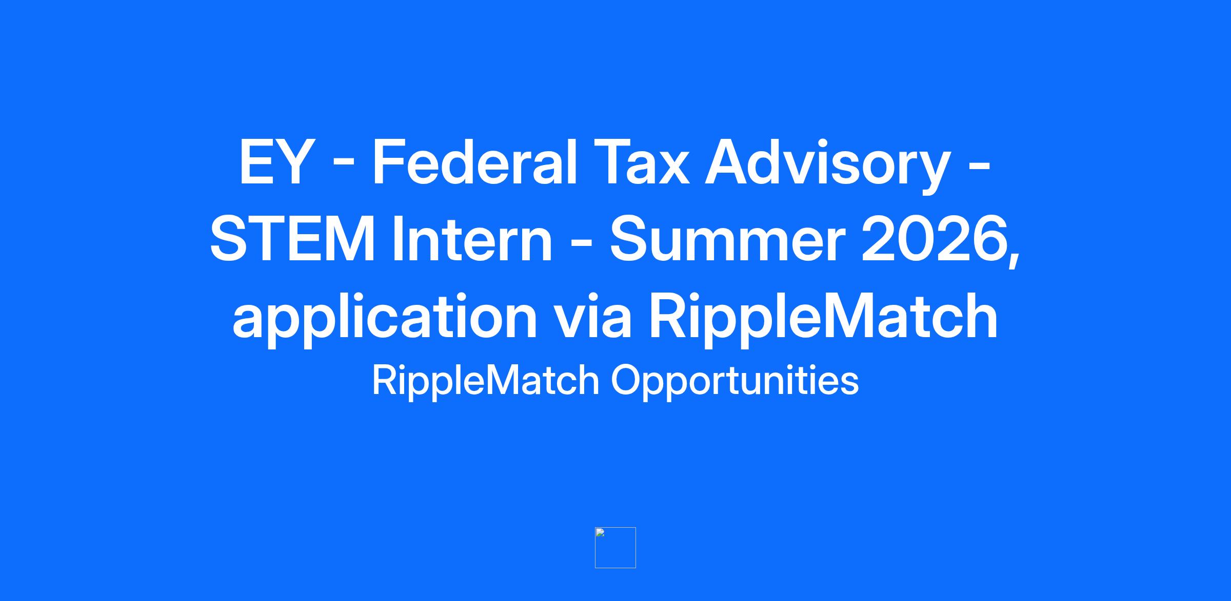 EY - Federal Tax Advisory - STEM Intern - Summer 2026, application via RippleMatch