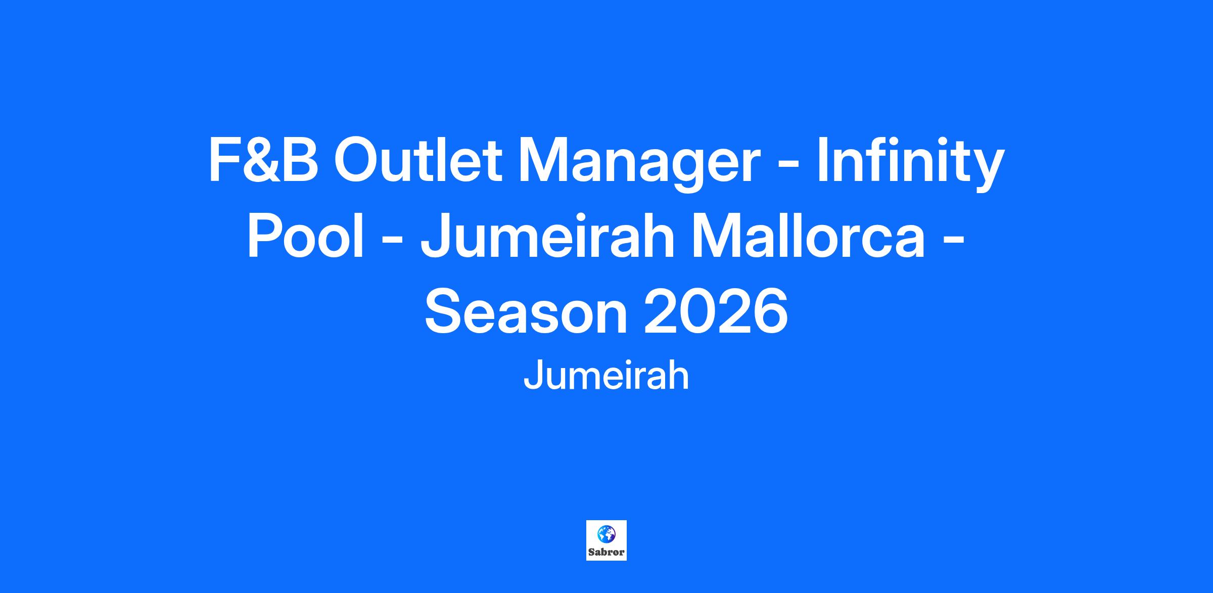 An opportunity has arisen for an Outler Manager (Infinity Pool) position to join our F&B Department in Jumeirah Mallorca.
