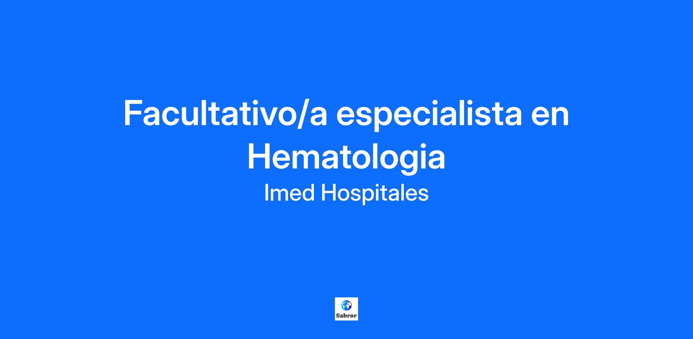 Actualmente nos encontramos en búsqueda de un/a especialista en Hematología.