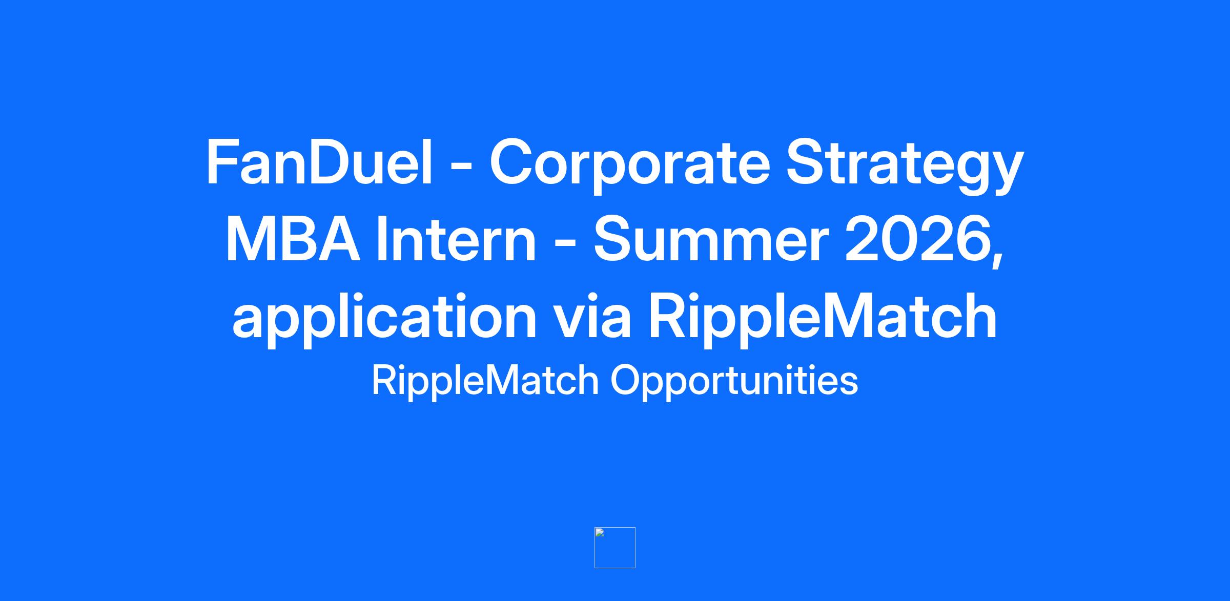 This role is with FanDuel. FanDuel uses RippleMatch to find top talent. ABOUT FANDUEL GROUP FanDuel Group is the premier mobile gaming company in the United States and Canada. FanDuel Group consists of a portfolio of leading brands across mobile wagering including: America’s #1 Sportsbook, FanDuel Sportsbook; its leading iGaming platform, FanDuel Casino; the industry’s unquestioned leader in horse racing and advance-deposit wagering, FanDuel Racing; and its daily fantasy sports product. In addition, FanDuel Group operates FanDuel TV, its broadly distributed linear cable television network and FanDuel TV+, its leading direct-to-consumer OTT platform. FanDuel Group has a presence across all 50 states, Canada, and Puerto Rico. The company is based in New York with US offices in Los Angeles, Atlanta, and Jersey City, as well as global offices in Canada and Scotland. The company’s affiliates have offices worldwide, including in Ireland, Portugal, Romania, and Australia. FanDuel Group is a subsidiary of Flutter Entertainment, the world's largest sports betting and gaming operator with a portfolio of globally recognized brands and traded on the New York Stock Exchange (NYSE: FLUT). THE POSITION Our roster has an opening with your name on it FanDuel is looking for an MBA Intern to join the Corporate Strategy team. Corporate Strategy serves as a partner and advisor to the Executive Leadership Team and works on critical strategic initiatives and opportunities facing the business. This is an exciting opportunity to join a team with significant exposure across the FanDuel Group business, as well as to the broader global company (Flutter Entertainment). The role is a mix of defining strategic opportunities and delivering the most important projects within the company, so it would be an excellent fit for someone looking for a hands-on, hybrid strategy and execution role. THE GAME PLAN Everyone on our team has a part to play Partner with Corporate Strategy Leadership and the FanDuel Executive Leadership Team to identify and solve the top challenges currently facing the business Lead analysis & recommendations on new initiatives, and serve as a business owner and project manager to drive these initiatives forward from ideation to launch Partner with cross-functional teams (e.g., Marketing, Product, Commercial) to deliver the most critical projects across the organization (e.g., launching in new states, bringing new products to market) Liaise with teams in the U.K., Australia, and beyond to identify opportunities to leverage best practices and drive operational efficiencies across the global group Example projects could include: Assisting the FanDuel Executive Leadership Team and functional teams in identifying areas of growth and developing execution plans Coordinating the launch of major strategic programs in partnership with operational business leaders Supporting programs to extend the value of FanDuel’s assets, leverage our scale advantage, and build sustainable business drivers Developing perspectives on opportunities for innovation Analyzing market data and competitive intelligence to prioritize transformative business opportunities Optimizing internal ways of working & tools to drive growth and profitability THE STATS What we’re looking for in our next teammate Required Qualifications: Must be planning for MBA degree completion between August 2026 –June 2027 Must have U.S. Work Authorization and does not require employer sponsorship now or in the future Must be in commutable distance from or willing to relocate to NYC office Must be willing to be in office 3+ times per week Preferred Qualifications: Minimum of 2-3 years in strategy consulting, internal strategy, or business/corporate development Experience working for a sports, media, or tech company Strong knowledge of business and financial concepts Experience independently conducting quantitative and qualitative analysis, including creating complex Excel models and leading market research Problem-solving skills, hypothesis driven with the ability to independently evaluate opportunities, conduct analysis, and make innovative strategic recommendations Strong organizational & project management skills, with the ability to juggle multiple projects at once Other: Excellent communication skills; skilled at influencing and building relationships across the organization at all levels, including with senior leadership Entrepreneurial, proactive in identifying opportunities and solutions, and areas to add value Experience leveraging AI tools to enhance productivity and decision-making Team player with the desire to bring a positive attitude to a group dynamic Passion for consumer technology, sports & entertainment, or the gaming industry preferred FANDUEL SUMMER LEAGUE… About our summer program 10-week program: Late May – Early August Hybrid work environment Meaningful opportunity to contribute to the work of our teams Cohort experience with social events & professional development opportunities Possibility to be considered for a full-time opportunity or return internship PLAYER CONTRACT We treat our team right From our many opportunities for professional development to having a fun exciting summer, we’re committed to making sure our employees get as much out of FanDuel as we ask them to give. Competitive compensation is just the beginning. As part of our team, you can expect: An exciting and fun environment committed to driving real growth Opportunities to build really cool products that fans love Mentorship and professional development resources to help you refine your game FanDuel is an equal opportunities employer and we believe, as one of our principles states, “We are One Team!”. As such, we are committed to equal employment opportunity regardless of race, color, ethnicity, ancestry, religion, creed, sex, national origin, sexual orientation, age, citizenship status, marital status, disability, gender identity, gender expressi