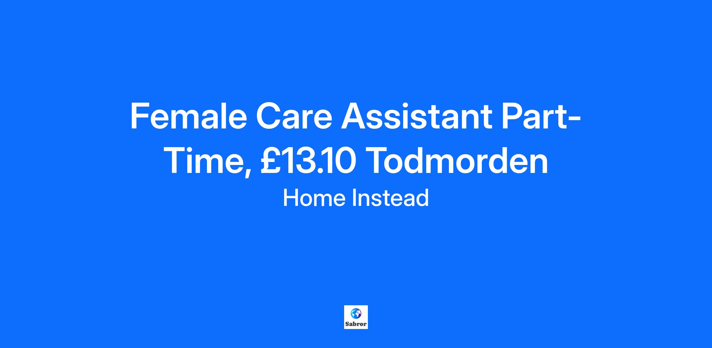 Company DescriptionHome Instead is the largest non-Medical Private Home Care Provider in the world. We are very proud of the High Quality of Care that we provide to private clients.When you join the Home Instead team as a Care Assistant, you are joining a care company like no other. We have built our business on our passion to change the face of ageing. We aim for excellence in everything we do and our flexible approach means we truly can put our clients’ needs first.Job DescriptionFemale Care Assistant – TodmordenWe are looking for a female care assistant to support older people in their own homes. Visits are mainly short “tea visits,” with occasional morning visits. A car and valid driving license are required.Expected Hours: 10–15 per week Schedule: Alternate weekends, weekdays negotiable, morning and tea calls Work Location: TodmordenResponsibilities:Personal care & medication remindersMeal prep and assistance with eating/drinkingCompanionship & conversationAccompanying clients to appointments and activitiesShopping, household tasks, and prescription collectionRequirements:Female applicants only (genuine occupational requirement due to personal care needs)Care experience preferred but not essentialGood communication skillsAbility to follow care plansBenefits:Mileage allowance (30p/mile)Minimum 1-hour visits28 days holiday, pension, training & supportLegal note: This role is restricted to female applicants under the Equality Act 2010, as personal care may involve intimate tasks where a female carer is necessary for dignity, privacy, and client comfort. All recruitment practices comply with employment law and equality legislation.Additional InformationFor an informal chat and to find out more about a career in care, contact us now on 01422 412468 or register your Interest below.www.homeinstead.co.uk/calderdaleEmail: katherinebrown@calderdale.homeinstead.co.ukHome Instead is committed to safeguarding and promoting the welfare of adults and expects all staff to share this commitment. This role is subject to DBS enhanced disclosure.