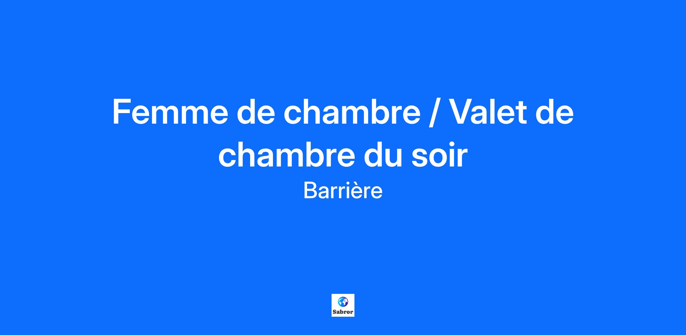 Description de l'entreprise L’HÔTEL BARRIÈRE LE WESTMINSTER RECHERCHE SA FEMME DE CHAMBRE / VALET DE CHAMBRE DU SOIR Figure emblématique du Touquet Paris Plage, l’Hôtel Barrière Le Westminster est un hôtel 5* entièrement rénové (104 chambres et suites), offrant un restaurant étoilé au Guide Michelin, une brasserie, un bar, un spa avec piscine, hammam, sauna, fitness, des espaces de séminaire. Vous travaillerez sous la responsabilité de notre Gouvernante Générale, fan de Monsieur Propre et toujours bienveillante avec ses équipes. Description du poste VOS PRINCIPALES MISSIONS SERONT... Assurer votre prise de poste selon les conditions et consignes du jour. Assurer les recouches en fonction techniques en vigueur — ainsi que dans le respect des délais. Respecter et appliquer les règles d'hygiène et de propreté. Développer et entretenir le sens du service et de la relation client. Horaires de 13h00 à 21h00 ou de 14h00 à 22h00 TRAVAILLER CHEZ BARRIÈRE C’EST AUSSI… Le 13ème mois et intéressement Le paiement des heures supplémentaires La majoration des heures de nuit Des opportunités de mobilité en France et à l’international Des formations personnalisées pour développer votre potentiel via notre Campus Barrière L'assurance d’une intégration ludique et suivie jusqu’à la fin de la période d’essai Un CSE dynamique proposant de nombreux avantages Une bonne mutuelle pour prendre bien soin de vous Des tarifs collaborateurs pour se faire des week-ends de rêve Statut : employé. Salaire entre 2040€ et 2100€ brut Qualifications Lorsqu’on vous demande votre principale qualité lors d’un entretien d’embauche, vous répondez toujours “je suis trop perfectionniste” ? Vous avez un sens du détail sans pareil ? Vous êtes sûrement le talent que nous recherchons ! Vos principales qualités sont votre rigueur, votre discrétion et votre esprit d'équipe et de service. DÉBUTANT ACCEPTÉ — FORMATION ASSURÉE Informations complémentaires PROCESSUS DE RECRUTEMENT Pré qualification téléphonique Entretien physique/ en visio avec le Chef de service Bienvenue chez Barrière ! LE GROUPE BARRIÈRE Leader des casinos en France et référence dans l'hôtellerie de luxe, la restauration, les loisirs, et le divertissement, Barrière se réinvente chaque jour. À la croisée entre destinations emblématiques et établissements iconiques, Barrière a façonné bien plus qu'un héritage : sa signature. Du Normandy à Deauville au Fouquet’s à New-York, c’est par son art de vivre à la française unique et authentique que le Groupe se distingue. Dans ses 33 casinos et club, Barrière incarne la passion du jeu, l’esprit festif, et le goût du divertissement. Fondée en 1912 et co-présidée aujourd'hui par Joy Desseigne-Barrière et Alexandre Barrière, Barrière demeure une entreprise familiale où les valeurs d'hospitalité et d’excellence se transmettent de génération en génération, au sein de ses équipes en France et à l'international. Et à vous aussi demain ? Chez Barrière, nous valorisons la diversité sous toutes ses formes et nous accueillons avec enthousiasme chaque candidature. Nous adaptons également sur demande nos processus de recrutement afin de répondre aux besoins des candidat(e)s en situation de handicap. De plus, nous apprécions les profils partageant notre engagement envers la Responsabilité Sociale des Entreprises (RSE) et qui sont désireux de contribuer à notre mission d'avoir un impact positif sur la société et l'environnement. Barrière, 50 métiers, 1 seul état d’esprit. Rejoignez-nous !