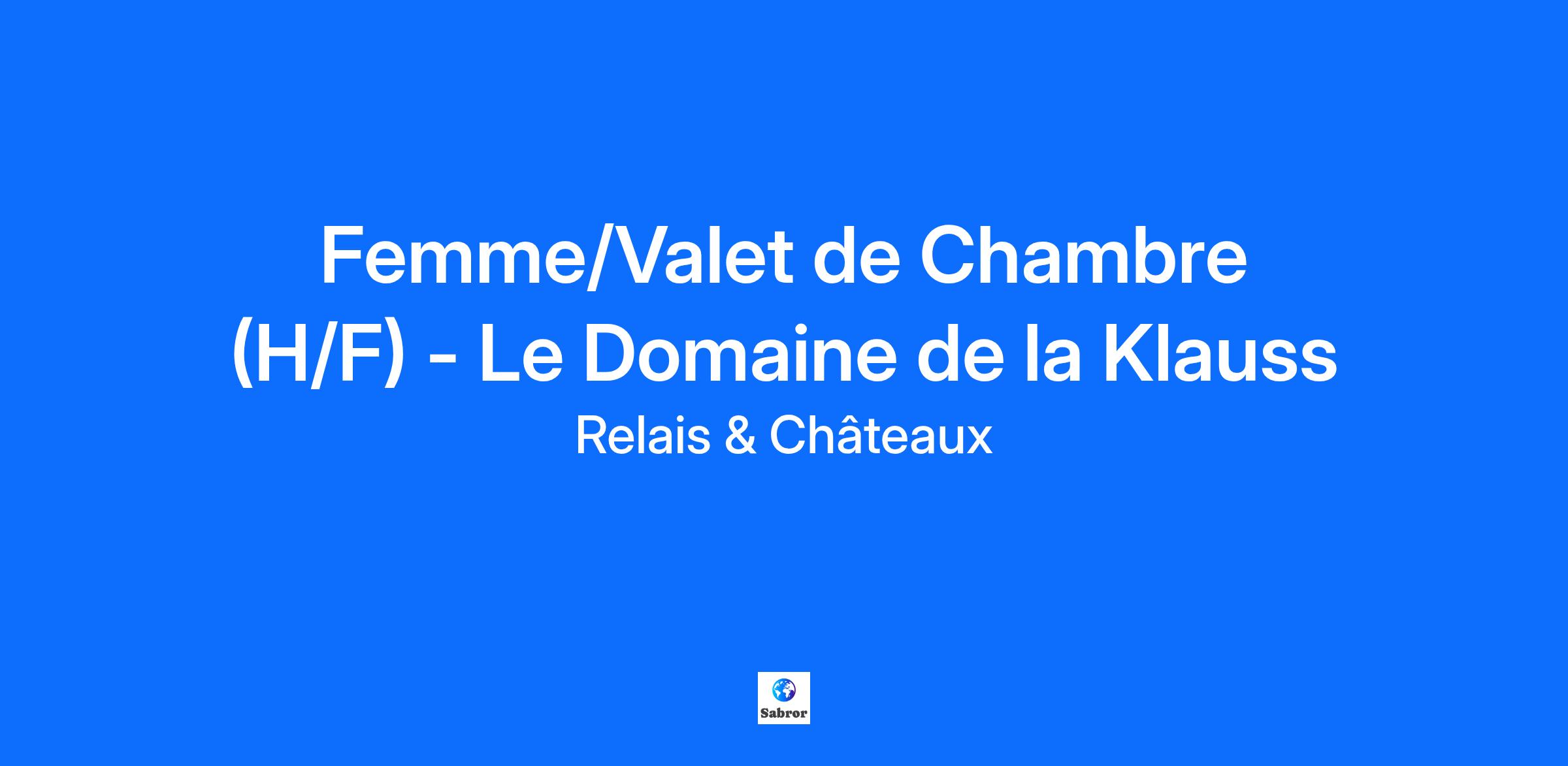 Description de l'entreprise Au pays des Trois frontières, le Domaine de la Klauss - Relais & Châteaux est un hôtel-spa-restaurant 5* possédant 28 chambres et Suites, un restaurant gastronomique, Le K, un restaurant bistronomique, le Komptoir et un Spa travaillant en exclusivité avec la marque Gemology. Nous sommes fiers d'être l'un des 580 membres Relais & Châteaux, une association internationale d'hôtels et de restaurants indépendants. Description du poste EN TANT QUE FEMME / VALET DE CHAMBRE Contrat 35h ou 30h/ semaine possible Vous êtes sous la direction du gouvernant et responsable de : Nettoyer et ranger les chambres et les parties communes. Effectuer le renouvellement quotidien du linge, réaménager la chambre et réorganiser les objets et/ou effets personnels du client. Vérifier l'état de la chambre et l'inventaire de ce qui est fourni au moment du départ du client. Effectuer le rapport quotidien avec le gouvernant. Qualifications Vous possédez idéalement une expérience dans l'entretien et la propreté. Vous avez une bonne présentation et un bon relationnel. Vous êtes motivé(e), avez un sens aigu de l'organisation et du travail en équipe Informations complémentaires Nombreux avantages : Salaires attractifs en fonction de l’expérience Défraiement kilométrique Horaires continus, pas de coupures, pointeuse Prime de performance d'entreprise Réductions staff sur tarifs bar-restaurant-spa Accès spa et fitness Tarifs spécifiques staff Team Relais dans tous les Relais & Châteaux de France avec 1 an d'ancienneté Places VIP pour matchs FC Metz Soirée de fin d'année Arbre de Noël pour les enfants du personnel Plannings sur application smartphone