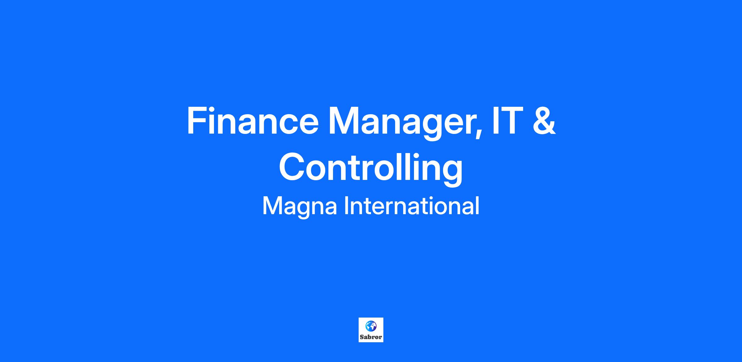 Job descriptions may display in multiple languages based on your language selection. What we offer: At Magna, you can expect an engaging and dynamic environment where you can help to develop industry-leading automotive technologies. We invest in our employees, providing them with the support and resources they need to succeed. As a member of our global team, you can expect exciting, varied responsibilities as well as a wide range of development prospects. Because we believe that your career path should be as unique as you are. Group Summary: Magna is more than one of the world’s largest suppliers in the automotive space. We are a mobility technology company built to innovate, with a global, entrepreneurial-minded team. With 65+ years of expertise, our ecosystem of interconnected products combined with our complete vehicle expertise uniquely positions us to advance mobility in an expanded transportation landscape. Job Responsibilities: The Manager, IT Finance & Controlling plays a key role in supporting the Magna Global IT team in managing the business and improving the overall financial performance. Reporting to the Director of Finance, they provide Global Support to specific IT functional areas. Your Responsibilities Responsible for the Controlling processes for assigned IT functional and regional areas including monthly, quarterly, and year-end reporting, business planning, project accounting and capital expenditure tracking while overseeing two direct reports. Partner with the Magna Global IT operational team to provide consolidated management reporting and business analysis for decision making and undergo detailed re-pricing of services/rates. Manage yearly budget and quarterly forecast preparation for the assigned business unit, ensuring alignment with organizational goals for strategic planning and decision making. Prepare business cases for new initiatives and supplier contract renewals. Maintain, monitor, implement changes for financial reporting systems, acting as Finance team subject matter expert Ensure compliance with accounting principles, guidelines, Magna finance policies and regulatory requirements and maintain effective internal controls to safeguard company assets. Preparation of ad-hoc analysis and presentations for management and functional departments. Other responsibilities that may be assigned from time to time. Who we are looking for Professional Accounting Designation including a bachelor’s degree in finance, accounting, business or a related field; or equivalent combination of education and experience. Minimum 8 years’ relevant experience in Accounting and Finance with at least 2 years of supervisory experience. Ability to build solid relationships to effectively collaborate with cross functional teams or other diverse groups of business people with a wide array of professional backgrounds, including senior management. Exceptional attention to detail and organizational skills, with the ability to coordinate and complete multiple tasks within established and changing deadlines. Strong proficiency in financial management software and ERP systems (e.g., SAP, data warehouse). Advanced Excel and PowerPoint skills and familiarity with data analysis tools (e.g., Power BI, Tableau). Accounting experience to include overseeing/managing company financial summaries such as month-end, year-end and operation reviews, year-end auditing process, general accounting, developing business plans, and analysis of balance sheets, income statements and cash flow. Your preferred qualifications Experience working with virtual and/or teams would be an asset. Excellent verbal and written communication skills with the ability to present complex financial information clearly and persuasively to both finance and non-finance stakeholders. What we offer At Magna, you can expect an engaging and dynamic environment where you can help to develop industry-leading automotive technologies. We invest in our employees, providing them with the support and resources they need to succeed. As a member of our global team, you can expect exciting, varied responsibilities as well as a wide range of development prospects. Because we believe that your career path should be as unique as you are. In addition, we offer you the following site benefits: An overview of our benefits will be discussed during the recruitment process. Awareness. Unity. Empowerment. At Magna, we believe that a diverse workforce is critical to our success. That’s why we are proud to be an equal opportunity employer. We hire based on experience and qualifications, and in consideration of job requirements, regardless of, in particular, color, ancestry, religion, gender, origin, sexual orientation, age, citizenship, marital status, disability, or gender identity. Magna takes the privacy of your personal information seriously. We discourage you from sending applications via email to comply with GDPR requirements and your local Data Privacy Law. Awareness, Unity, Empowerment: At Magna, we believe that a diverse workforce is critical to our success. That’s why we are proud to be an equal opportunity employer. We hire on the basis of experience and qualifications, and in consideration of job requirements, regardless of, in particular, color, ancestry, religion, gender, origin, sexual orientation, age, citizenship, marital status, disability or gender identity. Magna takes the privacy of your personal information seriously. We discourage you from sending applications via email or traditional mail to comply with GDPR requirements and your local Data Privacy Law. Worker Type: Regular / Permanent Group: Magna Corporate We see a future where everyone can live and move without limitations. That’s why we are developing technologies, systems and concepts that make vehicles safer and cleaner, while serving our communities, the planet and, above all, people. In the right environment, your ideas can turn into industry-changing automotive techno