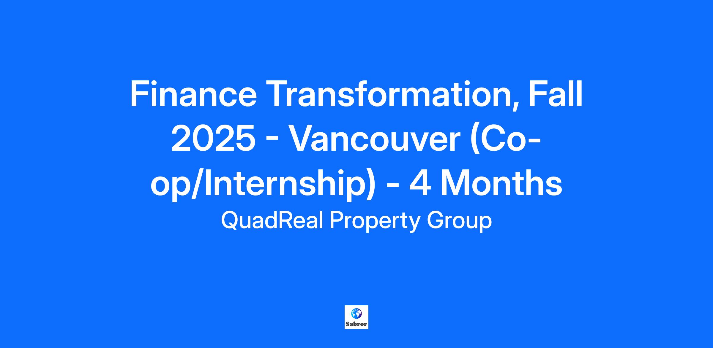 About QuadReal Property Group QuadReal Property Group is a global real estate investment, operating and development company headquartered in Vancouver, British Columbia. Its assets under management are $94 billion. From its foundation in Canada as a full-service real estate operating company, QuadReal has expanded its capabilities to invest in equity and debt in both the public and private markets. QuadReal invests directly, via programmatic partnerships and through operating platforms in which it holds an ownership interest. QuadReal seeks to deliver strong investment returns while creating sustainable environments that bring value to the people and communities it serves. Now and for generations to come. QuadReal: Excellence lives here. www.quadreal.com We are committed to providing our Co-ops/Interns with a student experience that provides a supportive and engaging learning environment while developing skills and business acumen. Students will have the opportunity to participate in a variety of experiences including our Corporate Speaker Series, Fireside Chats, Volunteer opportunities and Networking events. Eligibility Note: To qualify for a student (Co-op/Internship) opportunity, students must be enrolled in their academic studies at a post-secondary institution (university/college) and must be returning to school after completion of their work term with QuadReal. If you are a student registered in an official co-op program at your post-secondary institution and completion of a final work term is a mandatory component for you to graduate, you are eligible to apply with the understanding that you will leave QuadReal at the end of your work term or have the possibility to be considered for full-time opportunities. Based in Vancouver, the Co-op/Intern, Finance Transformation, will report to the Vice President, Finance Transformation, and will provide administrative support, and work on projects and initiatives that include but are not limited to finance program management and process optimization. We are seeking a proactive individual with excellent organizational and communication skills and a keen interest in finance. What We Offer: An organization and leaders that support your development through meaningful work experience A Student Mentorship Program designed to provide 1:1 support throughout your experience Opportunities to build your industry knowledge through Corporate Speaker Series & Fireside Chats Giving back to community with your peers and team members through volunteering events Opportunities to build long lasting industry and professional relationships What You Will Experience: Provide administrative support to the VP, Finance Transformation Assist on a variety of various projects and initiatives, such as: completing tasks related to tracking project status and reporting and helping implement a project management software solution assisting in process optimization projects helping curate training courses for a finance training program Office duties such as note taking, database entry, and preparing PowerPoint presentations may be required May assist with other duties as assigned What You Will Bring: Enrolled in a Business Administration, Finance or Accounting program Excellent communication and presentation skills; demonstrate an ability to effectively communicate and present results that articulate key themes and messages Ability to allocate one’s time effectively, work under pressure and manage deadlines; ability to handle multiple demands, competing priorities; willing to learn and adapt to changes in a dynamic environment; organized; detailed orientated and a self-starter Must have advanced knowledge in Excel, MS Office applications. Experience with computers (e.g., ERP systems) is an asset. Quick to learn new computer applications. Previous accounting or finance experience is an asset Embrace and pro-actively support QuadReal’s values and its culture of environmental sustainability and corporate and social responsibility Excellent communication, oral and written; able to develop and sustain cooperative working relationships; able to be flexible and work with all types of personalities; able to exercise confidentiality and places a priority on client service. Don’t have all of the above skills? Don’t worry. We still want to hear from you! The expected hourly range for this role is $23 to $25. #LI-DNP Note to Recruiters: QuadReal does not accept unsolicited resumes from any source other than directly from a candidate. Any unsolicited resumes sent to QuadReal, directly or indirectly, will be considered QuadReal property. QuadReal will not pay a fee for any placement resulting from the receipt of an unsolicited resume. A recruiting agency must first have a valid, written and fully executed agency agreement contract for engaged services to submit resumes. QuadReal Property Group will provide reasonable accommodation at any time throughout the hiring process for applicants with disabilities or for those needing job postings in an alternate format. If you require accommodation, please advise the Talent Acquisition team member you are working with and include the following: Job posting #, your name and your preferred method of contact. At QuadReal, we create spaces that enhance the lives of the people and communities we serve. Headquartered in Vancouver, Canada, our vision is to be a leading global real estate partner—driving meaningful impact while delivering prudent growth and strong returns. With a global presence across Canada, the U.S., Asia, and the UK, our success is built on our values—integrity, collaboration, performance, innovation, and responsibility. Dedicated teams and like-minded partners are why we are one of the world’s leading real estate companies. Join an exceptional team of over 1,900 professionals in an environment that empowers you to grow, excel, and make a difference. Together, we’re reimagining an industry and building a culture where 
