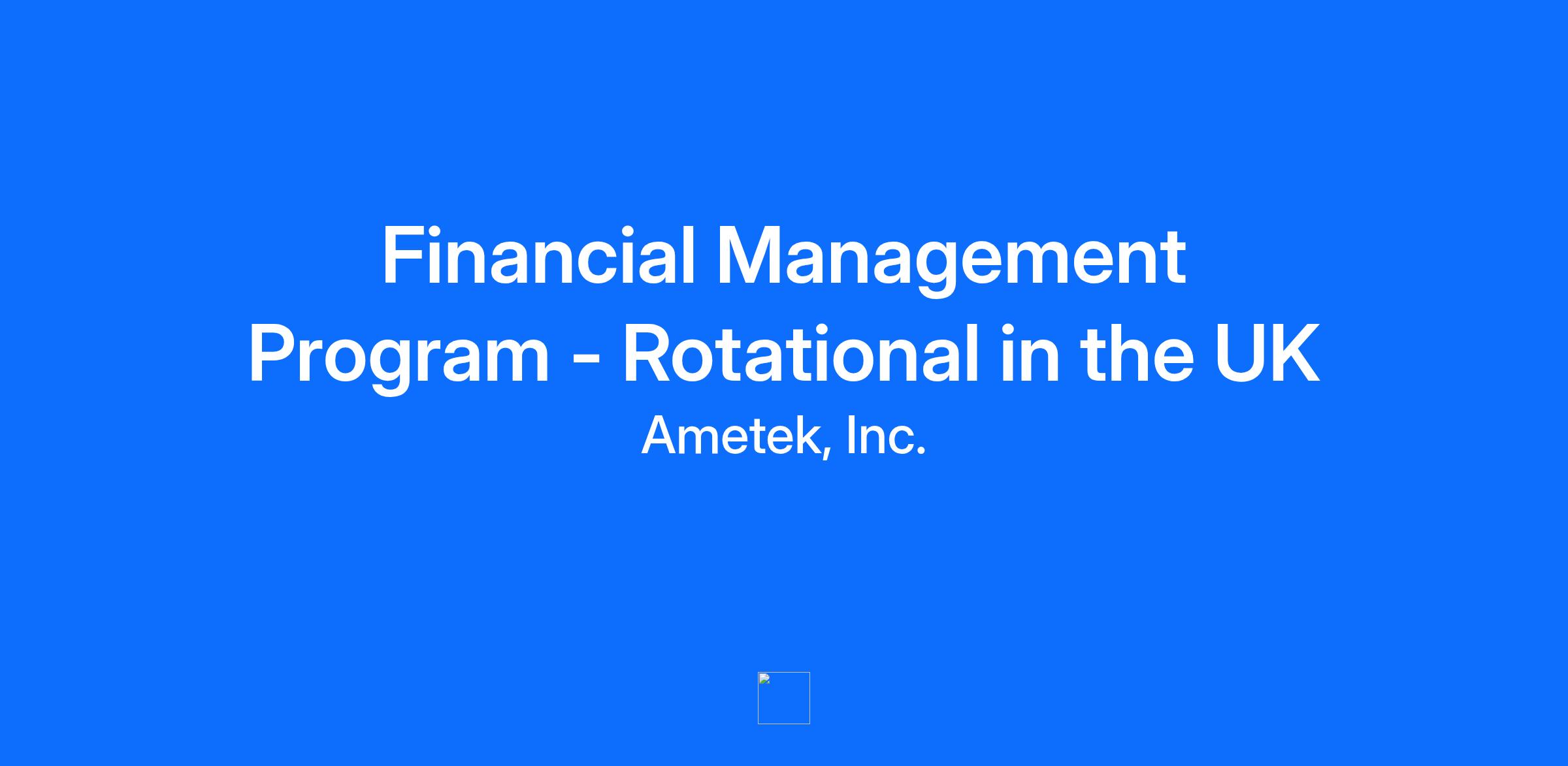 AMETEK believes in developing its leaders from within. As a Financial Management Associate, you will be part of a small and select group of college students chosen each year. This program is open to Winter 2025 or Spring 2026 and/or individuals with under 2 years of professional experience in Accounting or Finance. During the 3-year program, you will relocate to another domestic business location at the start of each rotation which will start each year in July. Personalized Attention and Experiences to Advance Your Career: Individual Development Plan – to thoughtfully track your career decisions. Personal Mentor – single contact to provide you with guidance and advice throughout the 3-year program. Networking Opportunities – periodic events for you to build relationships with other rotational program participants and AMETEK colleagues. Educational Sessions – to be delivered by AMETEK executives and outside speakers to impart knowledge of the company and management best practices. Paid Relocation – financial assistance for each geographic move through the program and beyond. Global Operations – a working visit to at least one AMETEK facility outside of the United States Competitive Benefits – health, retirement, tuition reimbursement, paid holidays. Rotational Developmental Assignments: You will participate in three, 1-year rotational assignments with different U.K. based AMETEK businesses. These experiences are designed to prepare you to become a financial leader and business partner in our organization. REQUIREMENTS: Bachelor’s degree in Accounting or Finance Minimum 2:1 degree classification Flexible and adaptable to new situations Inquisitive nature and a passion for solving problems Ability to work both independently and as a team contributor Ability to relocate for expanded career opportunities