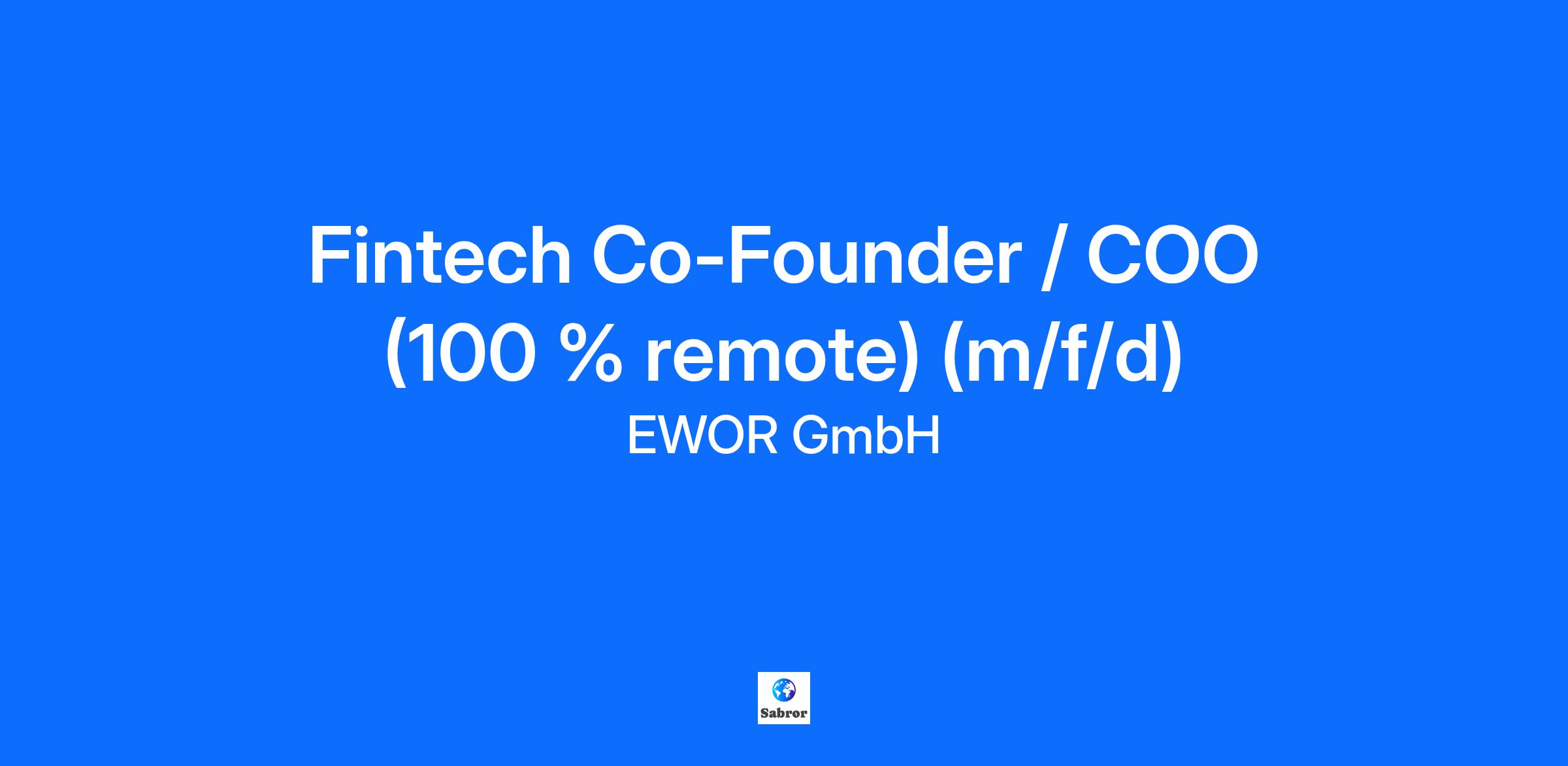 Fintech Co-Founder / COO (100 % remote) (m/f/d)