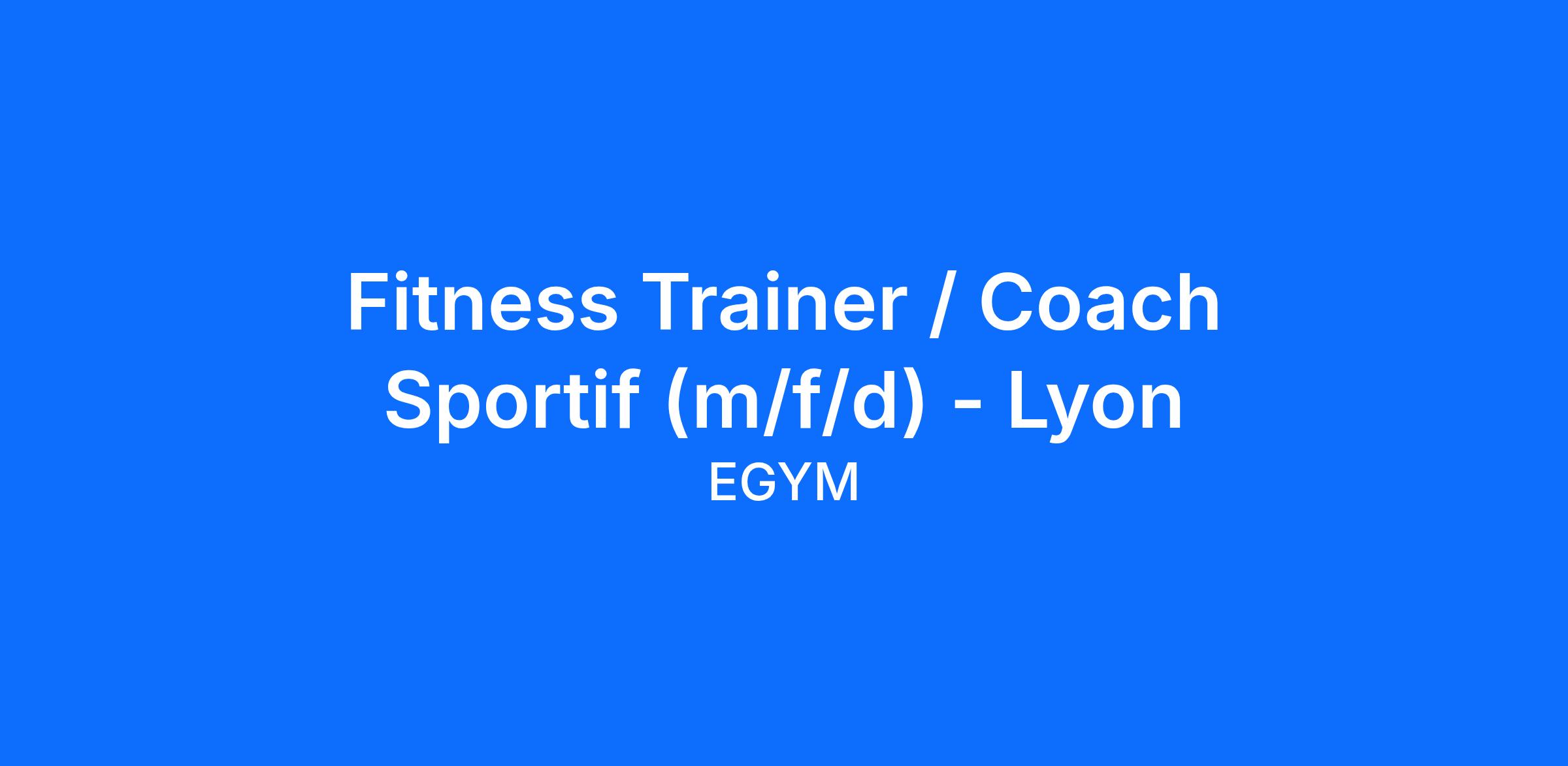 Fitness Trainer / Coach Sportif (m/f/d) - Lyon