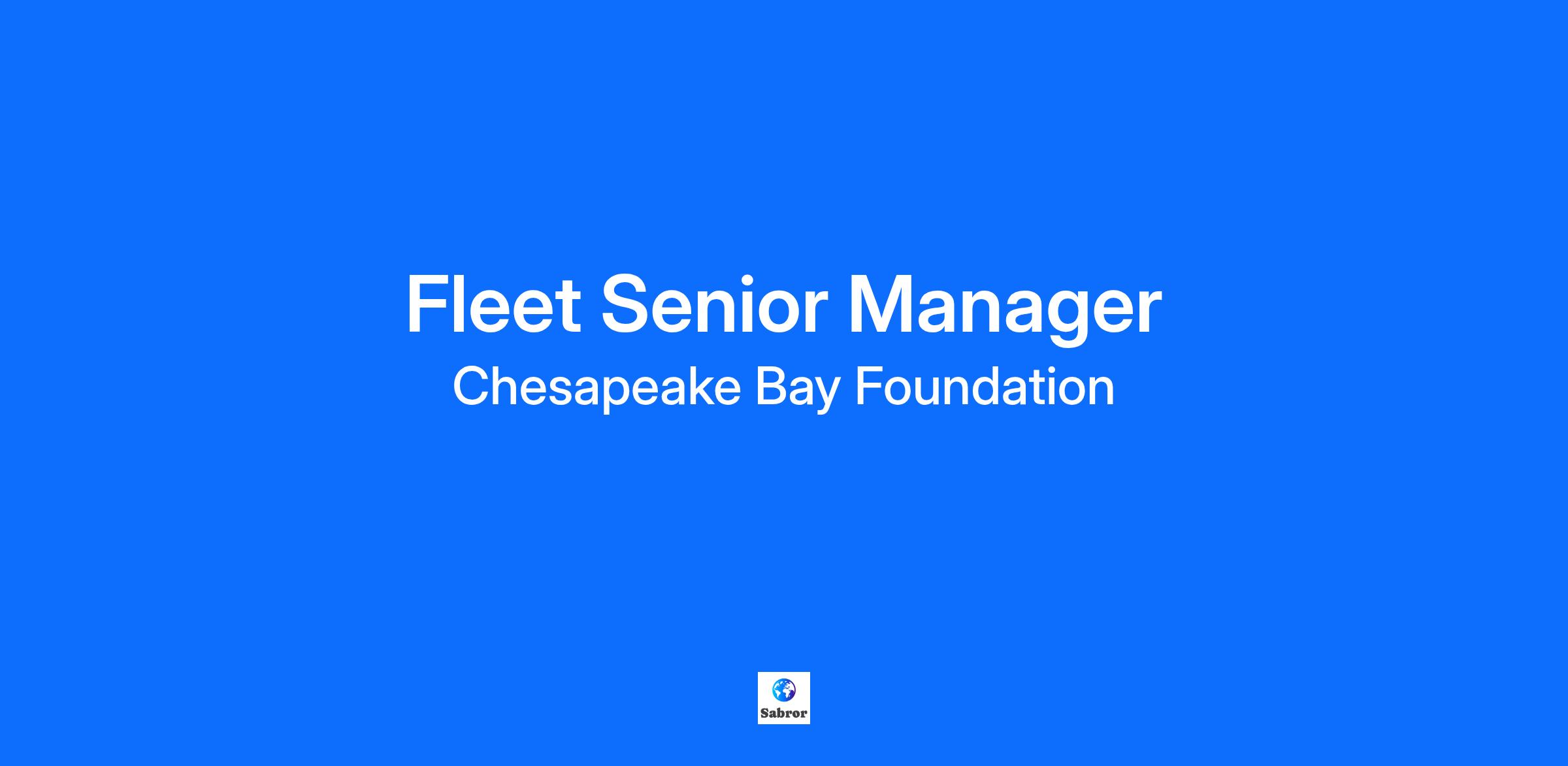 The Chesapeake Bay Foundation seeks a Fleet Senior Manager in the Operations Department to be based at the Philip Merrill Environmental Center located in Annapolis, MD.