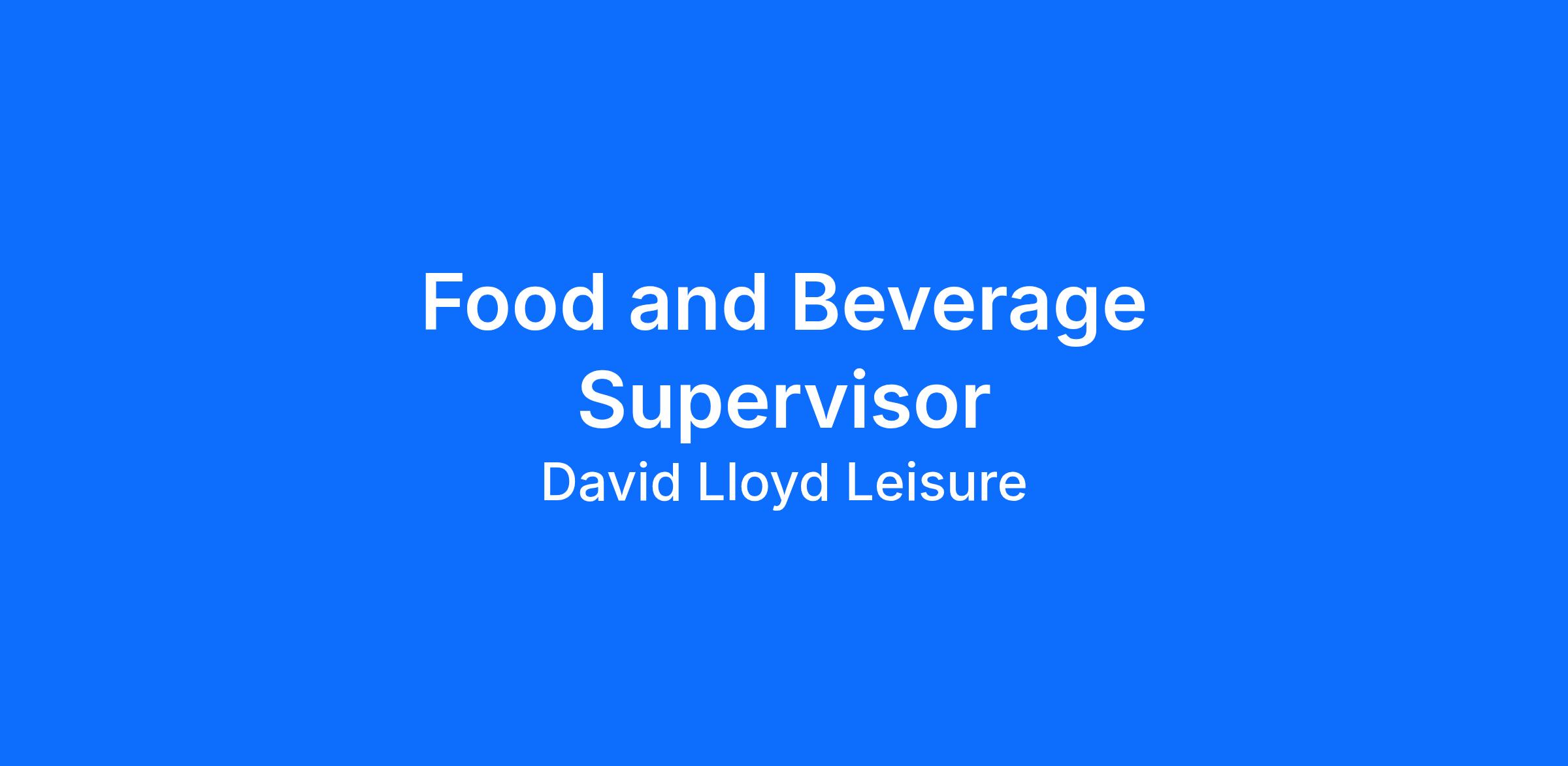 As a Food and Beverage Supervisor, we are looking for someone who is: