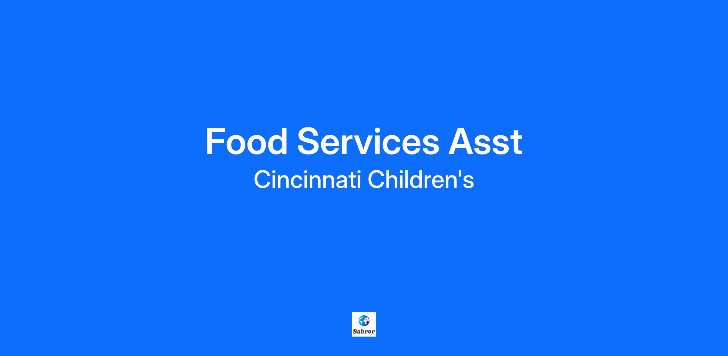 JOB RESPONSIBILITIES Duties - Under the direct supervision of management, this position sets up, works, and cleans respective positions of the patient tray line, dish machine, pots & pans, and cafeteria. This position may deliver patient trays, and practices safe and sanitary habits while performing all assigned activities according to established standards. Maintain a clean environment for our patients, visitors, and employees. This position performs numerous activities that require interaction with co-workers and guests, must function as a team player, and provide prompt, courteous service that exemplifies our commitment to service excellence. Operations - Assures that proper food handling, temperature readings, and sanitation procedures are followed. Maintains excellent customer service, while meeting our guests' requests. Dish room staff is to retrieve dirty trays, clean all dishes to prepare for use, empty trash, and take trash carts to dumpster. Sanitation and Conservation - Complete required HACCP logs. Handle food in a sanitary manner; maintain food at temperatures above 140 or below 41 degrees. Dish Machine log and Sanitizer log is to be completed to meet Board of Health and Department standards. Customer Service - Demonstrate effective customer service to fellow employees, customers, managers and visitors. Follow CARES standards at all times. Performs other duties s assigned. Safety - Maintain safety program within the department. Ensure safety concerns are reported appropriately. JOB QUALIFICATIONS No directly related experience Preferred: High school diploma or equivalent Primary Location College Hill Campus Schedule Part time Shift Day (United States of America) Department College Hill Food Service Employee Status Regular FTE 0.7 Weekly Hours 28 *Expected Starting Pay Range *Annualized pay may vary based on FTE status $16.50 - $19.80 Market Leading Benefits Including*: Medical coverage starting day one of employment. View employee benefits here. Competitive retirement plans Tuition reimbursement for continuing education Expansive employee discount programs through our many community partners Shift Differential, Weekend Differential, and Weekend Option Pay Programs for qualified positions Support through Employee Resource Groups such as African American Professionals Advisory Council, Asian Cultural and Professional Group, EQUAL - LGBTQA Resource Group, Juntos - Hispanic/Latin Resource Group, Veterans and Military Family Advocacy Network, and Young Professionals (YP) Resource Group Physical and mental health wellness programs Relocation assistance available for qualified positions *Benefits may vary based on FTE Status and Position Type About Us At Cincinnati Children’s, we come to work with one goal: to make children’s health better. We believe in a holistic team approach, both in caring for patients and their families, and in advancing science and discovery. We strive to do better and find energy and inspiration in our shared purpose. If you want to be the best you can be, you can do it at Cincinnati Children’s. Cincinnati Children's is: Recognized by U.S. News & World Report as a top 10 best Children's Hospitals in the nation for more than 15 years Consistently among the top 3 Children's Hospitals for National Institutes of Health (NIH) Funding Recognized as one of America’s Best Large Employers (2025), America’s Best Employers for New Grads (2025) One of the nation's America’s Most Innovative Companies as noted by Fortune Consistently certified as great place to work A Leading Disability Employer as noted by the National Organization on Disability Magnet® designated for the fourth consecutive time by the American Nurses Credentialing Center (ANCC) We Embrace Innovation—Together. We believe in empowering our teams with the tools that help us work smarter and care better. That’s why we support the responsible use of artificial intelligence. By encouraging innovation, we’re creating space for new ideas, better outcomes, and a stronger future—for all of us. Comprehensive job description provided upon request. Cincinnati Children’s is proud to be an Equal Opportunity Employer committed to creating an environment of dignity and respect for all our employees, patients, and families. All qualified applicants will receive consideration for employment without regard to race, color, religion, sex, age, genetic information, national origin, sexual orientation, gender identity, disability or protected veteran status. EEO/Veteran/Disability Cincinnati Children’s is proud to be an Equal Opportunity Employer committed to creating an environment of dignity and respect for all our employees, patients, and families. All qualified applicants will receive consideration for employment without regard to race, color, religion, sex, age, genetic information, national origin, sexual orientation, gender identity, disability or protected veteran status. EEO/Veteran/Disability Completion of Application You will be asked to fully complete each page of the application to the best of your knowledge. Failure to complete all parts of the application will result in a delay in processing and/or rejection of the application. Need Assistance or Accommodation? Assistance with Application: For assistance or technical support, email applicationassistance@cchmc.org. Accommodation: We provide reasonable accommodations to qualified individuals with disabilities in accordance with the Americans with Disabilities Act and applicable state and local law. If you require an accommodation in the application process, email applicationassistance@cchmc.org.