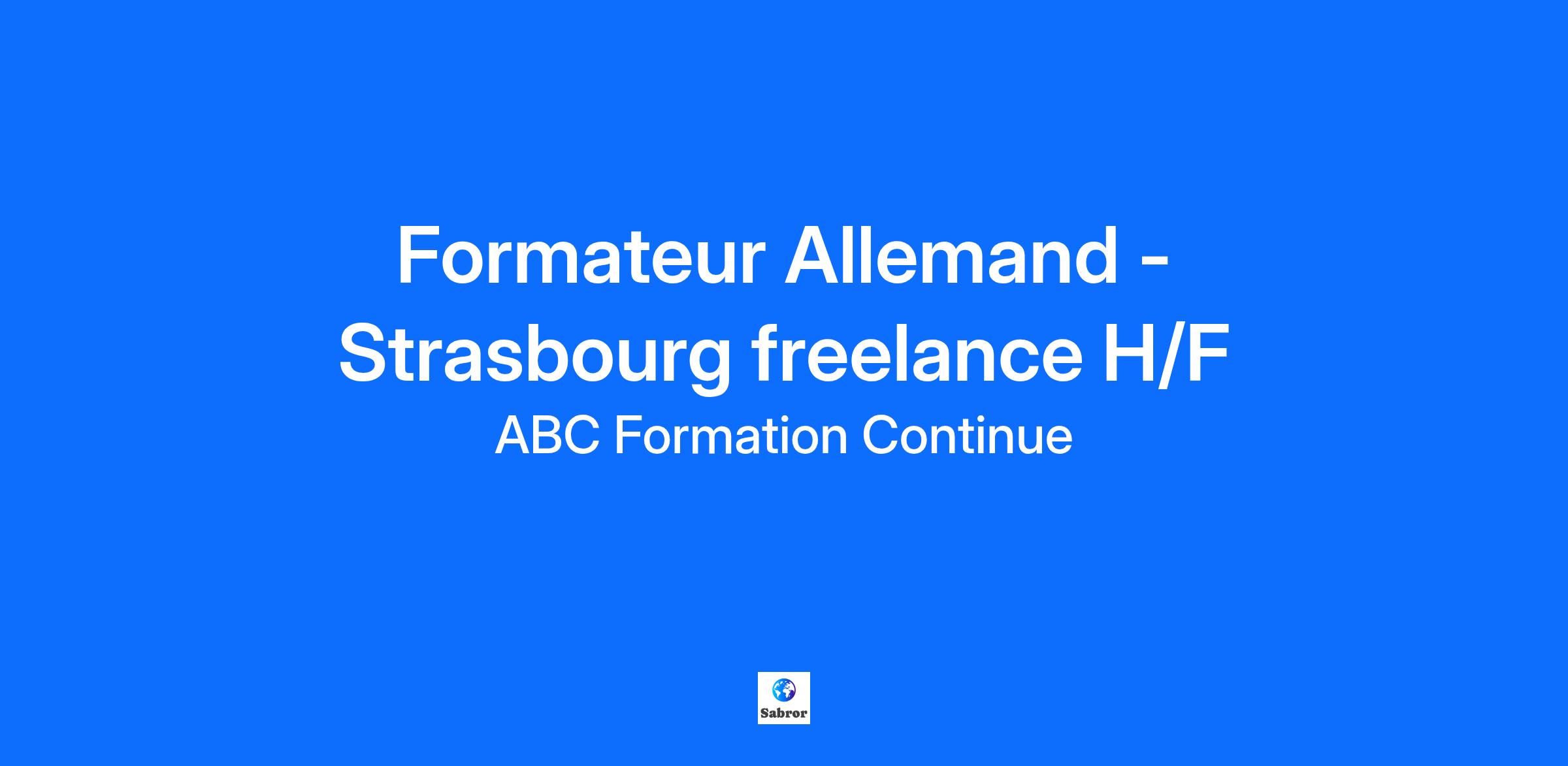 ABC Formation Continue est un organisme de formation qui puise son expertise : Dans une expérience de la pédagogie depuis 20 ans Dans la connaissance de l’environnement de l’entreprise depuis 20 ans Sur un réseau de 36 agences dans des villes de taille moyenne Sur un réseau de formateurs performants Dans le cadre du développement de notre agence de Strasbourg , nous recherchons un formateur freelance/indépendant en Allemand (H/F) pédagogues et disposant de ses supports de formation pour animer des formations individuelles en présentiel dans le cadre de missions ponctuelles. Vous avez une excellente connaissance en Allemand vous avez envie de transmettre vos connaissances. Vous êtes disponible sur l'un des créneaux suivants : L’apprenant est flexible en semaine Format : Formations individuelles en présentiel , 30 heures de formation Salaire : 30.80€ TTC de l'heure Lieu du poste: Strasbourg et alentours