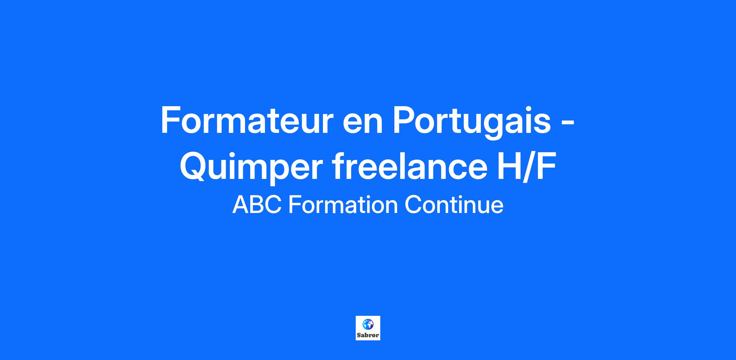 ABC Formation Continue est un organisme de formation qui puise son expertise : * Dans une expérience de la pédagogie depuis 20 ans * Dans la connaissance de l’environnement de l’entreprise depuis 20 ans * Sur un réseau de 36 agences dans des villes de taille moyenne * Sur un réseau de formateurs performants Dans le cadre du développement de notre agence de Quimper, nous recherchons un formateur freelance/indépendant en Portugais (H/F) pédagogues et disposant de ses supports de formation pour animer des formations individuelles en présentiel dans le cadre de missions ponctuelles. Vous avez une excellente connaissance en Portugais vous avez envie de transmettre vos connaissances. Vous êtes disponible sur l'un des créneaux suivants : * Demi-journée en semaine Format : Formation individuelle en présentiel , 30 heures de formation Salaire : 30.80€ TTC de l'heure Lieu du poste: NEVEZ (29920) ou Quimper