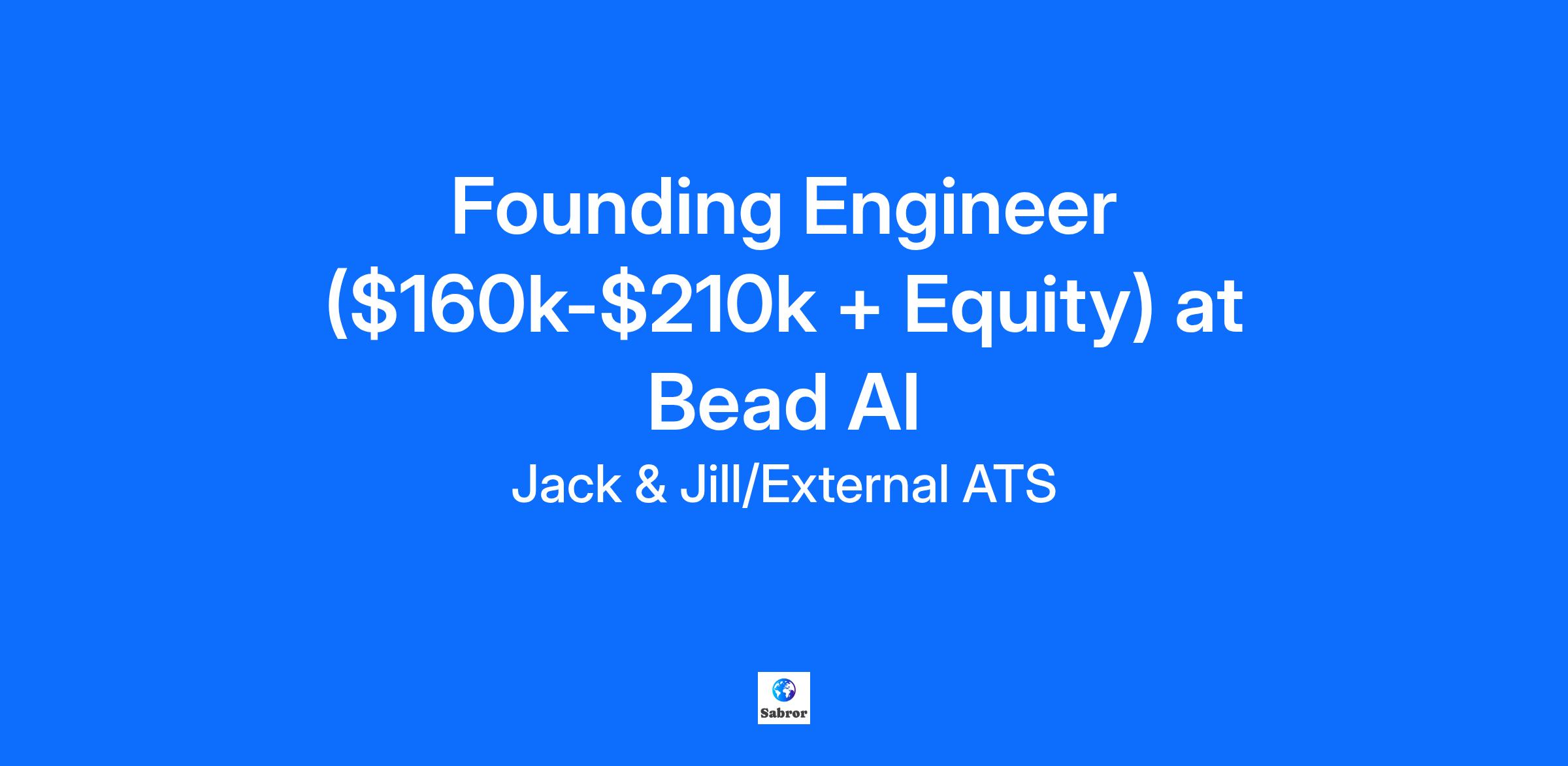 This is a job that we are recruiting for on behalf of one of our customers. To apply, speak to Jack. He's an AI agent that sends you unmissable jobs and then helps you ace the interview. He'll make sure you are considered for this role, and help you find others if you ask. Founding Engineer Salary: $160k-$210k + Equity Company Description: Bead AI - VC-backed AI startup revolutionizing data auditing Job Description: As a Founding Engineer at Bead AI, you will be instrumental in developing and scaling the core audit product, enabling customers to automate manual data processing. This role involves setting fault-tolerant platform foundations, contributing to product roadmap, and owning features end-to-end, driving significant impact in an early-stage AI company. Location: London, UK; San Francisco, USA Why this role is remarkable: Opportunity to build the backbone of a core AI audit product from the ground up, replacing manual processing of vast unstructured data. Join a fast-growing, VC-backed AI startup at an early stage, offering significant influence on product direction and company culture. High agency role with end-to-end ownership, ideal for future founders seeking deep impact and potential relocation to SF with visa support. What you will do: Develop and scale the backbone of Bead AI's core audit product, scoping, building, and launching key features. Set the foundational architecture for a fault-tolerant platform capable of executing resource-intensive workflows on sensitive data. Contribute significantly to the product roadmap, balancing customer feedback with long-term product health and vision. The ideal candidate: Has designed, built, and scaled robust systems, with a preference for AWS experience. Possesses a strong drive to move quickly, own problems end-to-end, and iterate with limited guidance. Comfortable working client-facing when necessary and balancing pragmatism with rigor in technical decisions. How to Apply: To apply for this job speak to Jack, our AI recruiter. Step 1. Visit our website Step 2. Click 'Speak with Jack'. Step 3. Login with your LinkedIn profile. Step 4. Talk to Jack for 20 minutes so he can understand your experience and ambitions Step 5. If the hiring manager would like to meet you, Jack will make the introduction