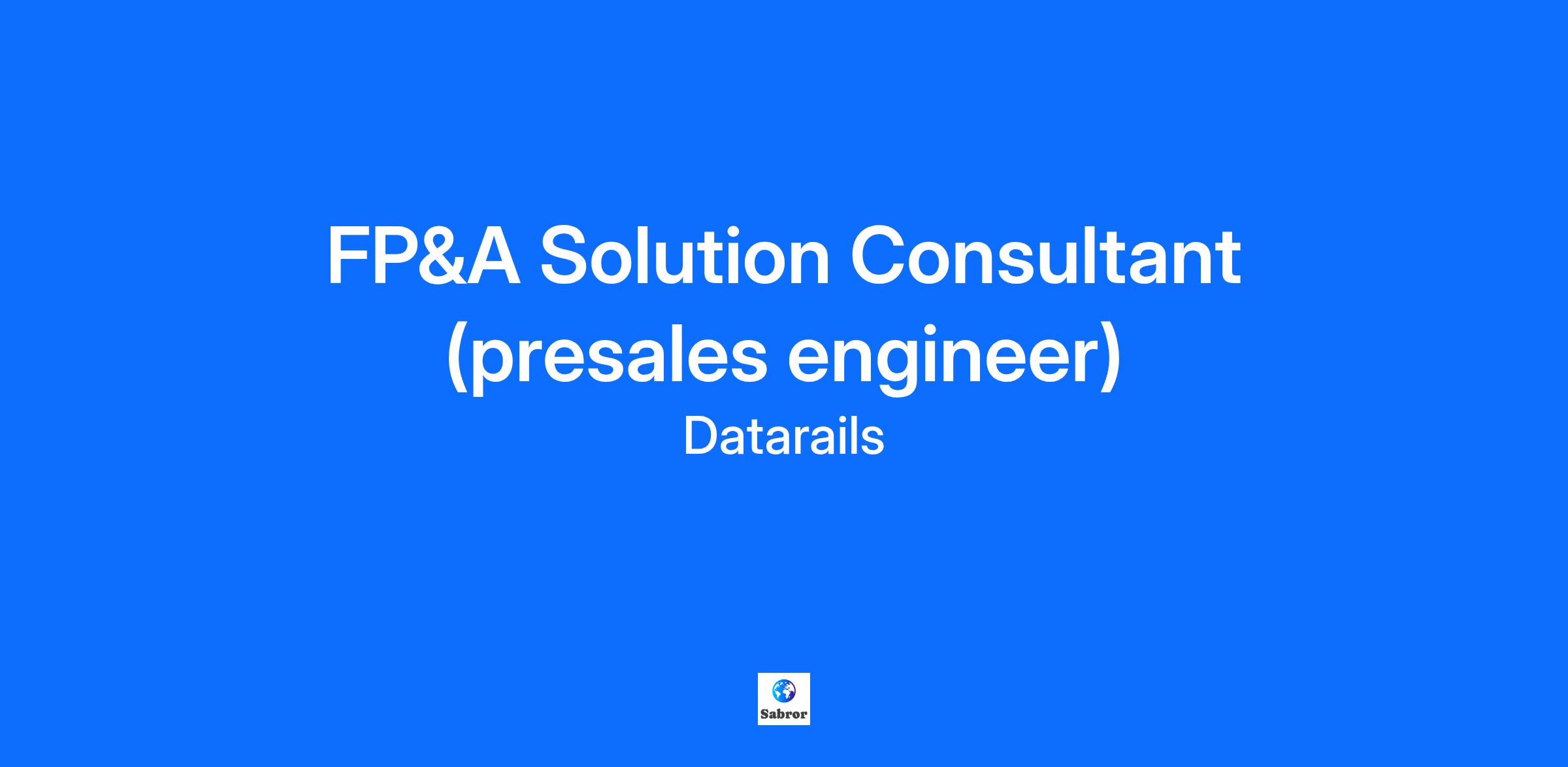 Datarails is the financial planning and analysis platform that automates data consolidation, reporting and planning, while enabling finance teams to continue using their own Excel spreadsheets and financial models. Datarails integrates with the most popular accounting software, ERPs and CRMs so all your data can be consolidated. Reduce risk, make informed decisions, and ensure stakeholders have the most reliable data at their fingertips. Transform your Excel into a lean, mean, FP&A machine. Join our dynamic team as a PreSales FP&A Solutions Consultant and play a pivotal role in driving the future of FP&A! Are you ready to showcase your skills to CFOs and revolutionize finance? Love Microsoft Excel (we do, too!)? This is an opportunity to apply your expertise and transform FP&A from a task-centric function to a value-added powerhouse. This is a 100% remote, full-time (~40 hours/week) position open to candidates in the UK and Germany. The work schedule will require some overlap with US Eastern time, but we are flexible and will work with you to determine a specific schedule. About The Role null What You'll Do Engage in deep discussions with CFOs and finance teams to understand their FP&A business requirements, internal processes, and customize their Datarails experience. Conduct captivating product demos with finance teams, understanding their pain points and identifying complementary solutions. Collaborate with internal teams to develop Proof of Concepts (POCs) that showcase the capabilities and value of Datarails. Partner closely with the sales team, evaluating and assisting in sales strategies and providing solution recommendations. Leverage your in-depth understanding of competitive products and technologies to position Datarails effectively in sales presentations. Assist in the development of proposals and responses to RFI and RFP documents. Requirements 5-8+ years of progressive experience in accounting/finance, FP&A, or relevant sales engineering roles. Strong grasp of financial applications, including budgeting, planning, forecasting, month-end close, financial reporting, and consolidation platforms + intermediate to advanced Excel skills Ability to gather and understand potential customers' requirements, using a consultative approach to effectively demonstrate how Datarails meets their needs. Excellent presentation skills, with the ability to communicate complex concepts effectively and clearly. Strong business acumen, collaborative skill set, and a team-oriented everyone-wins attitude. Understanding of budgeting, forecasting, and reporting processes across multiple industries such as manufacturing, services, banking, insurance, etc., a plus Bachelor's degree in Accounting or Business/Finance, a plus. What We Need null What We Offer Competitive compensation, ongoing recognition, and, most importantly, a chance to learn, contribute, and develop your skills. A supportive, agile, and creative work environment with brilliant colleagues! Private medical and dental insurance through BUPA Pension scheme with salary sacrifice OR net pay options with 3% employer pension contribution 20 days of PTO + 8 paid company holidays + 7 days of company-provided sick leave We want to make sure everyone has an equal chance to participate and make a difference. Datarails is an equal opportunity employer and prioritizes building a diverse and inclusive workplace. We provide equal employment opportunities to all employees and applicants of any type and do not discriminate based on race, color, religion, national origin, gender, age, sexual orientation, physical or mental disability, genetic information or characteristic, gender identity and expression, veteran status, or other non-job related characteristics or other prohibited grounds specified in applicable federal, state, and local laws. Datarails’ policy is to comply with all applicable laws related to nondiscrimination and equal opportunity and will not tolerate discrimination or harassment based on any of these characteristics. This policy applies to all terms and conditions of employment, including recruiting, hiring, placement, promotion, termination, layoff, recall, transfer, leaves of absence, compensation, and training. EEO Statement null