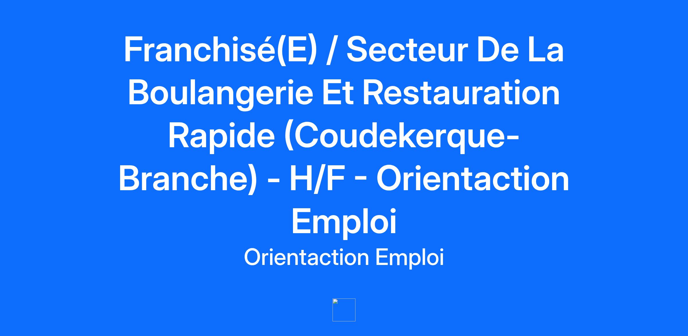 Franchisé(E) / Secteur De La Boulangerie Et Restauration Rapide (Coudekerque-Branche) - H/F - Orientaction Emploi