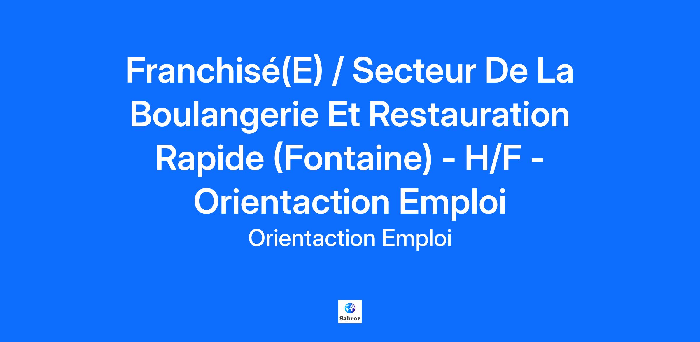 Franchisé(E) / Secteur De La Boulangerie Et Restauration Rapide (Fontaine) - H/F - Orientaction Emploi