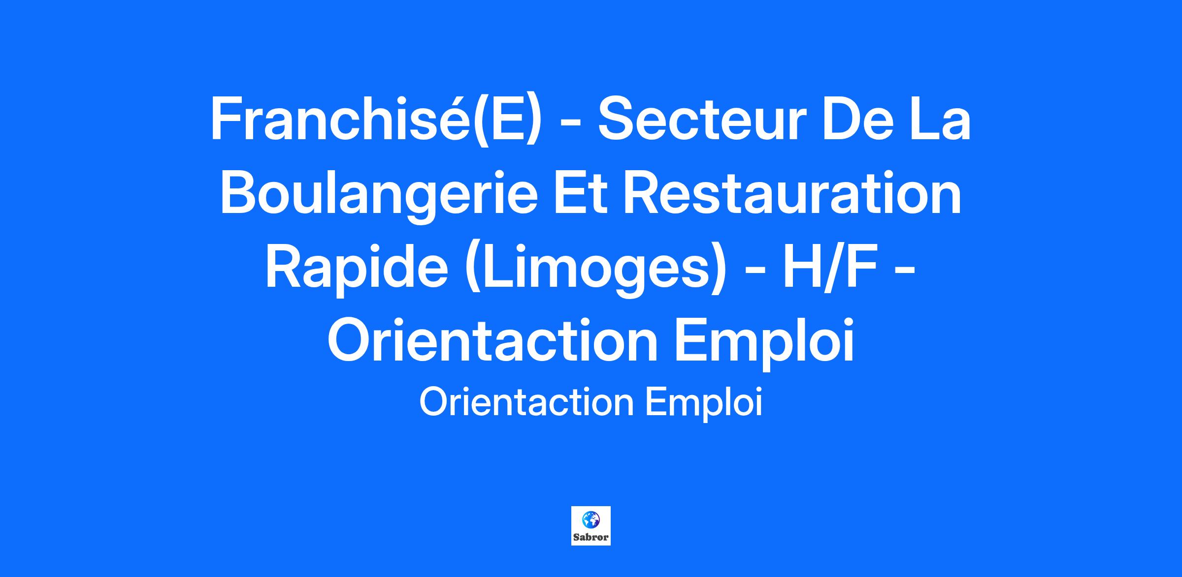 Franchisé(E) - Secteur De La Boulangerie Et Restauration Rapide (Limoges) - H/F - Orientaction Emploi