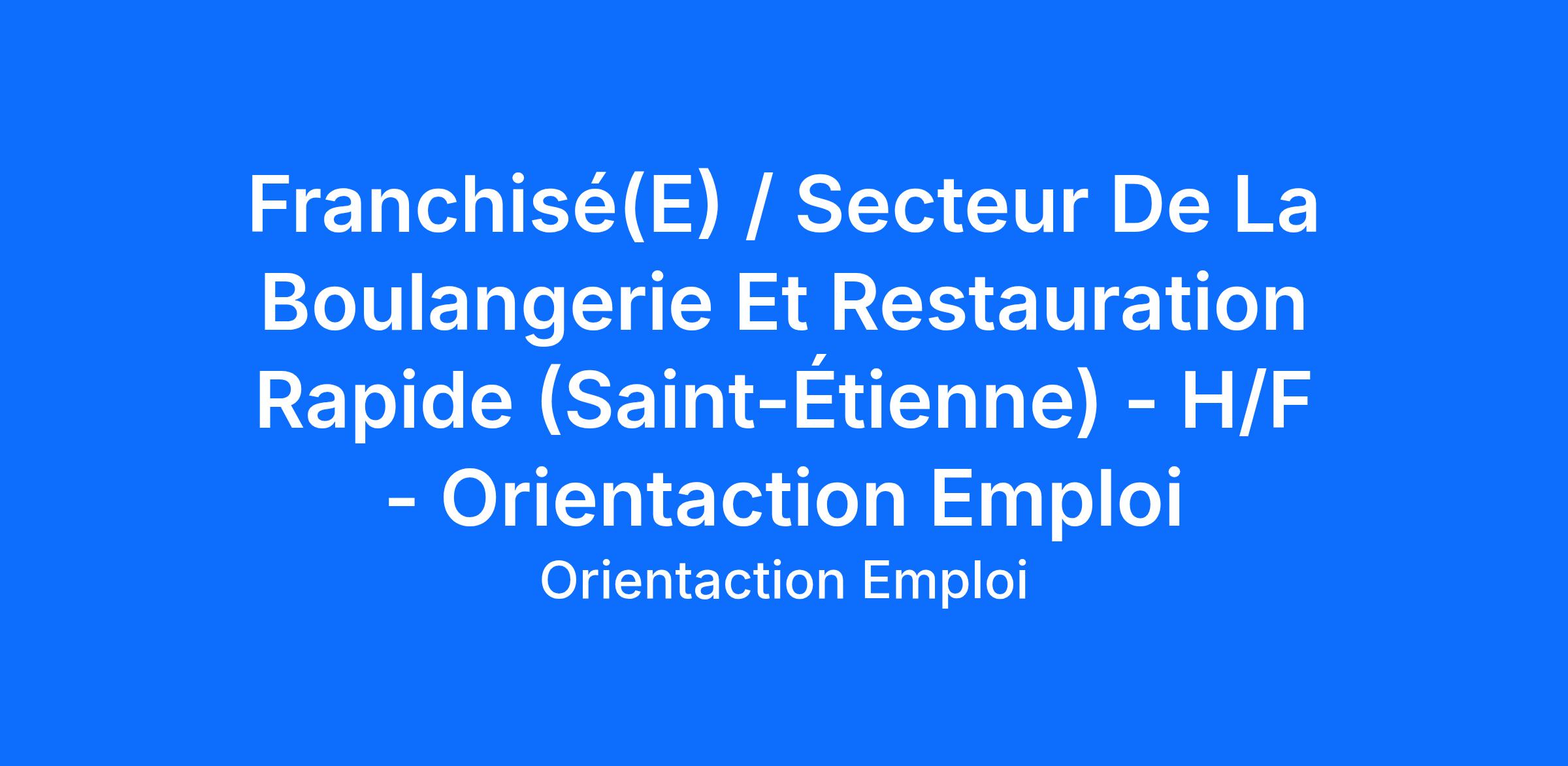 Franchisé(E) / Secteur De La Boulangerie Et Restauration Rapide (Saint-Étienne) - H/F - Orientaction Emploi