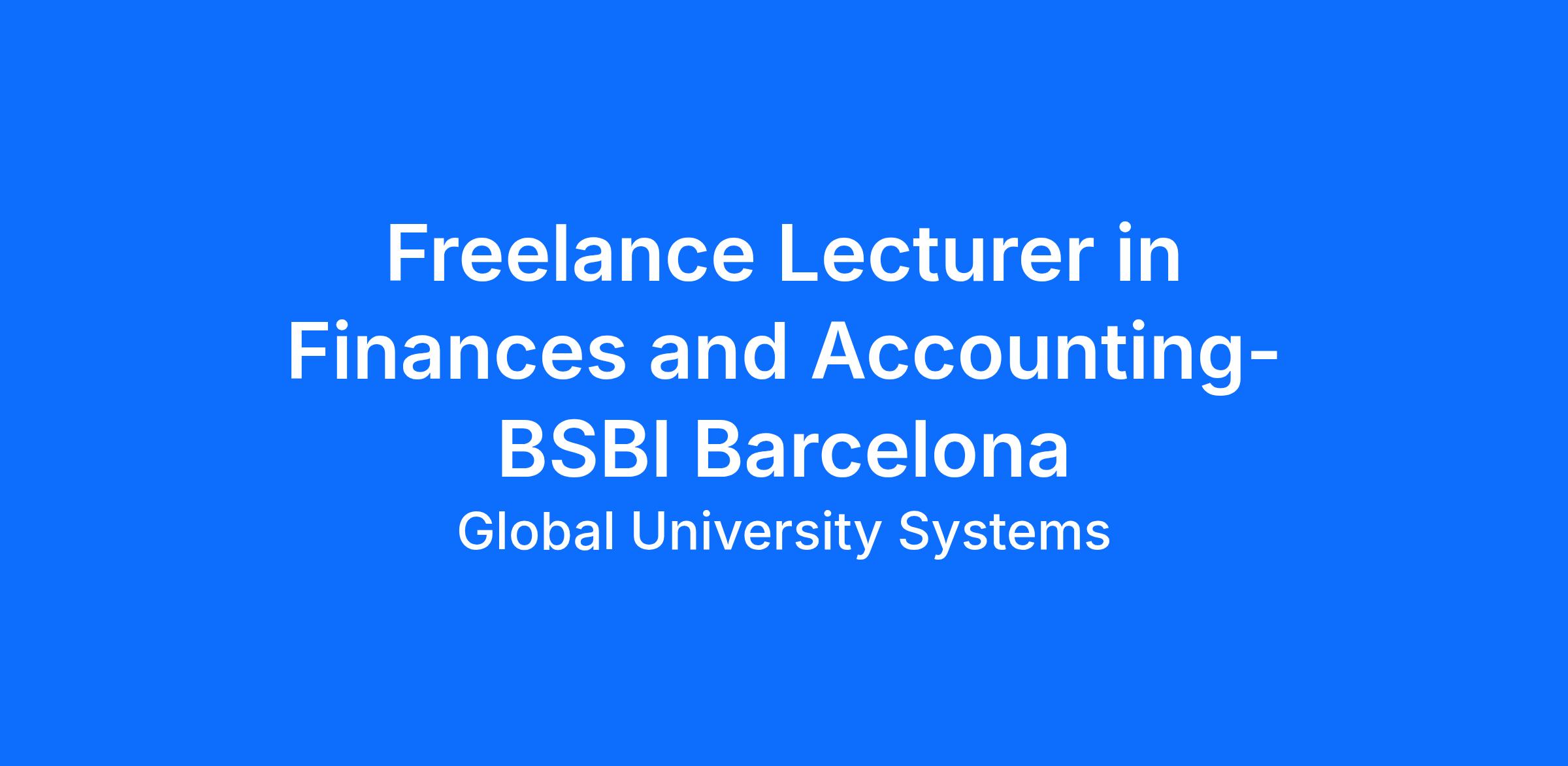 Freelance Lecturer in Finances and Accounting-BSBI Barcelona