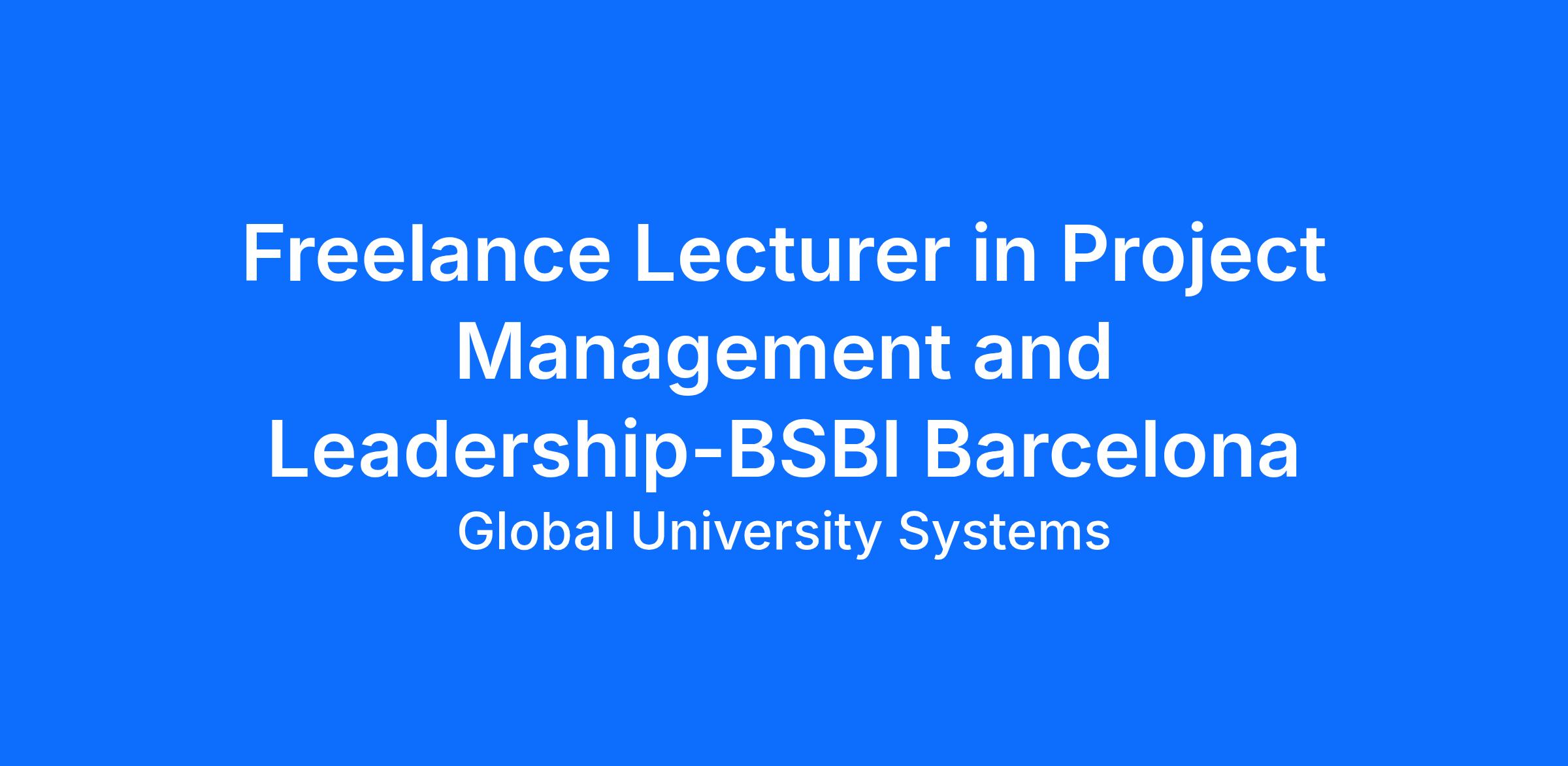 Freelance Lecturer in Project Management and Leadership-BSBI Barcelona