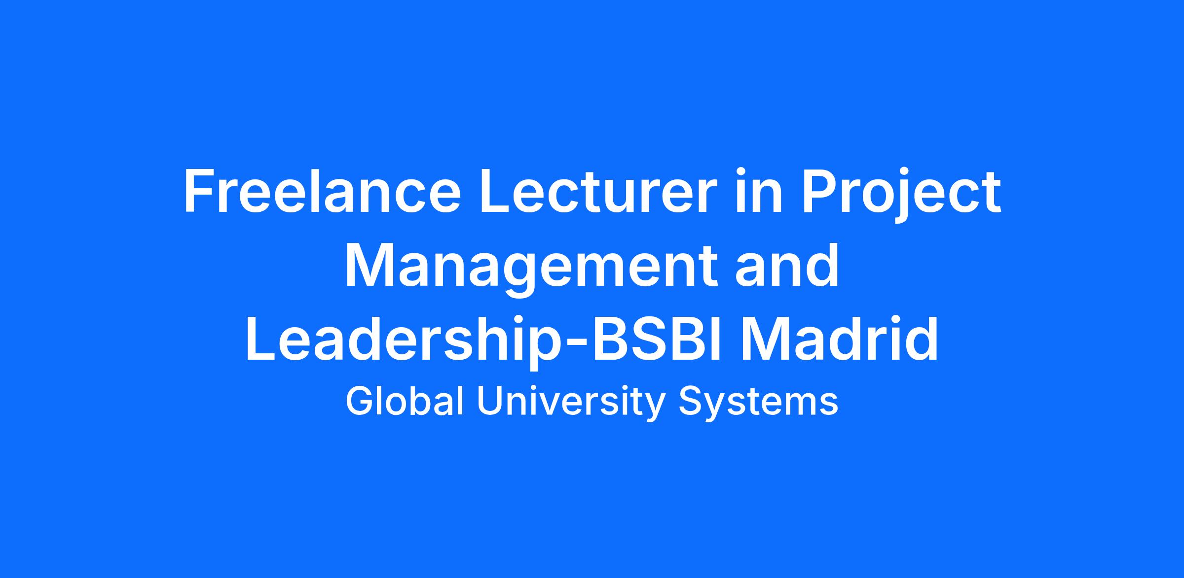 Freelance Lecturer in Project Management and Leadership-BSBI Madrid
