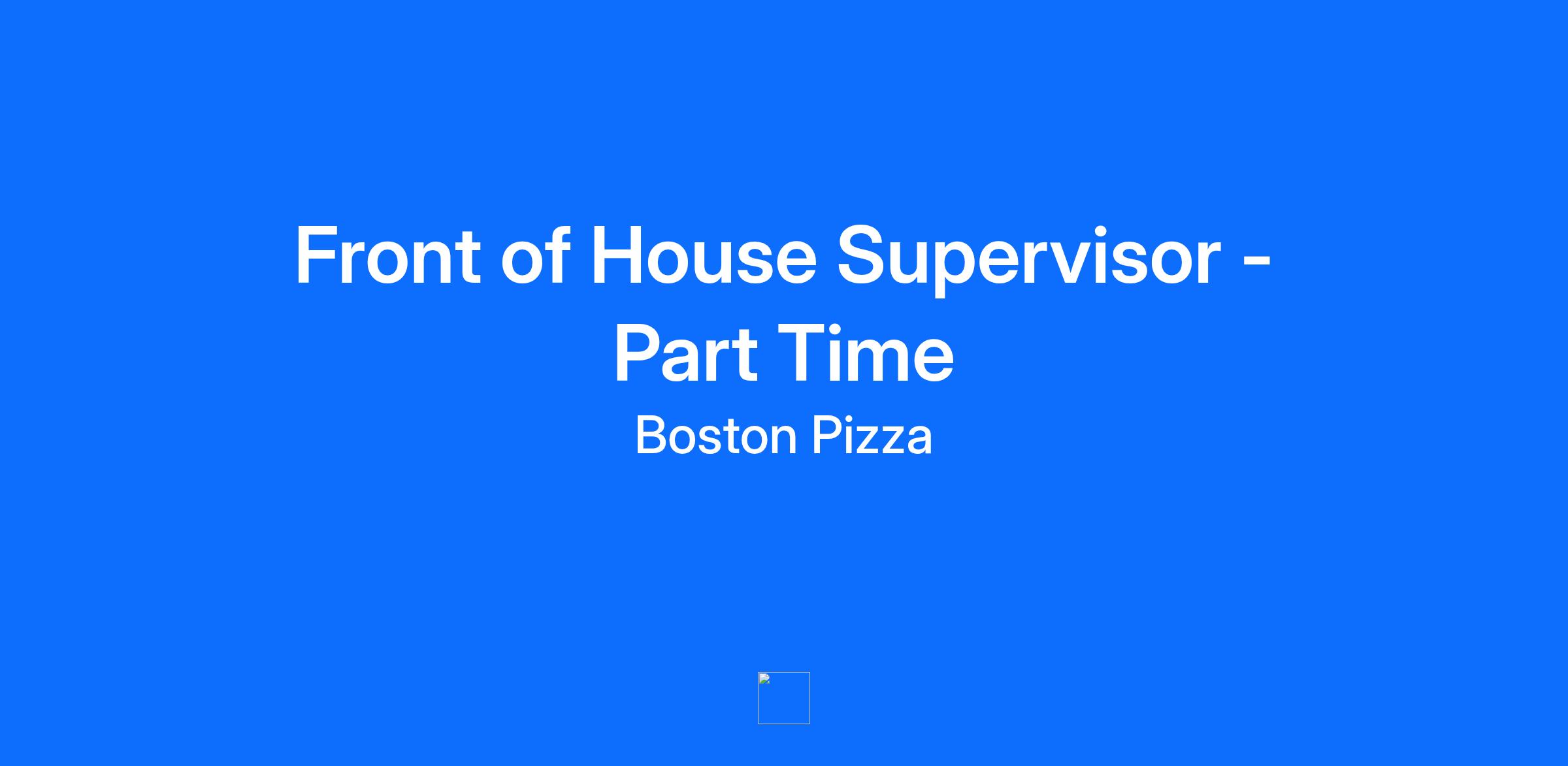 Overview Front of House (FOH) Supervisor A Front of House Supervisor at Canada's leading casual dining restaurant, Boston Pizza, assists the General Manager with the Restaurant’s daily operations. This includes supporting the training, development, and performance management of the Front of House team members. The Front of House Supervisor supports the team to ensure that our most important people, our Guests, and team members, have an excellent Boston Pizza experience from start to finish. They also demonstrate outstanding leadership abilities, believe in championing a fun and safe work environment, and contribute to thriving workplace culture. Responsibilities Why Is BP A Great Place To Work? What is important to you matters to us, so we have raised the bar to provide flexible scheduling that fits your lifestyle and contributes to your life-work balance Come for a job, stay for a career – there are exciting opportunities for career growth within the restaurant or at Boston Pizza head office Build relationships and give back to your local community Boston Pizza Scholarship Program * Leadership Training Programs, and access to dynamic mentorship programs and initiatives A respectful culture and work environment where your feedback matters Fantastic reward and recognition programs What does a successful Front of House Supervisor look like? Leads by example and works "Shoulder to Shoulder" with team members and coaches in the moment Driven to develop existing skills, and is consistently seeking new learning and skill-building moments Achieves goals through strong organizational skills and effective time management Builds relationships by finding common ground and working cohesively with all team members Committed to championing the "Foundations of Hospitality," Boston Pizza's Brand Standards and Food Safety Effectively communicates development opportunities of the team with AGM and FOH manager and supports in these wherever possible Maintains a positive composure and thrives in a fast-paced environment Qualifications Boston Pizza was established over 50 years ago and is proud to be recognized as one of Canada's 50 Top Managed Companies for over 20 years in a row. We are committed to the development & growth of our team members, integrity, philanthropy, and innovation. If you love working with people in a team environment and believe in exceeding the expectations of Guests daily, Boston Pizza is the place for you! Min Max