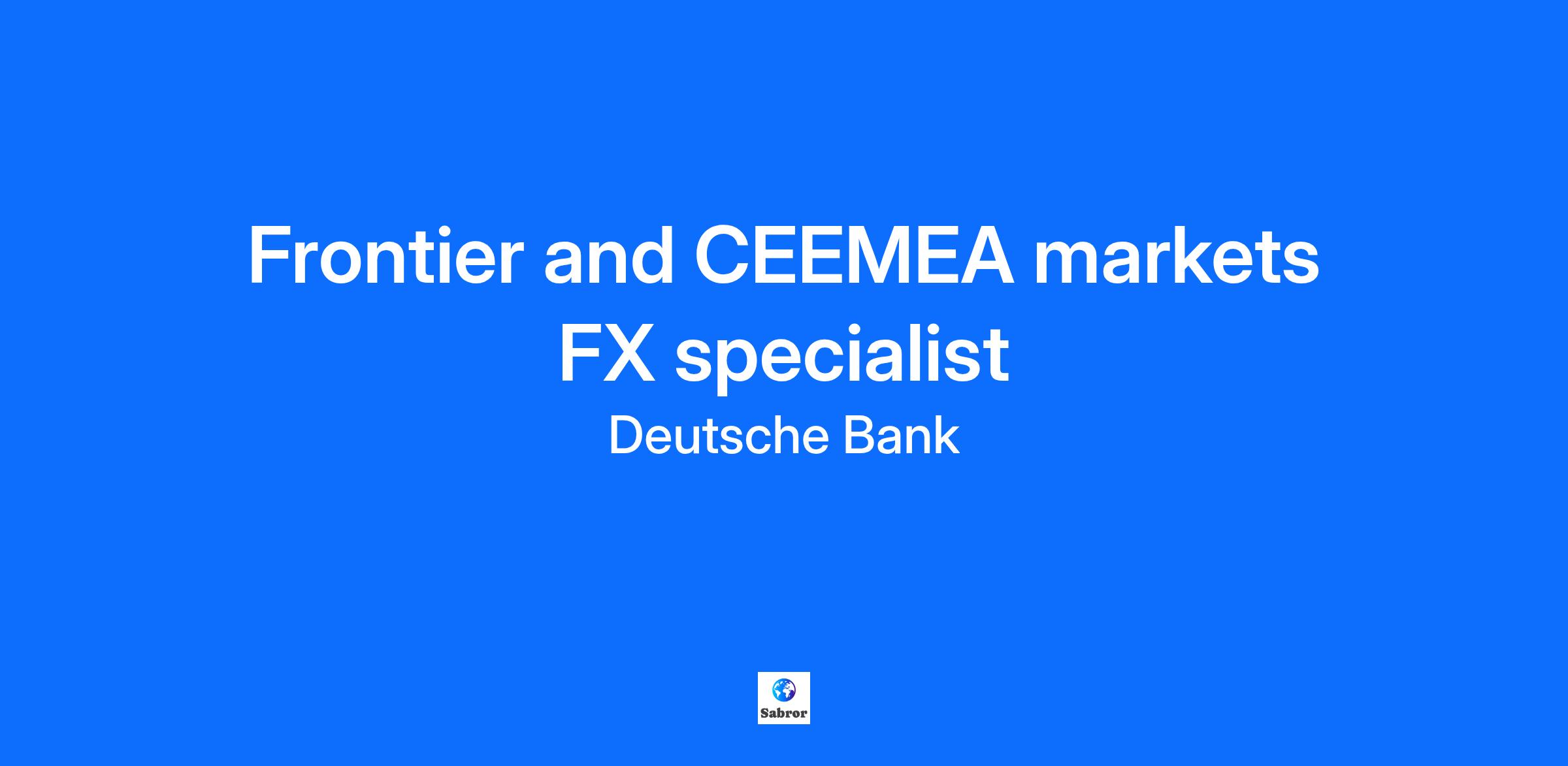 Job Description: Job Title Frontier and CEEMEA markets FX specialist Location London Corporate Title Associate/Vice President Deutsche Bank Research is responsible for economic and financial analysis within Deutsche Bank Group and covers asset allocation, investment recommendations and all major industry sectors. We analyse relevant trends for the bank in financial markets, the economy and society, highlight risks and opportunities and act as consultant for the bank, its clients and stakeholders. Deutsche Bank Research delivers high-quality, analysis and promotes public debate on economic, fiscal, labour market and social policy issues. You will sit with the bank’s highly regarded Emerging Markets CEEMEA Research Team, with a special focus on Frontier local markets. You will be providing insights to institutional investors and corporates on the macroeconomic backdrop and implications for currencies and bonds in emerging markets and the exciting and rapidly growing Frontier universe, including actionable trade ideas and in-depth top down and bottom-up research, and compelling presentations for both internal and external stakeholders. The role will also involve working collaboratively with colleagues in core emerging markets, who are among the top ranked analysts in surveys such as Institutional Investor, and FX, where Deutsche Bank was recently awarded the World’s Best FX Bank Euromoney award. What we’ll offer you A healthy, engaged and well-supported workforce are better equipped to do their best work and, more importantly, enjoy their lives inside and outside the workplace. That’s why we are committed to providing an environment with your development and wellbeing at its centre. You can expect: Hybrid Working - we understand that employee expectations and preferences are changing. We have implemented a model that enables eligible employees to work remotely for a part of their working time and reach a working pattern that works for them Competitive salary and non-contributory pension 30 days’ holiday plus bank holidays, with the option to purchase additional days Life Assurance and Private Healthcare for you and your family A range of flexible benefits including Retail Discounts, a Bike4Work scheme and Gym benefits The opportunity to support a wide-ranging CSR programme + 2 days’ volunteering leave per year Your key responsibilities Responsible for research and authorship of publications including trade ideas and thematic topics on emerging markets, with an especial focus on CEEMEA and Frontier Markets. Track and analyse key economic indicators, political events and policy changes, assessing their impact on financial markets Responsible for developing models and monitors for FX and bonds (to include, but not limited to, valuation, flows, debt sustainability) Engaging with and presenting to clients and internal stakeholders, including the opportunity to travel Your skills and experience Enthusiastic about global markets and macro, especially in emerging markets, ideally with relevant experience in frontier markets An undergraduate or postgraduate degree in economics/finance or related discipline or equivalent work experience Work experience with a macro analysis background, with a preference for candidates with experience in emerging market fixed income/fx Quantitative skills, such as econometrics, finance and accounting. Proficiency in Excel. Experience with econometric software (e.g. EViews, Stat, R) is a plus Strong analytical and written ability, and willingness to research a topic in which you have little experience or knowledge A track record of idea origination and generation and an ability to convert that into commercial research for clients Strong interpersonal and presentation skills which enable you to market your ideas to the internal and external client base How we’ll support you Training and development to help you excel in your career Coaching and support from experts in your team A culture of continuous learning to aid progression A range of flexible benefits that you can tailor to suit your needs We value diversity and as an equal opportunities’ employer, we make reasonable adjustments for those with a disability such as the provision of assistive equipment if required (e.g. screen readers, assistive hearing devices, adapted keyboards) About us Deutsche Bank is the leading German bank with strong European roots and a global network. Click here to see what we do. Deutsche Bank in the UK is proud to have been named The Times Top 50 Employers for Gender Equality 2025 for six consecutive years. Additionally, we have been awarded a Gold Award from Stonewall and named in their Top 100 Employers 2024 for our work supporting LGBTQ+ inclusion. If you have a disability, health condition, or require any adjustments during the application process, we encourage you to contact our Adjustments Concierge on adjustmentsconcierge@db.com to discuss how we can best support you. Alternatively, you can share your phone number, and a member of the team will be happy to call you to talk through your specific requirements. We strive for a culture in which we are empowered to excel together every day. This includes acting responsibly, thinking commercially, taking initiative and working collaboratively. Together we share and celebrate the successes of our people. Together we are Deutsche Bank Group. We welcome applications from all people and promote a positive, fair and inclusive work environment. For over 150 years, our dedication to being the Global Hausbank for our clients has been driven by our people – in around 60 countries and across more than 150 nationalities. Their deep understanding, insights, expertise, and passion help our clients navigate an increasingly complex world – be it in our Corporate Bank, our Private Bank, our Investment Bank or our Asset Management (DWS) division. Together we can make a great impact for our clients at home and abroad, securing their la