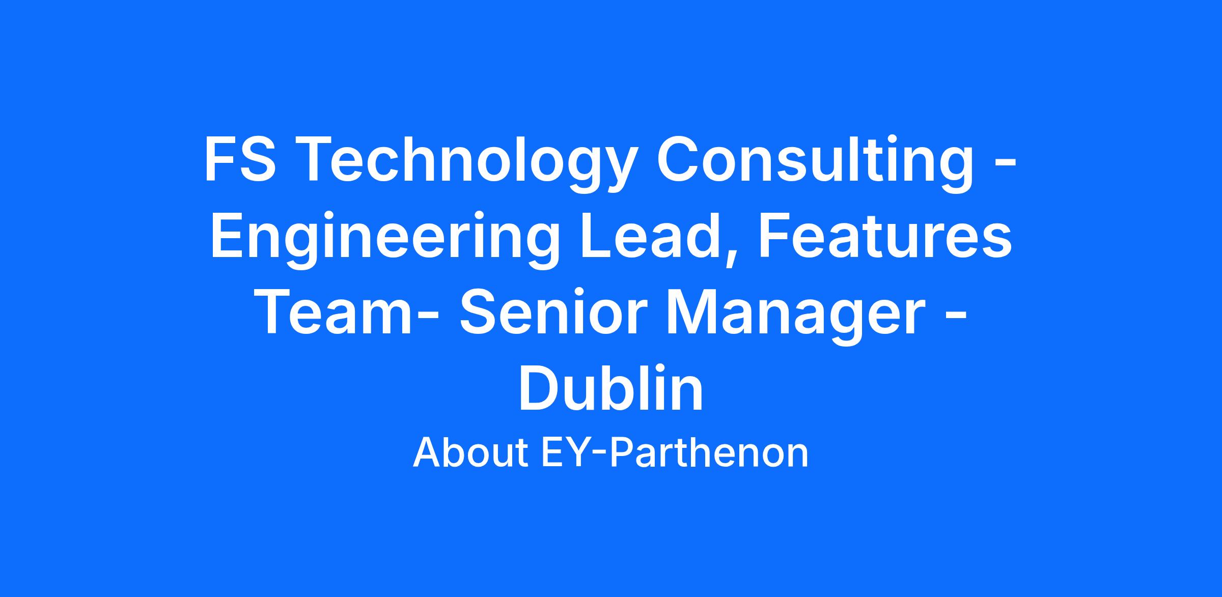 FS Technology Consulting – Engineering Lead, Features Team – Senior Manager - Dublin