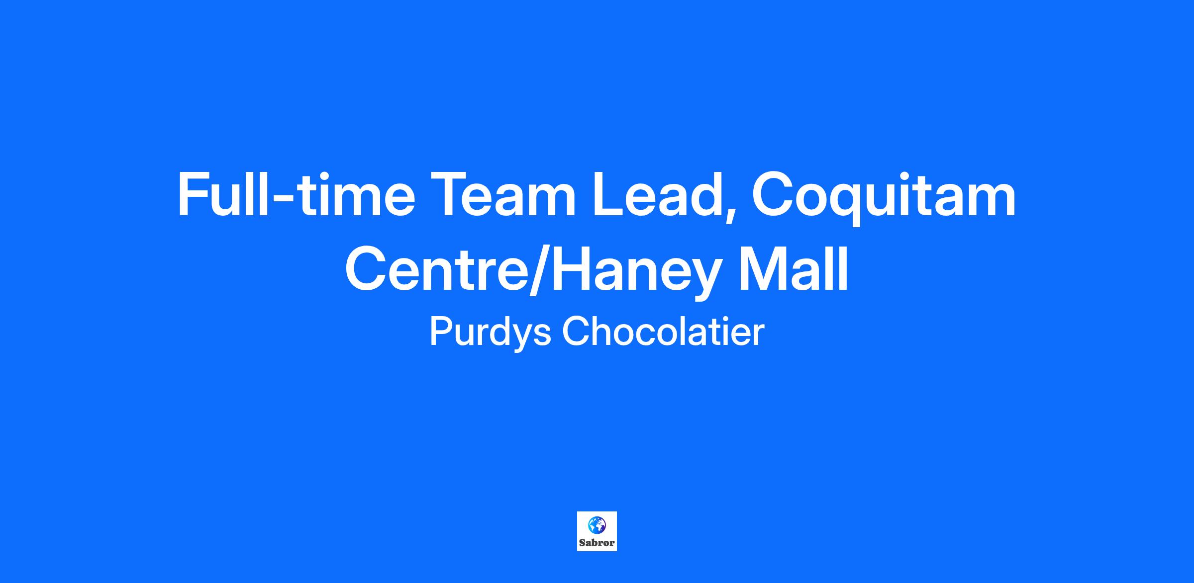 Craving a dream job? Join one of Canada's Top Employers. Purdys Chocolatier is delighted to have been voted by our employees as one of Canada's Best Employers. This esteemed award is a testament to the rich texture of our history and our more than 115 years of dedication to quality, trust,and supportive work environment. Job type: Full-time, permanent Hours are estimated to be: 32 hours per week Expected hourly pay range: $20.00 per hour Do you love chocolates? As a proud Canadian Chocolatier, we create connection and joy through the power of chocolate and have a great deal of fun doing so. We truly value diversity in our workforce and therefore, welcome applicants of all ethnic groups, genders, races, religions, abilities, and backgrounds. Job Overview: We are looking for an enthusiastic Team Lead to assist with leading towards success at our Coquitlam Centre and Haney Place shops. Team Lead reports to the Shop Management and works with them to ensure all functions relating to merchandising, customer service, and general shop operations are performed efficiently and to the policies and guidelines of the company. You will be guiding the staff, however, you will not be responsible for hiring or discipline. Your success will come from your ability to engage with customers, drive sales, and work in a team environment. This is a position that requires availability for all types of shifts, including weekdays, weekends, evenings and holidays. You must be able to work at both Coquitlam Centre and Haney Place locations. You will be a good fit if you are: Passionate about chocolate and have a leadership experience in a fast-paced retail/hospitality industry Self-motivated and driven for results, enthusiastic about selling a quality product Dedicated to providing a great customer experience Energetic and enjoy meeting new people Excited about working with a team and building a career and growing within Purdys Chocolatier Available for all types of shifts. Get ready to enjoy: Active Lifestyle Reimbursement Program Tuition Reimbursement Program Employee discount Extended Health & Dental Plan Sick Days Profit Sharing Ready to dive deeper? Check out our Instagram, TikTok or Facebook. Feel free to drop off your resume at the shop. We appreciate the interest of all applicants, and while we wish we could personally reach out to everyone, we can only contact those selected for an interview. We genuinely care about providing reasonable accommodations to job applicants with disabilities. If you require assistance or an accommodation due to a disability, please reach out to us via email at resumes@purdys.com. We're here to help!