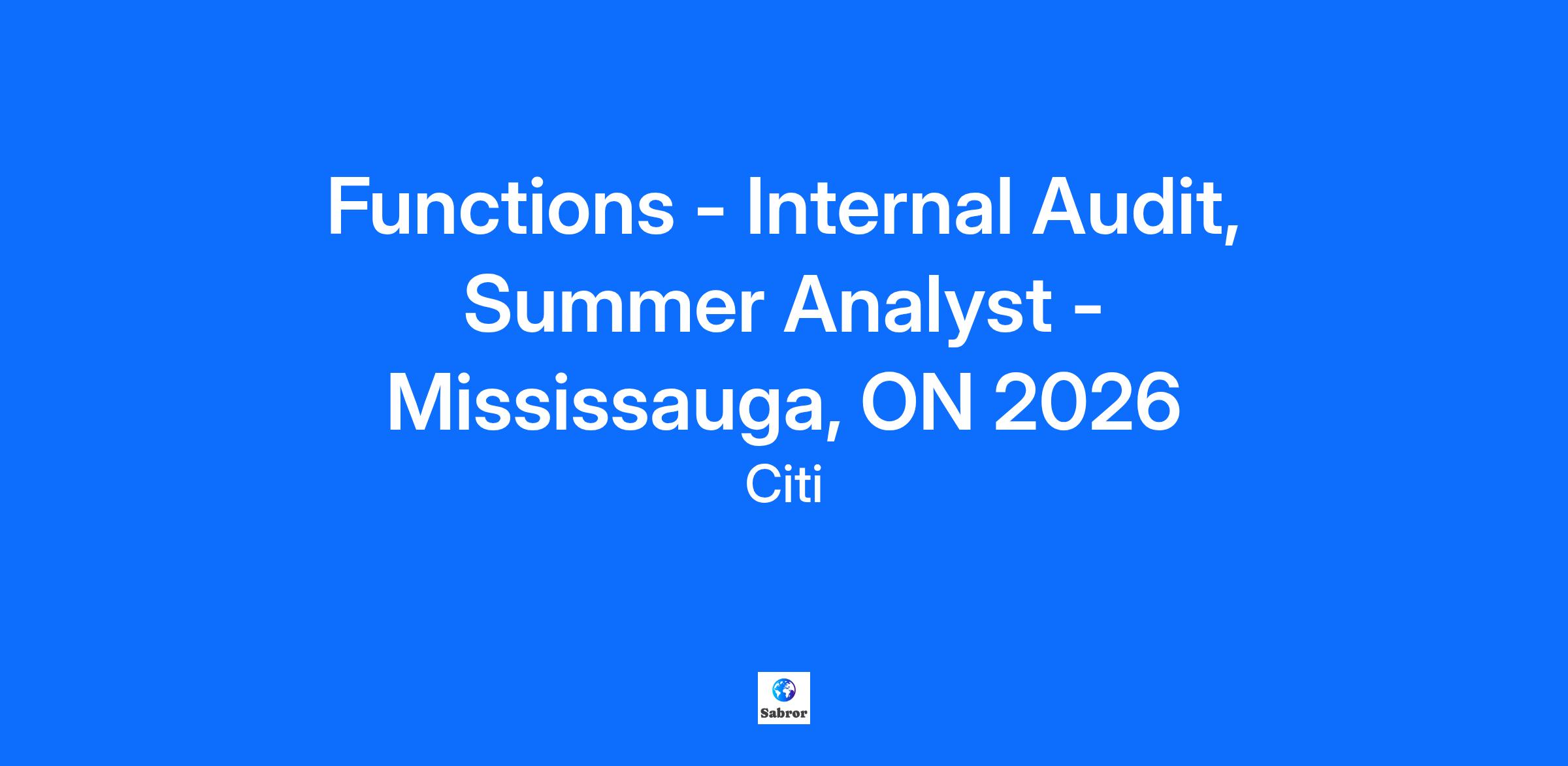 Functions - Internal Audit, Summer Analyst - Mississauga, ON 2026