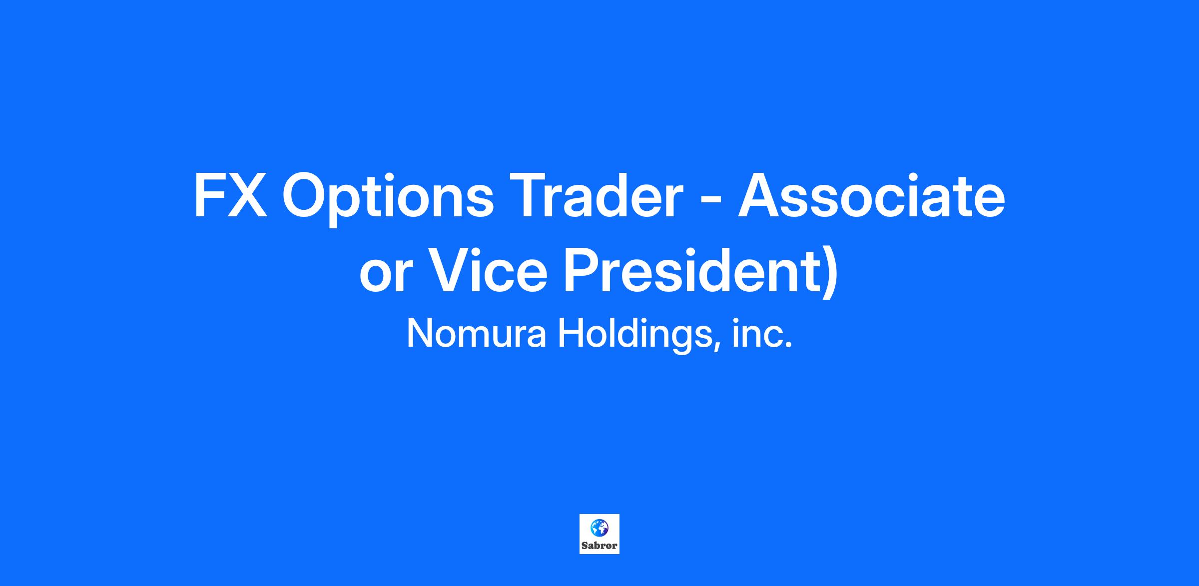 Company overview Nomura is a global financial services group with an integrated network spanning approximately 30 countries and regions. By connecting markets East & West, Nomura services the needs of individuals, institutions, corporates and governments through its three business divisions: Wealth Management, Investment Management, and Wholesale (Global Markets and Investment Banking). Founded in 1925, the firm is built on a tradition of disciplined entrepreneurship, serving clients with creative solutions and considered thought leadership. For further information about Nomura, visit www.nomura.com Job Title: FX Options Trader Corporate Title: Associate/Vice President Department: Global MarketsLocation: London Department overview: Nomura's Global Markets Division handles client transactions for financial institutions, corporates, governments and investment funds around the world. We act as market makers, trading in fixed income products, including currencies, interest rates and credit in cash, derivatives and structured products. We have taken market-leading positions across the globe by leveraging the strength of our talent, client relationships and technology. By developing strong relationships with our client base through consistent interaction, independent advice and pre-eminent access to Asia, we have built a powerful global franchise across interest rates, currency and credit products. Our client services cover both high-volume flow products and carefully tailored structured solutions. We have adapted to the changing financial landscape to build a client centric focus differentiated by innovation, electronic and service excellence and market-leading derivatives capabilities. Key objectives critical to success: This opportunity is for an Associate/VP level hire into the FX Options trading desk. The role will focus on analysing trades and risks, developing strategies, market-making and risk management. Skills, experience, qualifications and knowledge required: Keen attention to detail Proficiency in the concepts of Quantitative Finance and derivatives pricing / modelling Ability to communicate effectively as dealing with different stakeholders (i.e. Structuring, Sales, Quant Research and IT) is a major aspect of the role Independent thinker Strong analytical skills required, programming / spread sheet writing ability helpful Highly energetic with an entrepreneurial mindset Ability to multitask in a high pressure/fast paced environment Self-starter Proven ability to learn and understand new concepts Willingness to go the extra-mile when required Excellent prioritization and decision making skills Work to the highest moral code and advancing Nomura’s ethics in all areas. Nomura competencies Explore Insights & Vision Identify the underlying causes of problems faced by you or your team and define a clear vision and direction for the future. Making Strategic Decisions Evaluate all the options for resolving the problems and effectively prioritize actions or recommendations. Inspire Entrepreneurship in People Inspire team members through effective communication of ideas and motivate them to actively enhance productivity. Elevate Organizational Capability Engage proactively in professional development and enhance team productivity through the promotion of knowledge sharing. Inclusion Respect DEI, foster a culture of psychological safety in the workplace and cultivate a "Risk Culture" (Challenge, Escalate and Respect). Diversity Statement Nomura is committed to an employment policy of equal opportunities, and is fundamentally opposed to any less favourable treatment accorded to existing or potential members of staff on the grounds of race, creed, colour, nationality, disability, marital status, pregnancy, gender or sexual orientation. DISCLAIMER: This Job Description is for reference only, and whilst this is intended to be an accurate reflection of the current job, it is not necessarily an exhaustive list of all responsibilities, duties, skills, efforts, requirements or working conditions associated with the job. The management reserves the right to revise the job and may, at his or her discretion, assign or reassign duties and responsibilities to this job at any time. Nomura is an Equal Opportunity Employer