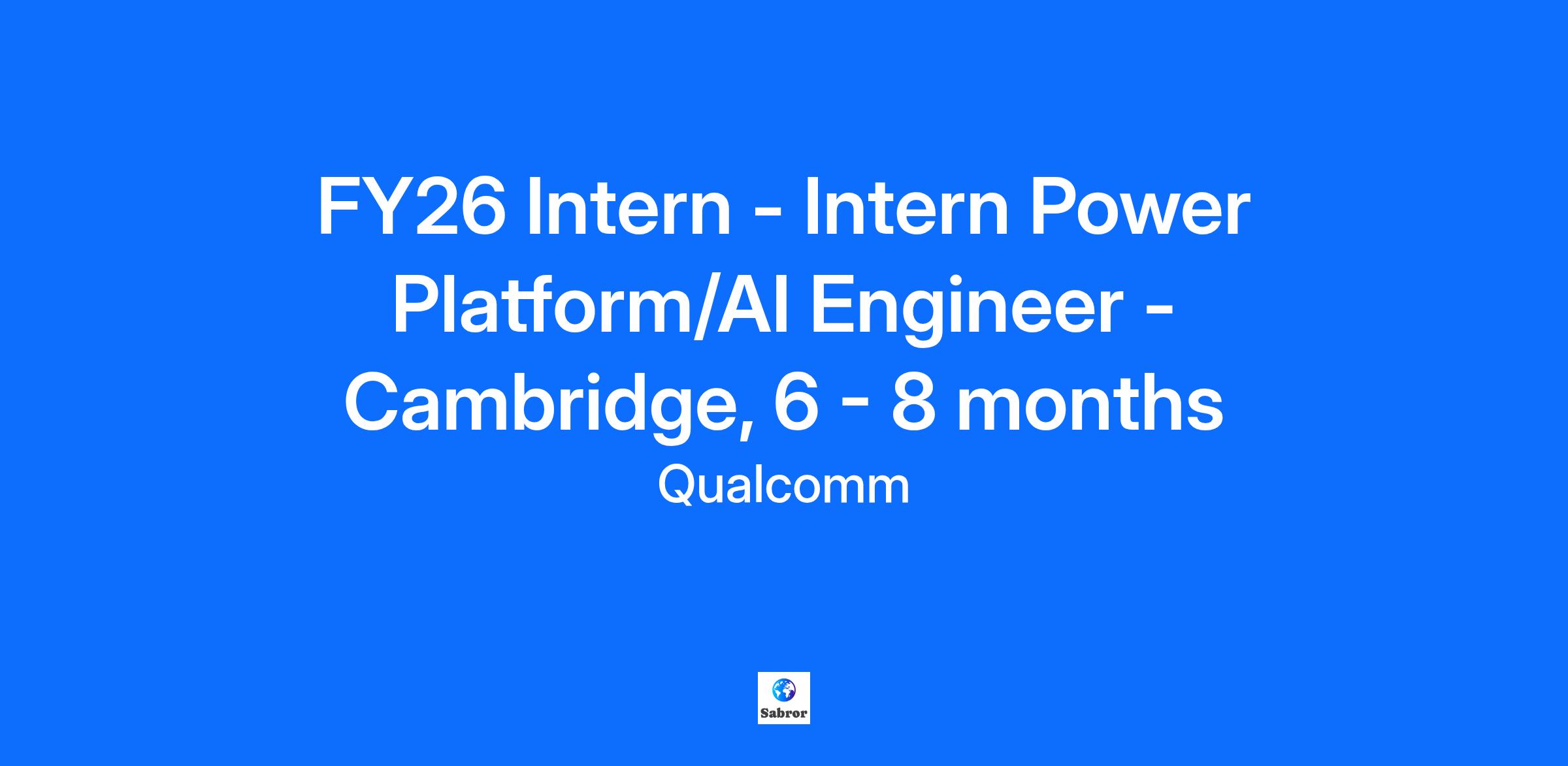 Company: Qualcomm Technologies International Ltd Job Overview: Qualcomm is a company of inventors that unlocked 5G, ushering in an age of rapid acceleration in connectivity and new possibilities. But this is just the beginning. It takes inventive minds with diverse skills, backgrounds, and cultures to transform its potential into world-changing technologies and products. This is the Invention Age, and this is where you come in. Qualcomm is seeking an intern IT Power Platform/AI Engineer for up to 8 months to join the EMEA Workforce Productivity Group in the Cambridge Technology Centre, UK. You will work in a global team and gain hands-on experience in building innovative solutions using Microsoft Power Platform and AI technologies. This role is ideal for someone passionate about automation, data-driven insights, and emerging technologies. Minimum Qualifications: Interest in low-code platforms and AI basics (no advanced experience required). Familiarity with Microsoft tools or similar technologies is a plus. Strong problem-solving skills and eagerness to learn. Willingness to take initiative in a fast-paced environment. Excellent communication and teamwork abilities. Key Responsibilities: Assist in developing apps and flows using Power Apps and Power Automate. Explore AI features such as automated suggestions, collaborate with senior engineers to design and implement solutions to improve efficiency. Document processes and provide end-user support for deployed solutions. What We Offer: Mentorship from experienced IT professionals. Real-world experience in cutting-edge technologies. Opportunity to contribute to impactful real projects within a dynamic team and learn industry best practices. Education Requirements: To qualify for this position, you must be a current student (electrical engineering or computer science) in the middle or towards the end of your university studies looking for an Intern/co-op placement as a mandatory part of your degree for 6+ months. Candidates must legally be able to work in the UK and registered as a current student. Please review the Internal Applicant Guidelines for more details on the internal applicant process, as there could be impacts to title, pay, and/or immigration processes. Distributing internal contact information to external applicants is prohibited. *References to a particular number of years experience are for indicative purposes only. Applications from candidates with equivalent experience will be considered, provided that the candidate can demonstrate an ability to fulfill the principal duties of the role and possesses the required competencies. Applicants: Qualcomm is an equal opportunity employer. If you are an individual with a disability and need an accommodation during the application/hiring process, rest assured that Qualcomm is committed to providing an accessible process. You may e-mail disability-accomodations@qualcomm.com or call Qualcomm's toll-free number found here. Upon request, Qualcomm will provide reasonable accommodations to support individuals with disabilities to be able participate in the hiring process. Qualcomm is also committed to making our workplace accessible for individuals with disabilities. (Keep in mind that this email address is used to provide reasonable accommodations for individuals with disabilities. We will not respond here to requests for updates on applications or resume inquiries). Qualcomm expects its employees to abide by all applicable policies and procedures, including but not limited to security and other requirements regarding protection of Company confidential information and other confidential and/or proprietary information, to the extent those requirements are permissible under applicable law. To all Staffing and Recruiting Agencies: Our Careers Site is only for individuals seeking a job at Qualcomm. Staffing and recruiting agencies and individuals being represented by an agency are not authorized to use this site or to submit profiles, applications or resumes, and any such submissions will be considered unsolicited. Qualcomm does not accept unsolicited resumes or applications from agencies. Please do not forward resumes to our jobs alias, Qualcomm employees or any other company location. Qualcomm is not responsible for any fees related to unsolicited resumes/applications. If you would like more information about this role, please contact Qualcomm Careers. Qualcomm is a company of inventors that unlocked 5G, ushering in an age of rapid acceleration in connectivity and new possibilities. But this is just the beginning. It takes inventive minds with diverse skills, backgrounds, and cultures to transform its potential into world-changing technologies and products. This is the Invention Age, and this is where you come in. Qualcomm is seeking an intern IT Power Platform/AI Engineer for up to 8 months to join the EMEA Workforce Productivity Group in the Cambridge Technology Centre, UK. You will work in a global team and gain hands-on experience in building innovative solutions using Microsoft Power Platform and AI technologies. This role is ideal for someone passionate about automation, data-driven insights, and emerging technologies. Minimum Qualifications: Interest in low-code platforms and AI basics (no advanced experience required). Familiarity with Microsoft tools or similar technologies is a plus. Strong problem-solving skills and eagerness to learn. Willingness to take initiative in a fast-paced environment. Excellent communication and teamwork abilities. Key Responsibilities: Assist in developing apps and flows using Power Apps and Power Automate. Explore AI features such as automated suggestions, collaborate with senior engineers to design and implement solutions to improve efficiency. Document processes and provide end-user support for deployed solutions. What We Offer: Mentorship from experienced IT professionals. Real-world experience in cutting-edge technologies. Opportunity to contribute